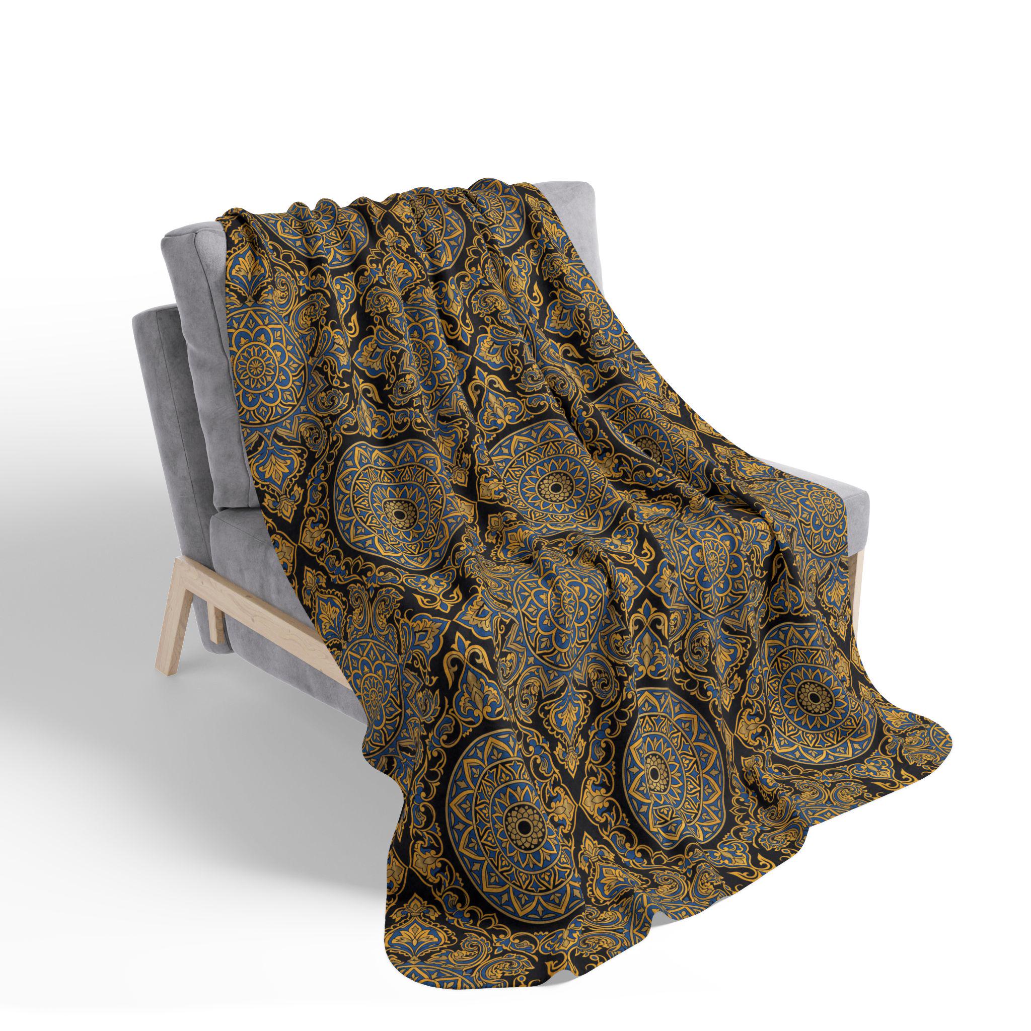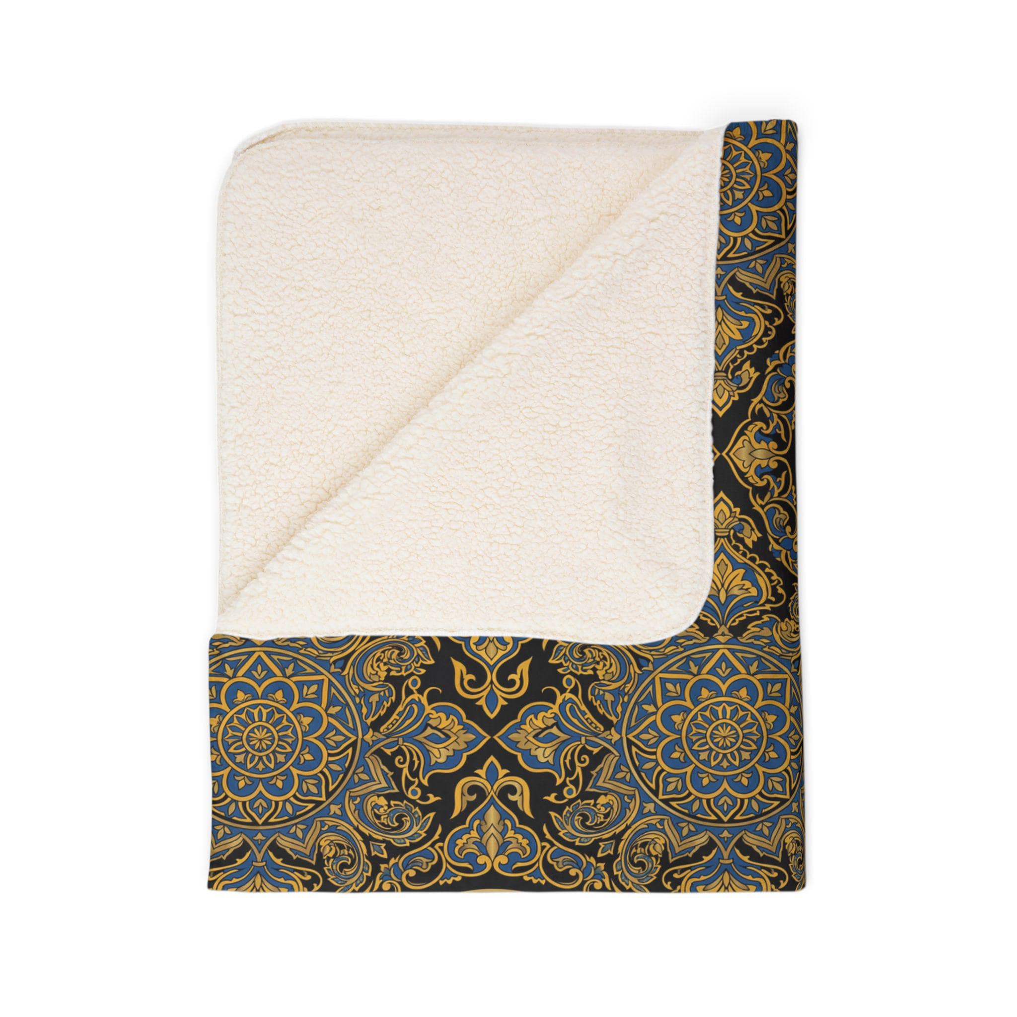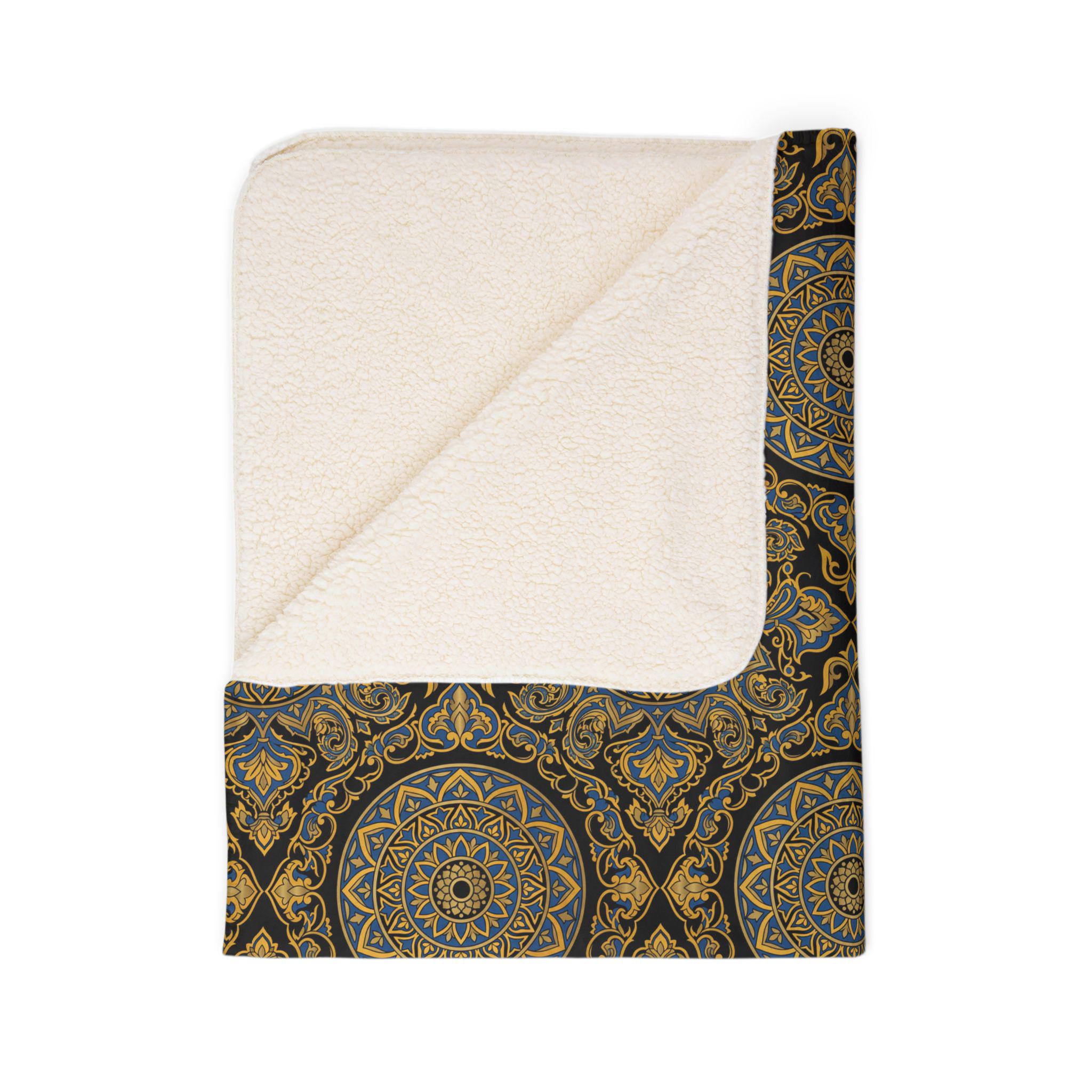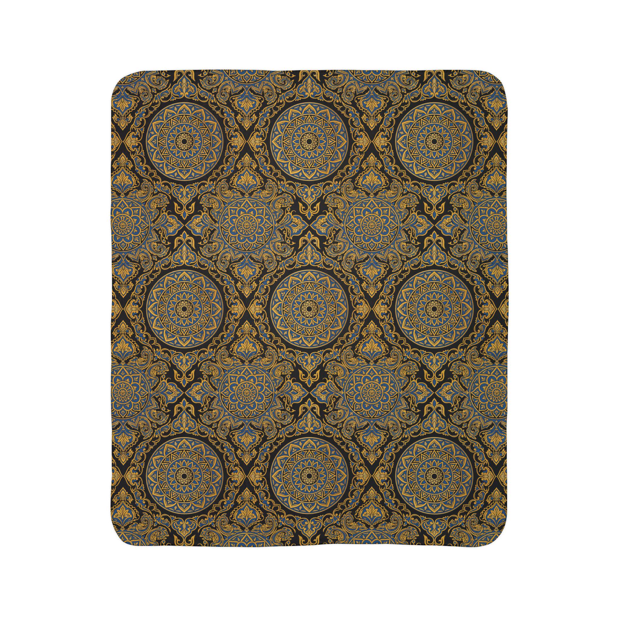 Transform your home into a sanctuary of warmth with our Mughal Gold Blue Mandala Sherpa Blanket. Designed for the dreamer and the curator of cozy spaces, this blanket captures the essence of a collected, bohemian home.