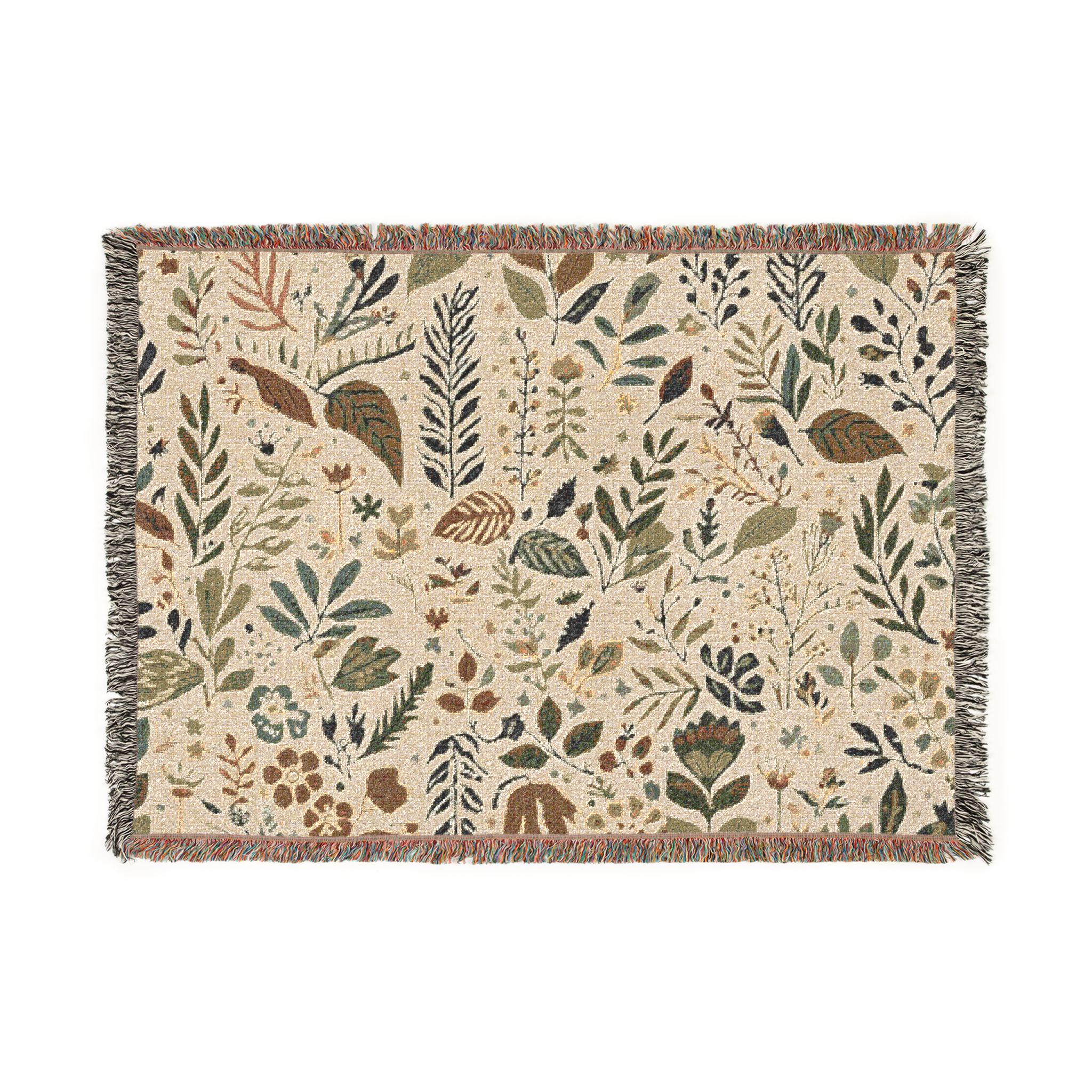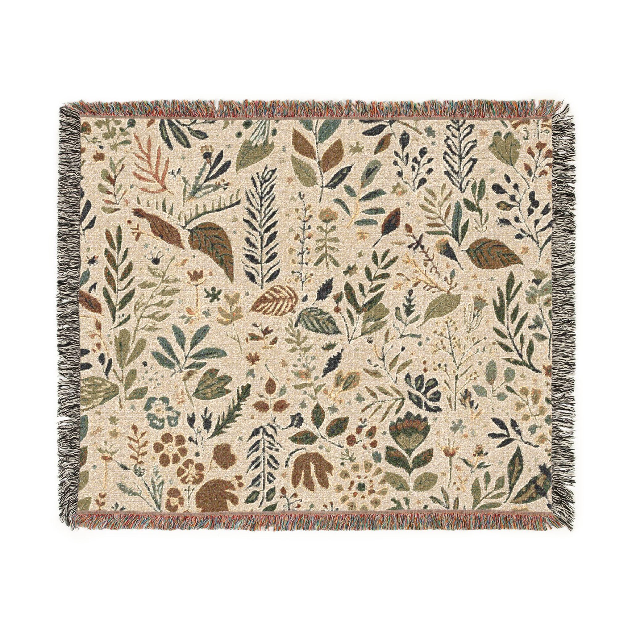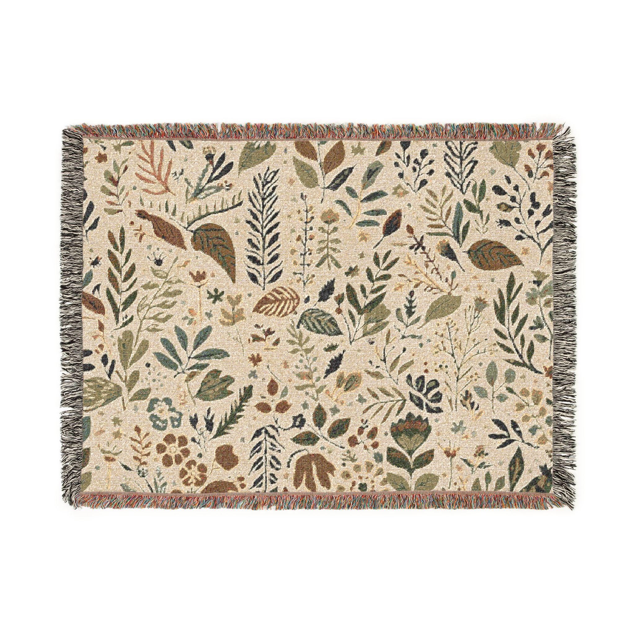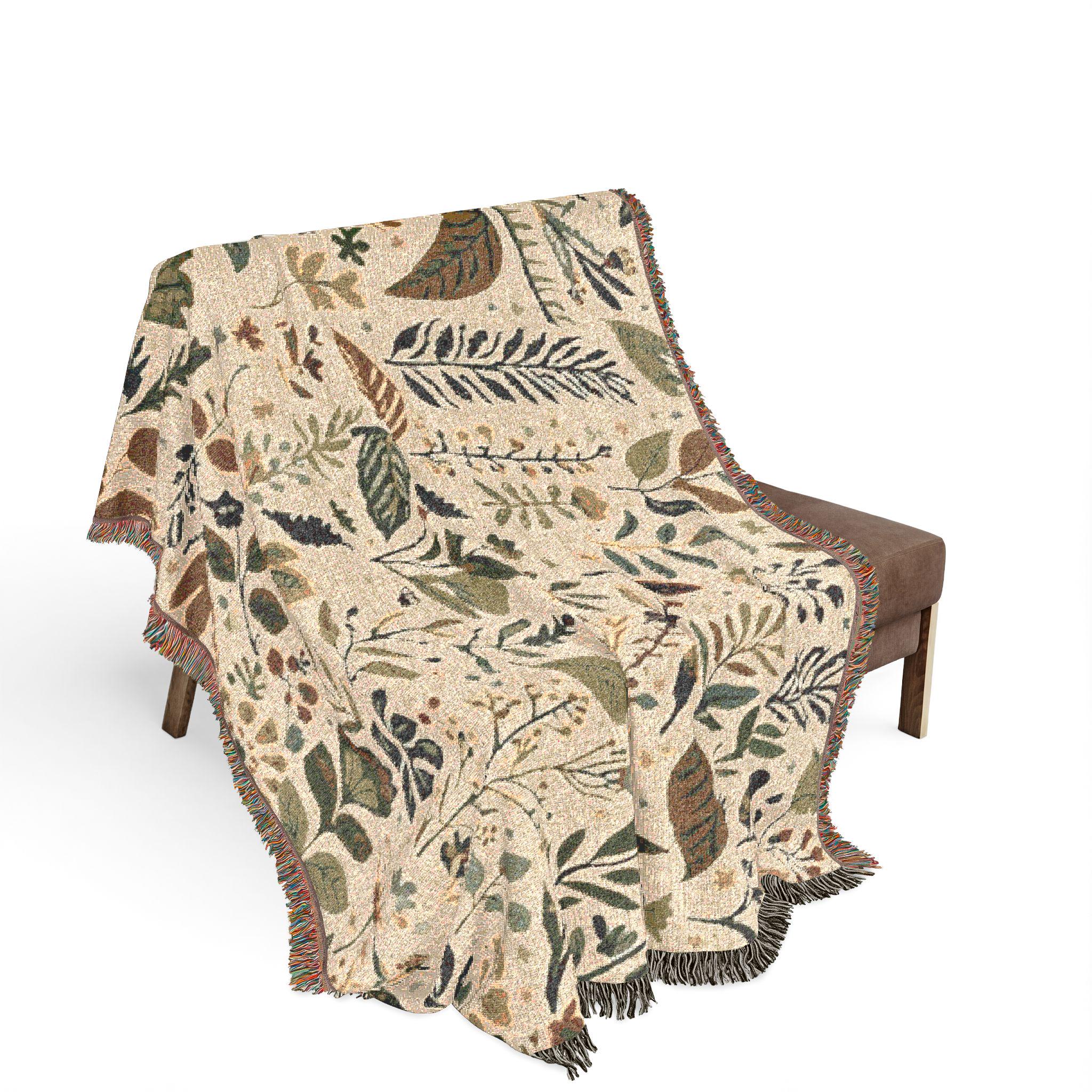 Botanical Floral Pattern Woven Blanket | Leaf Jacquard Throw