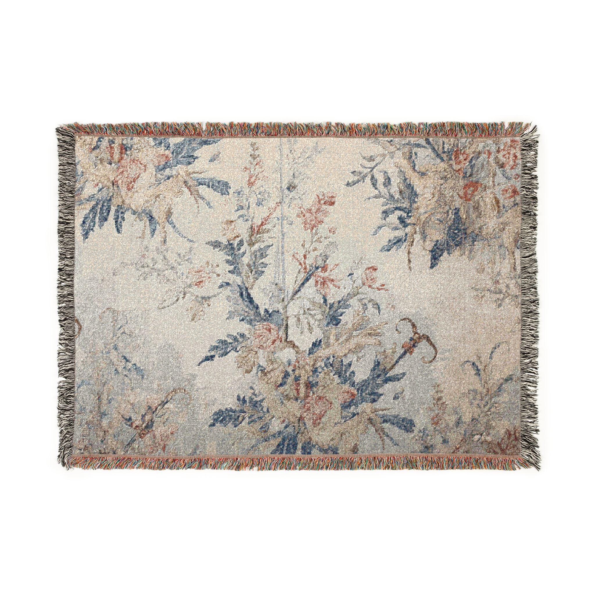 Baroque Floral Tapestry Blanket | Woven Cotton Fringe Throw