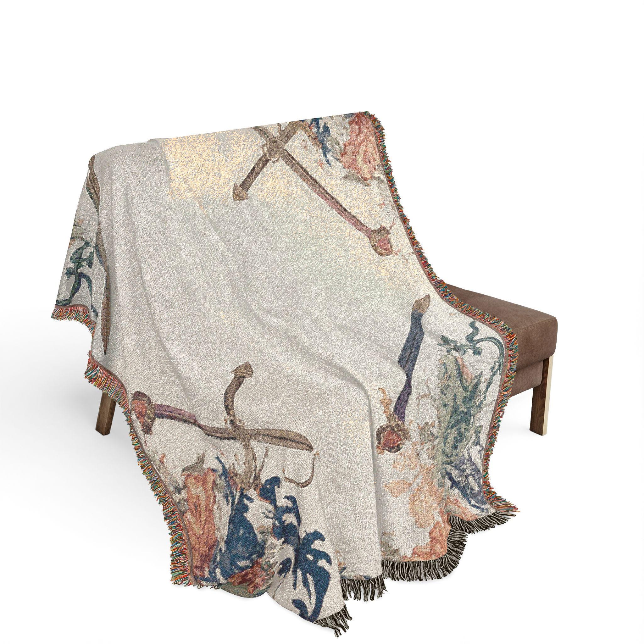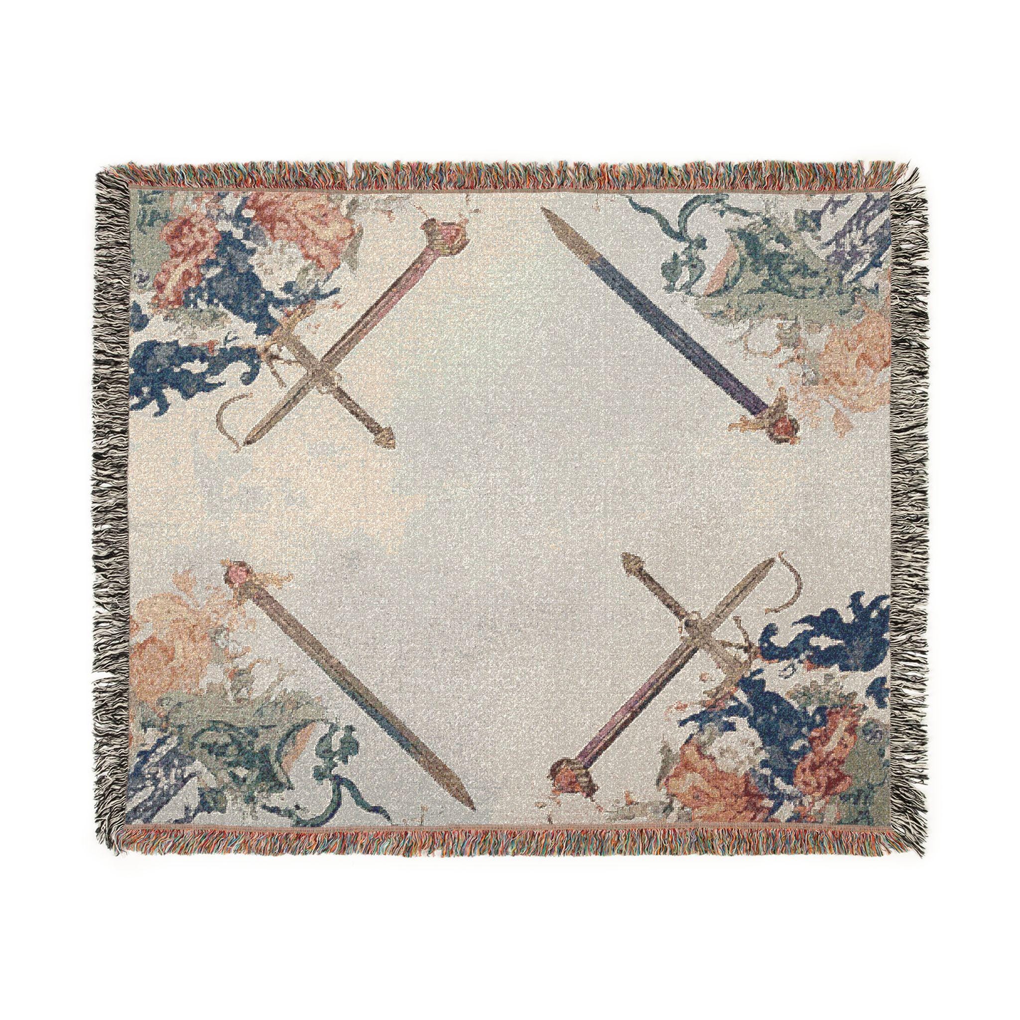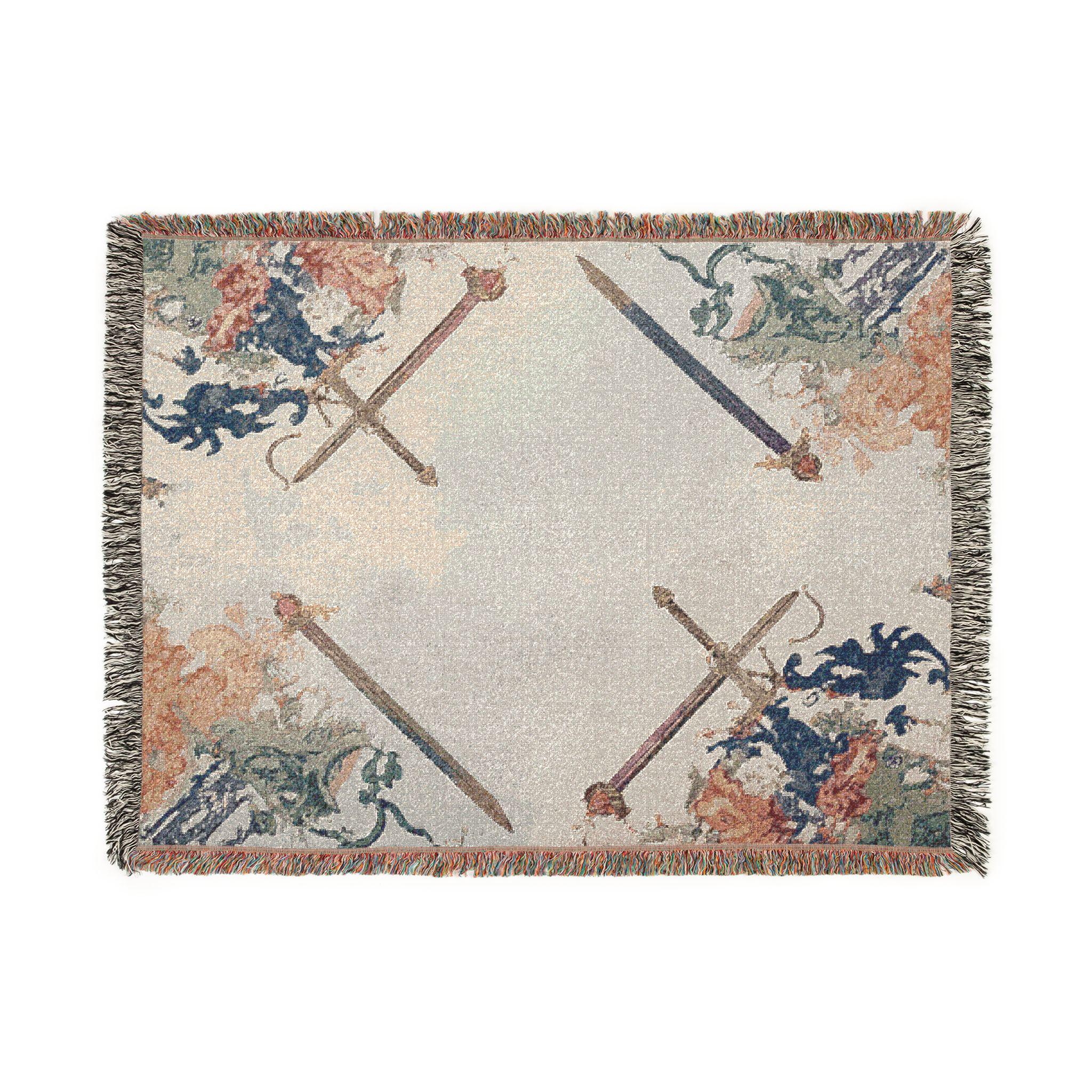 Step into a world of medieval grandeur with this heraldic tapestry blanket. Featuring crossed swords and mythical griffins, this 100% cotton woven throw brings the noble spirit of knights and castles into your home—perfect for castlecore, gothic, and Renaissance-inspired spaces.