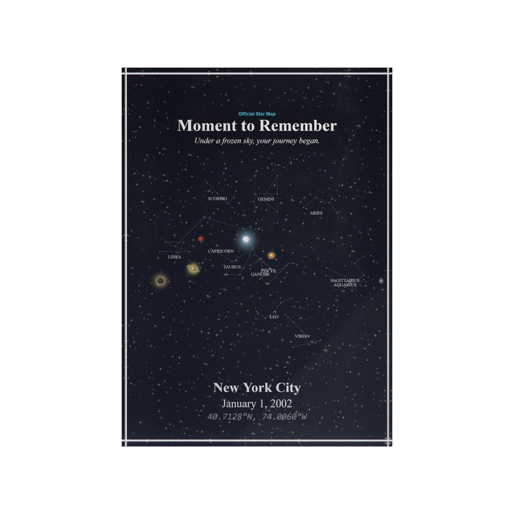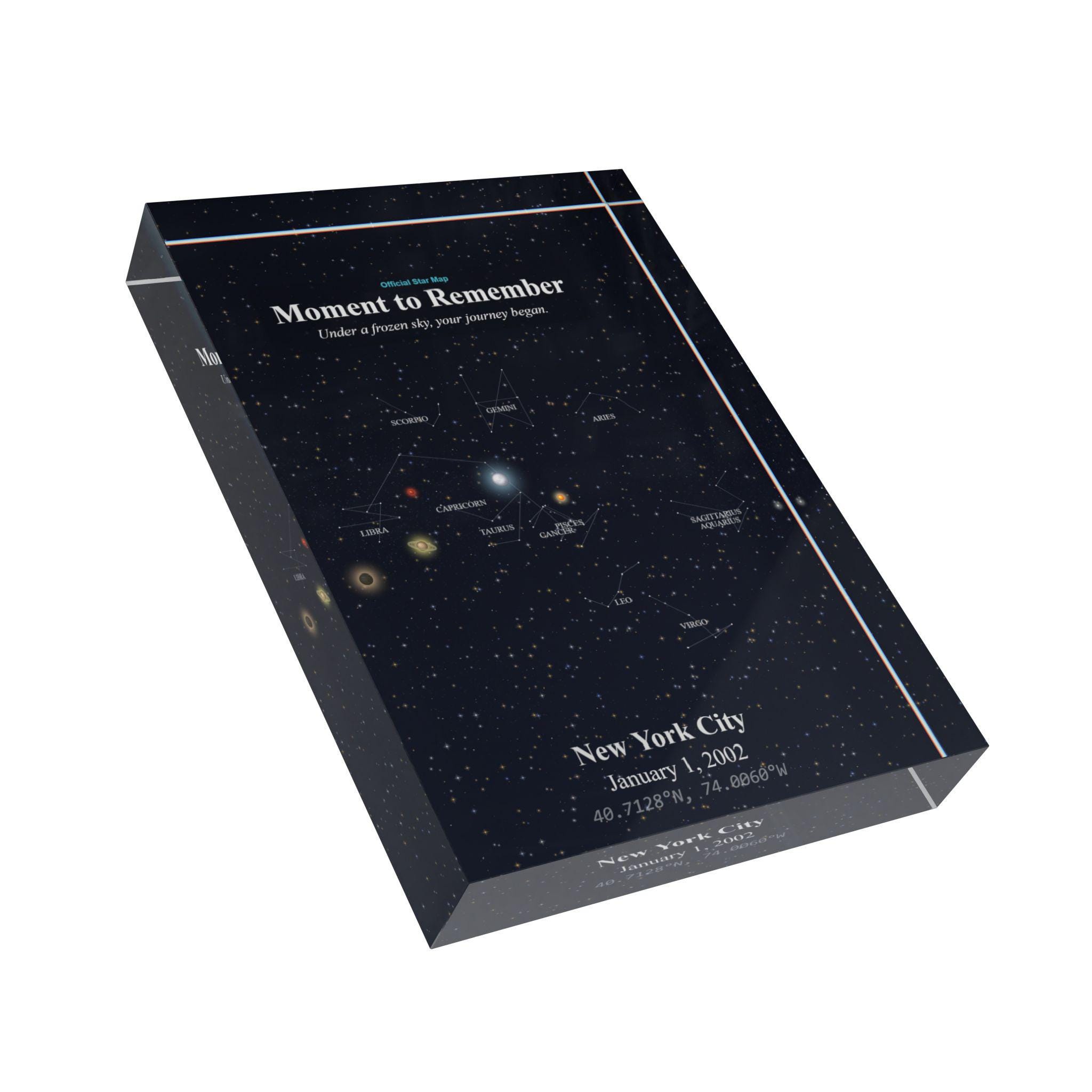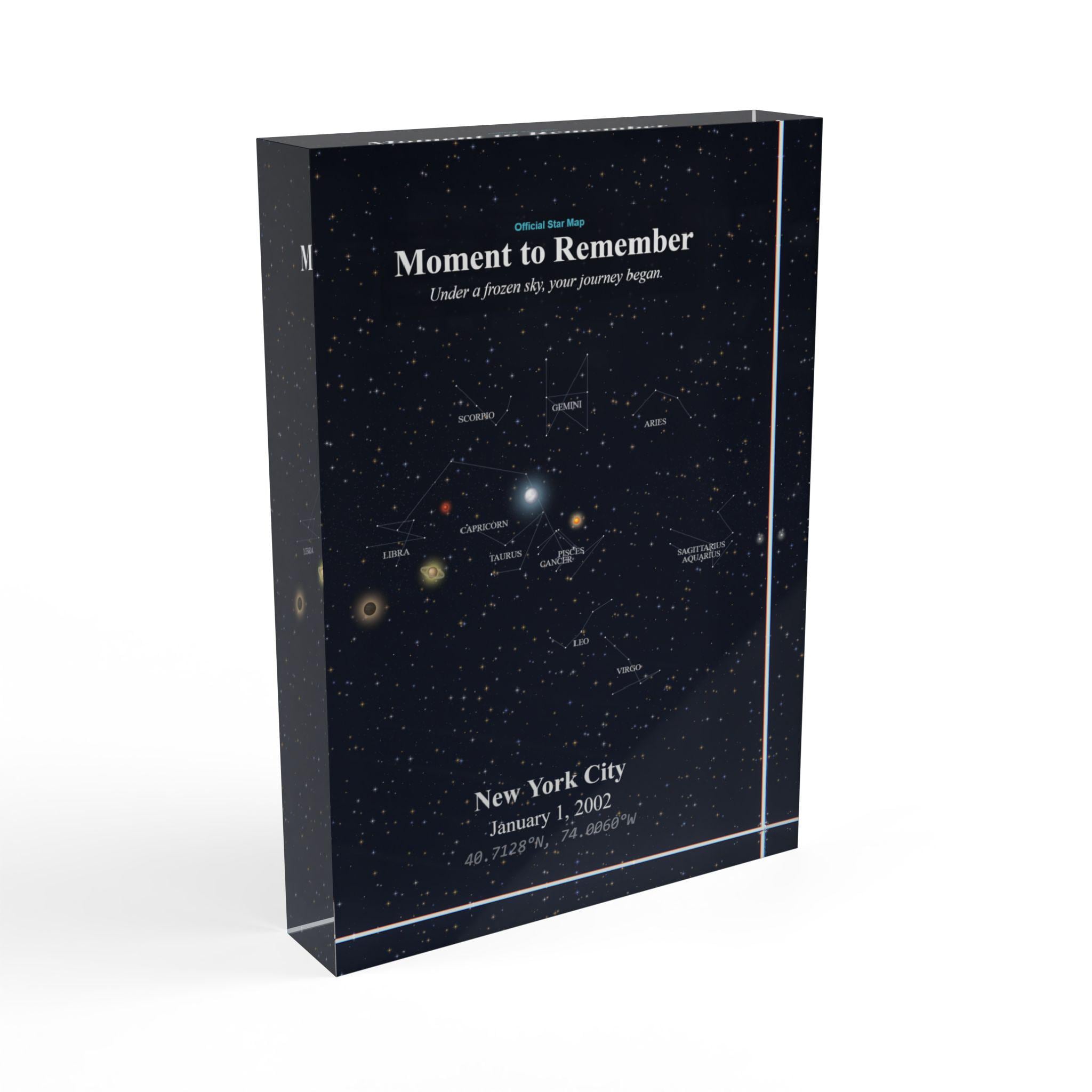 This star map photo block turns a fleeting moment into a lasting memory — frame your personal story in the stars where it will shine forever.