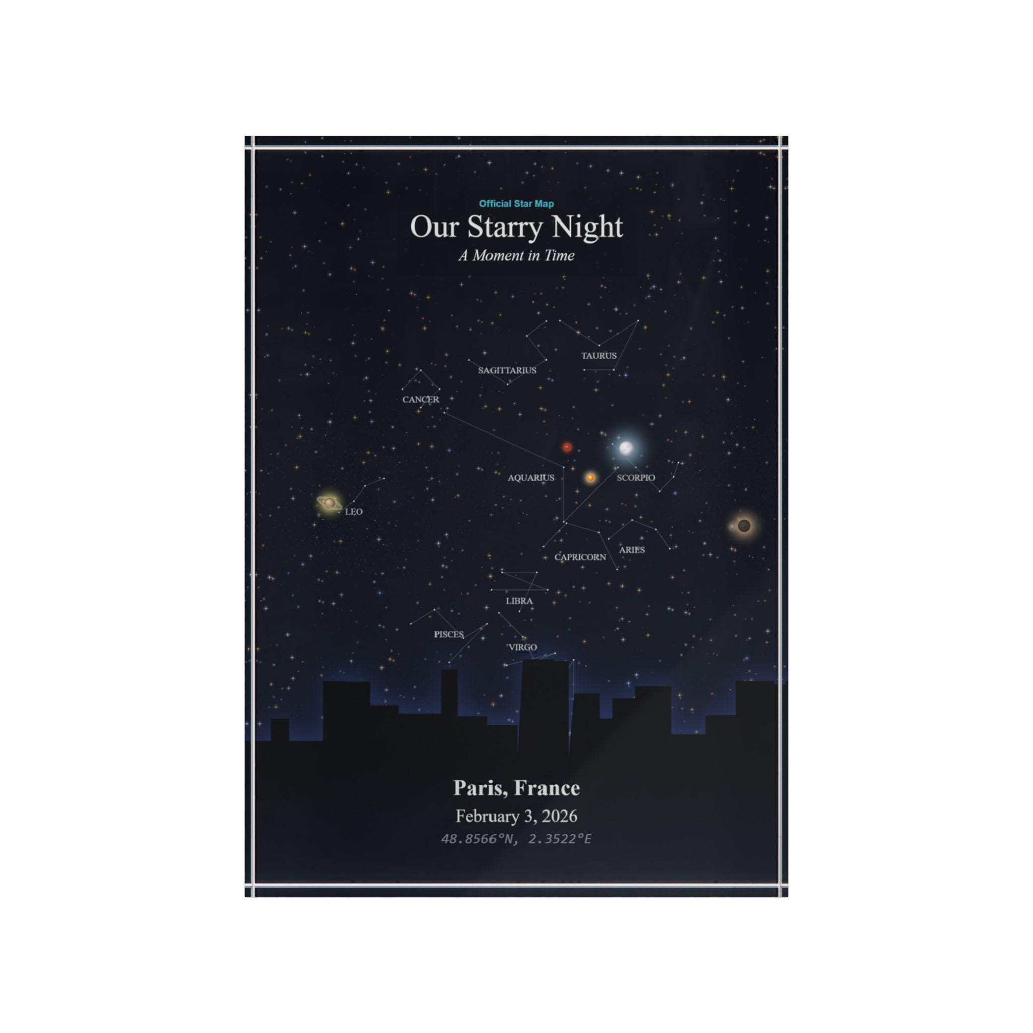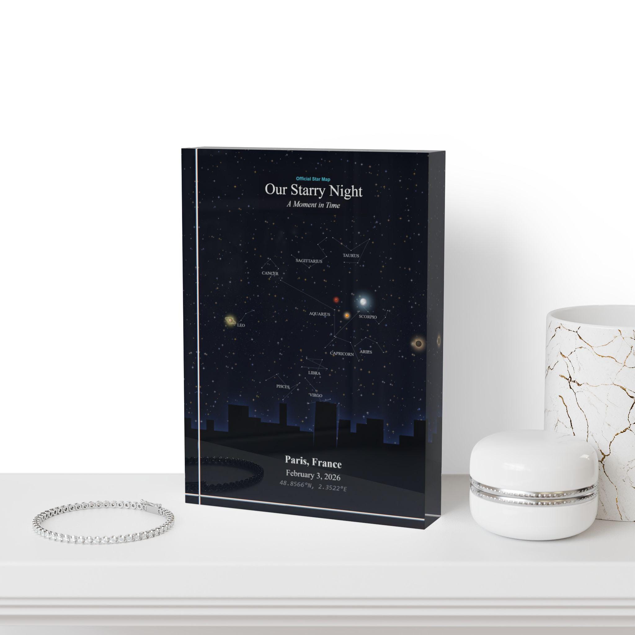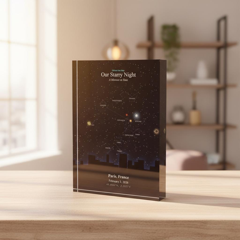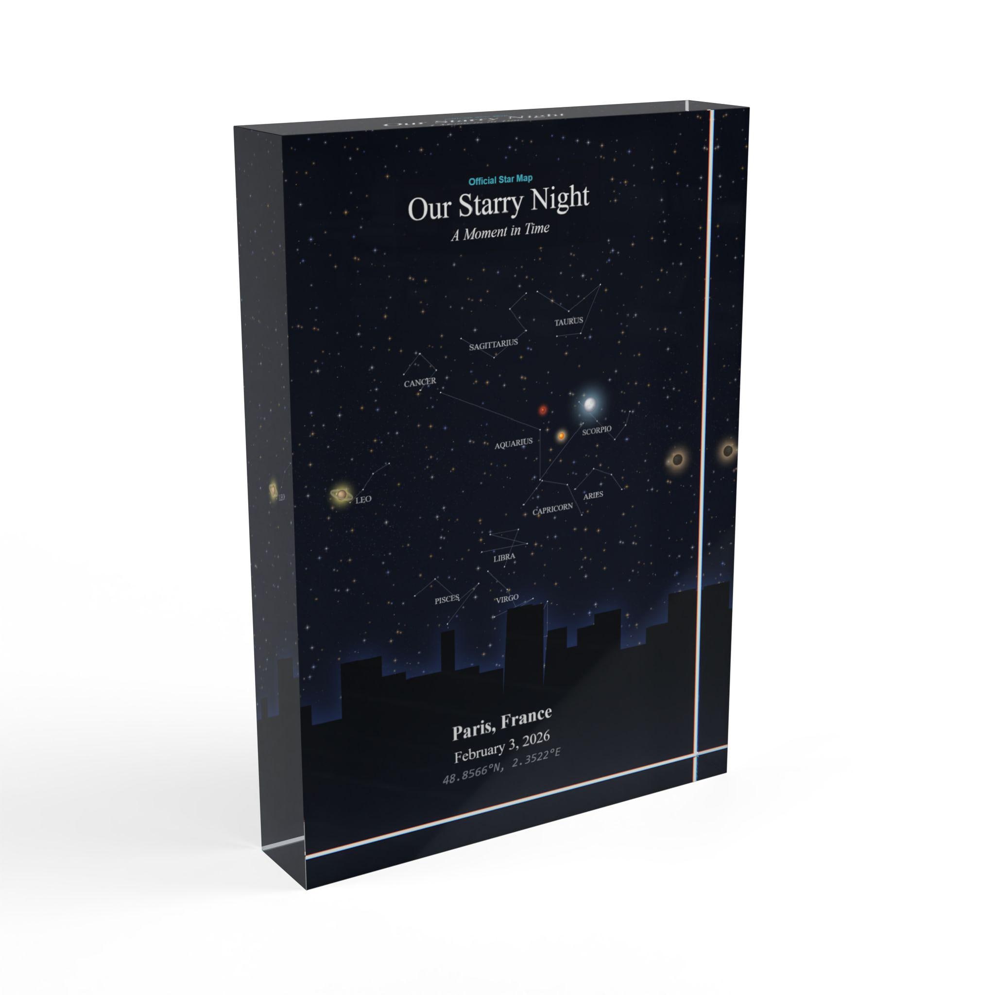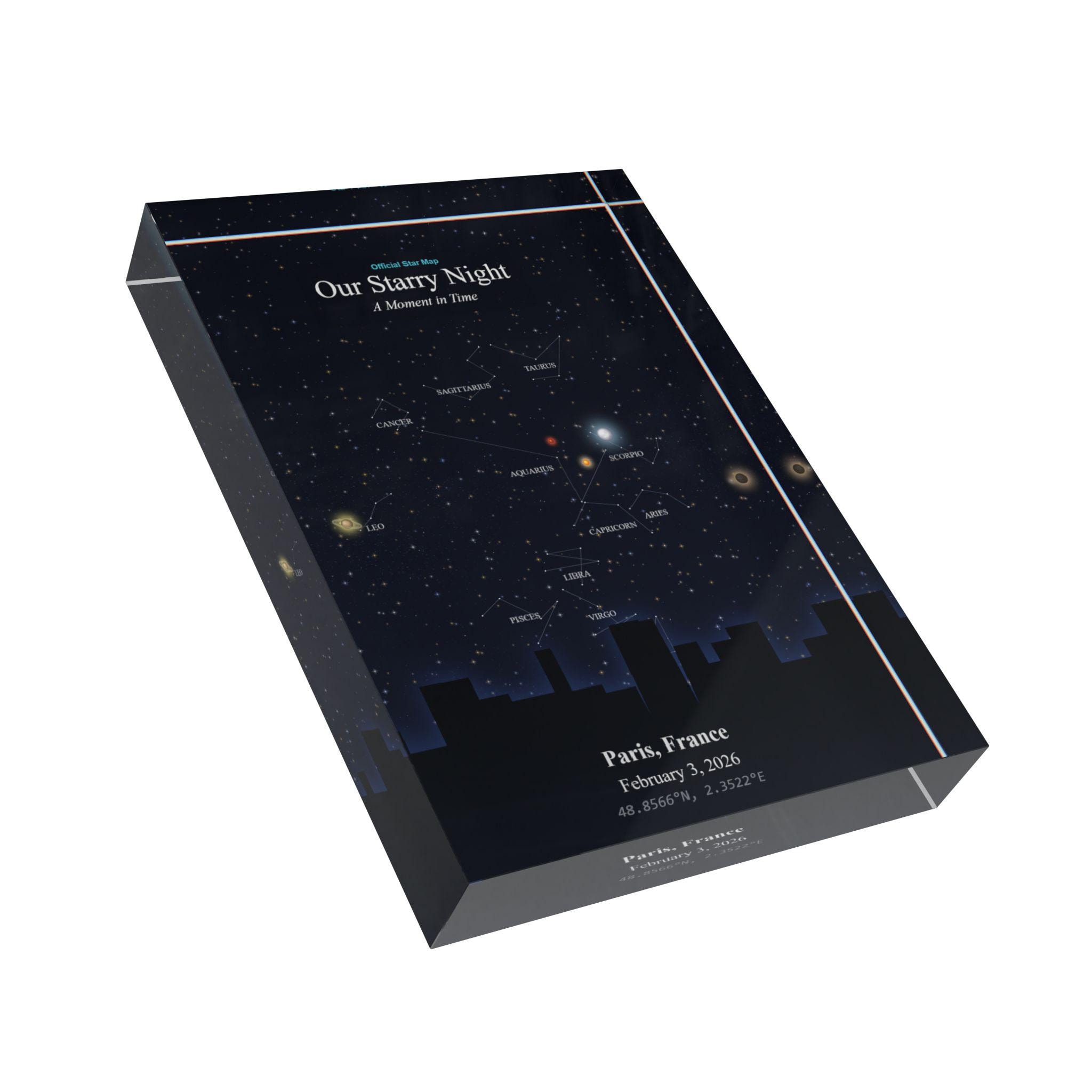This star map photo block turns a fleeting moment into a lasting memory — frame your personal story in the stars where it will shine forever.