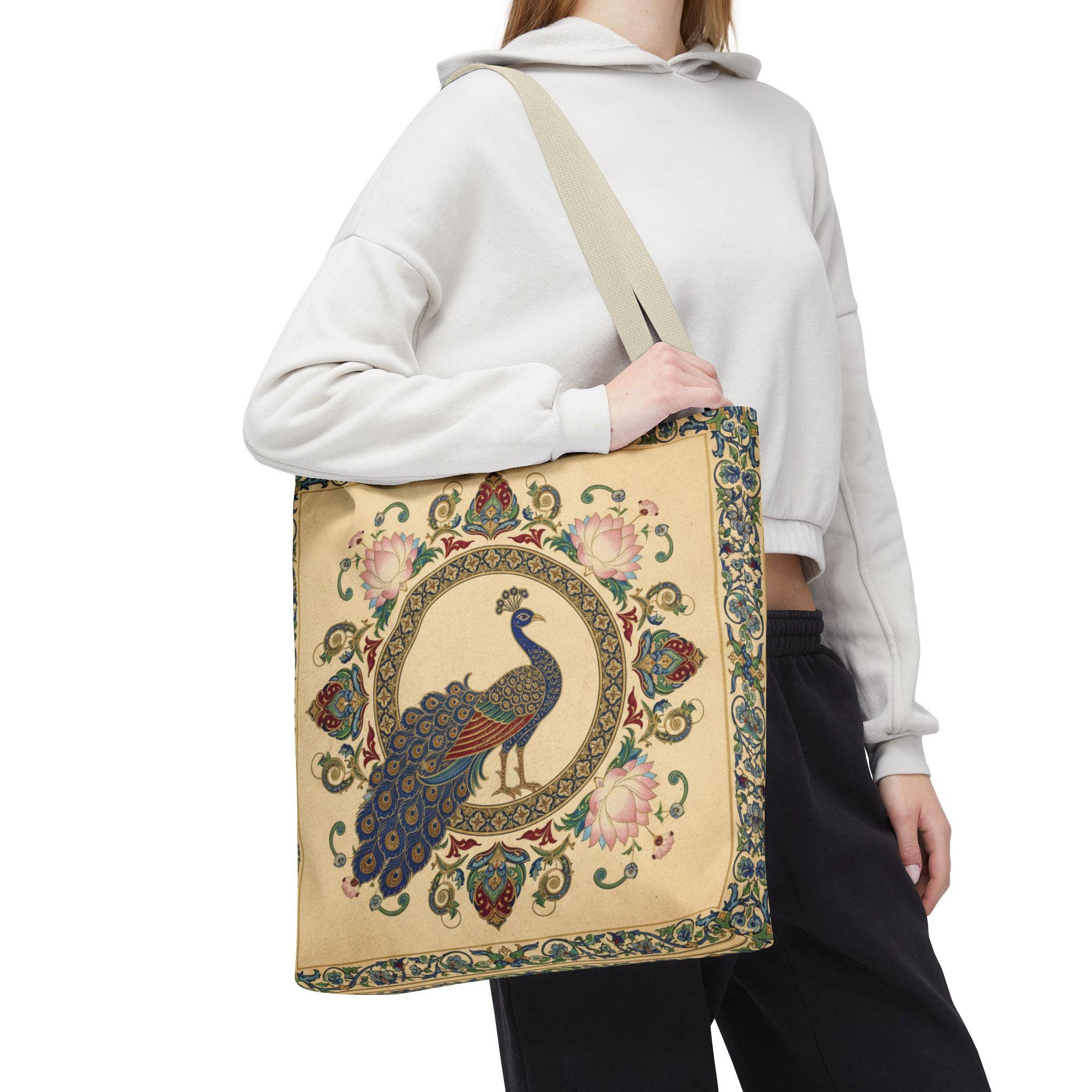 #VintageTote #PeacockBag #BohoBag #MandalaArt #ArtNouveauStyle #EcoShopping #ReusableBag #VintageAesthetic #BotanicalPrint #ArtisticTote