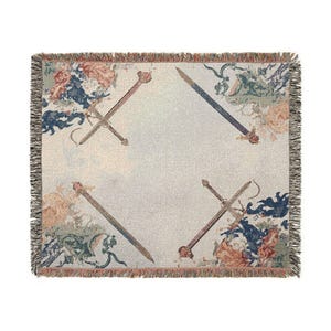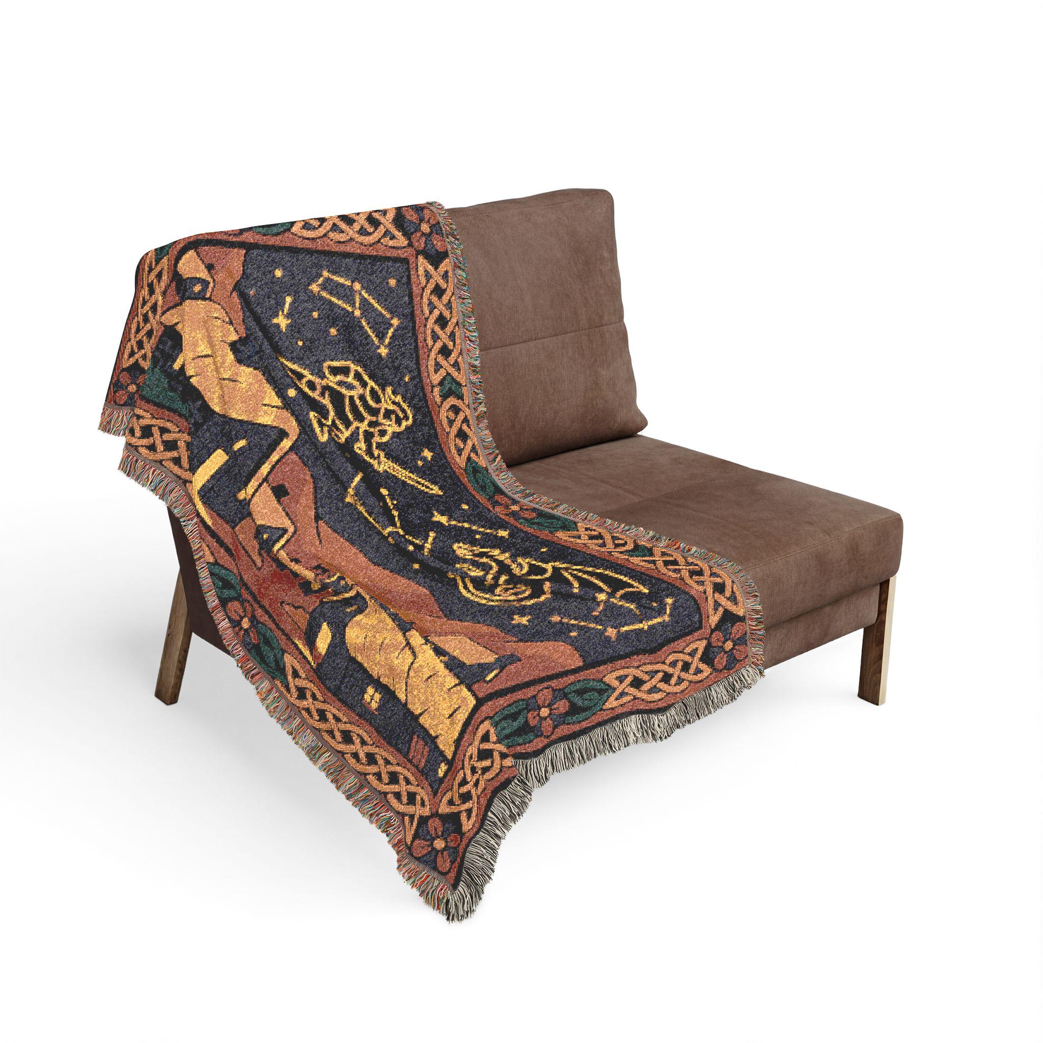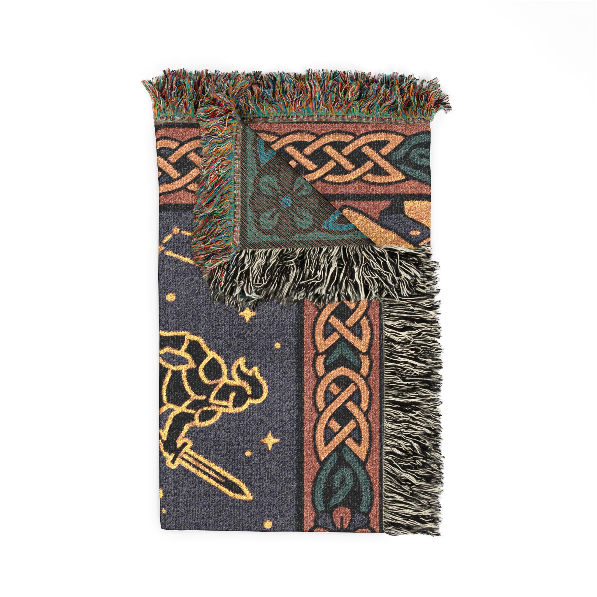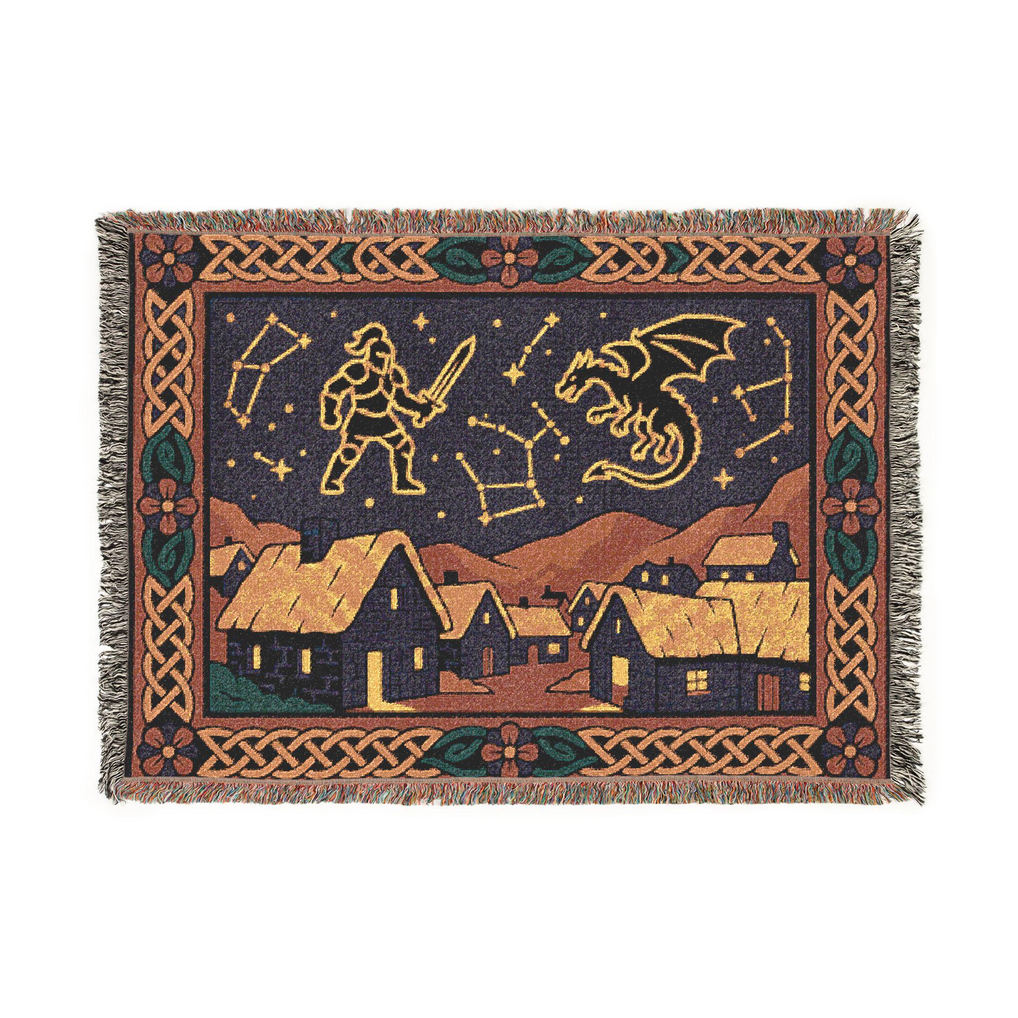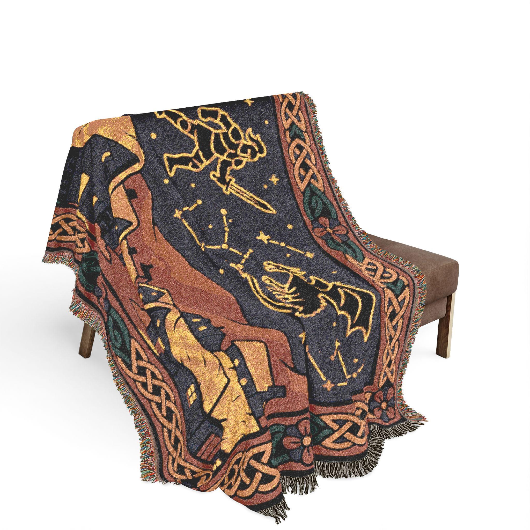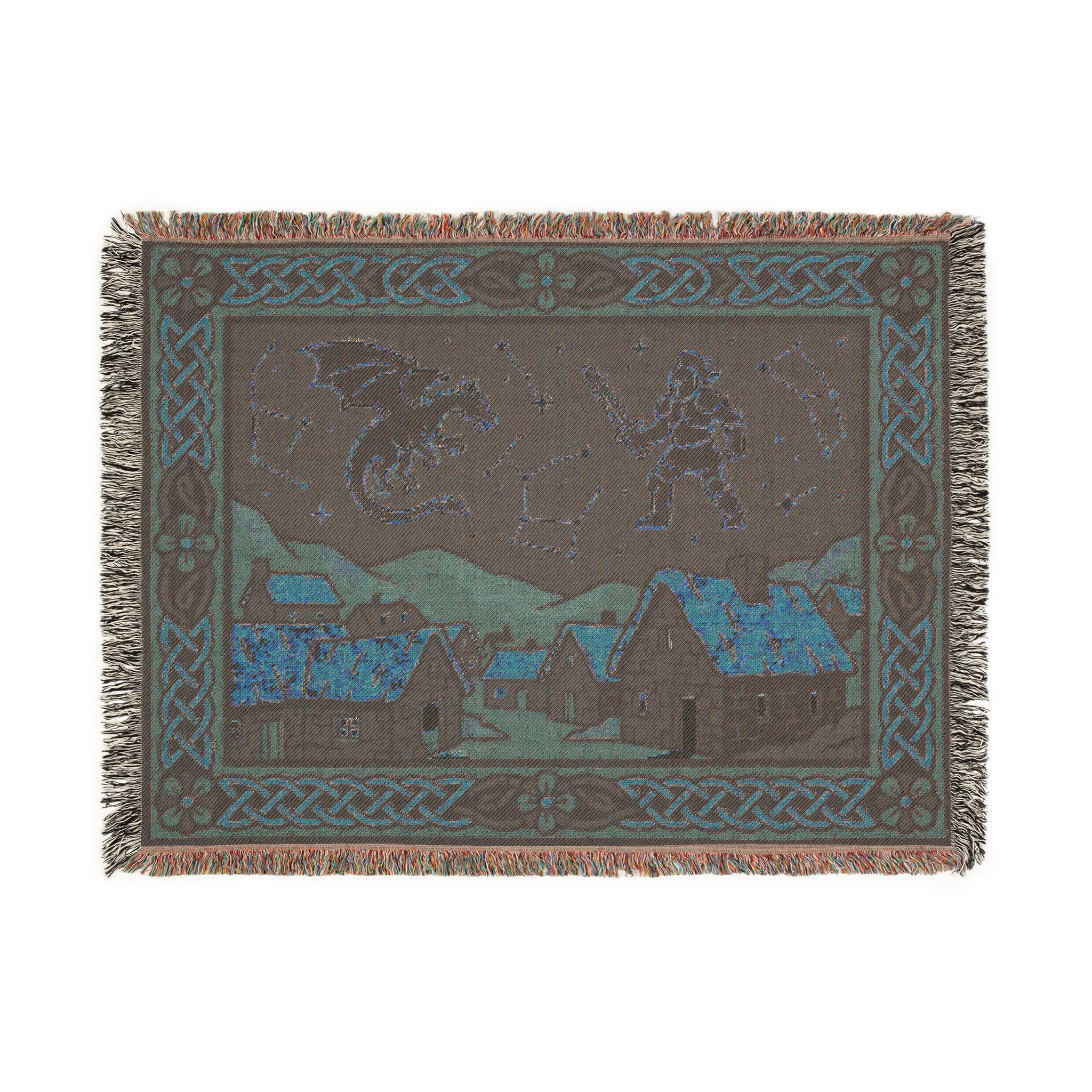 Viking Constellation Village Woven Blanket | Norse Dragon & Warrior Tapestry