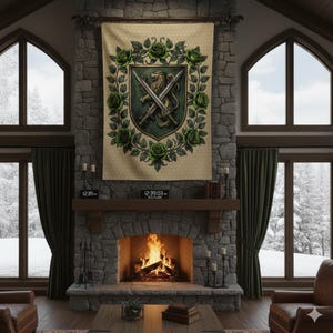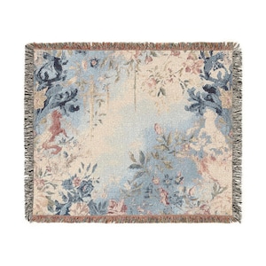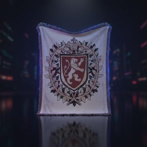 A handwoven cotton blanket that reads like a cozy folk tale. Richly textured threads form a night-village scene beneath mythic constellations — a hunter and a dragon mapped across the sky above slate rooftops and glowing cottage windows. The fringed edges and tapestry-style weave give it a rustic, heirloom quality that layers warmth and visual storytelling into your living room, reading nook, or cabin bed. Choose the Artwork variant for bold, graphic color blocks that pop, or the Photo variant when you want softer gradients and photographic detail. Available in three sizes, this woven blanket brings tactile comfort and an old-world atmosphere to quiet evenings and seasonal gatherings.