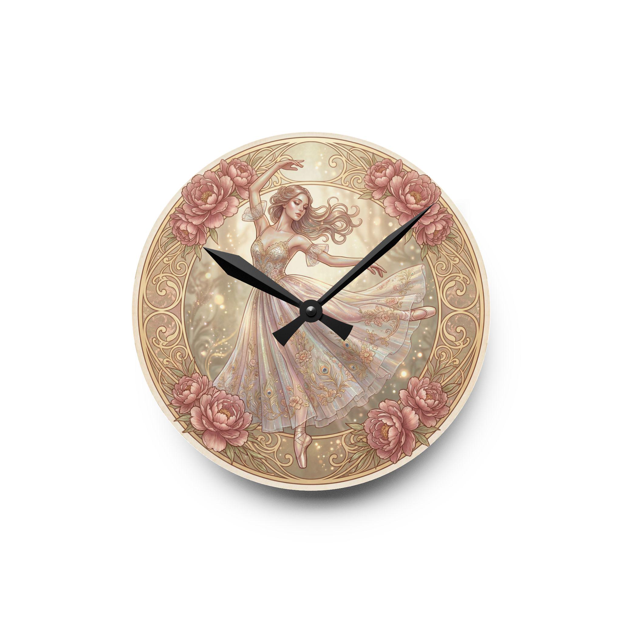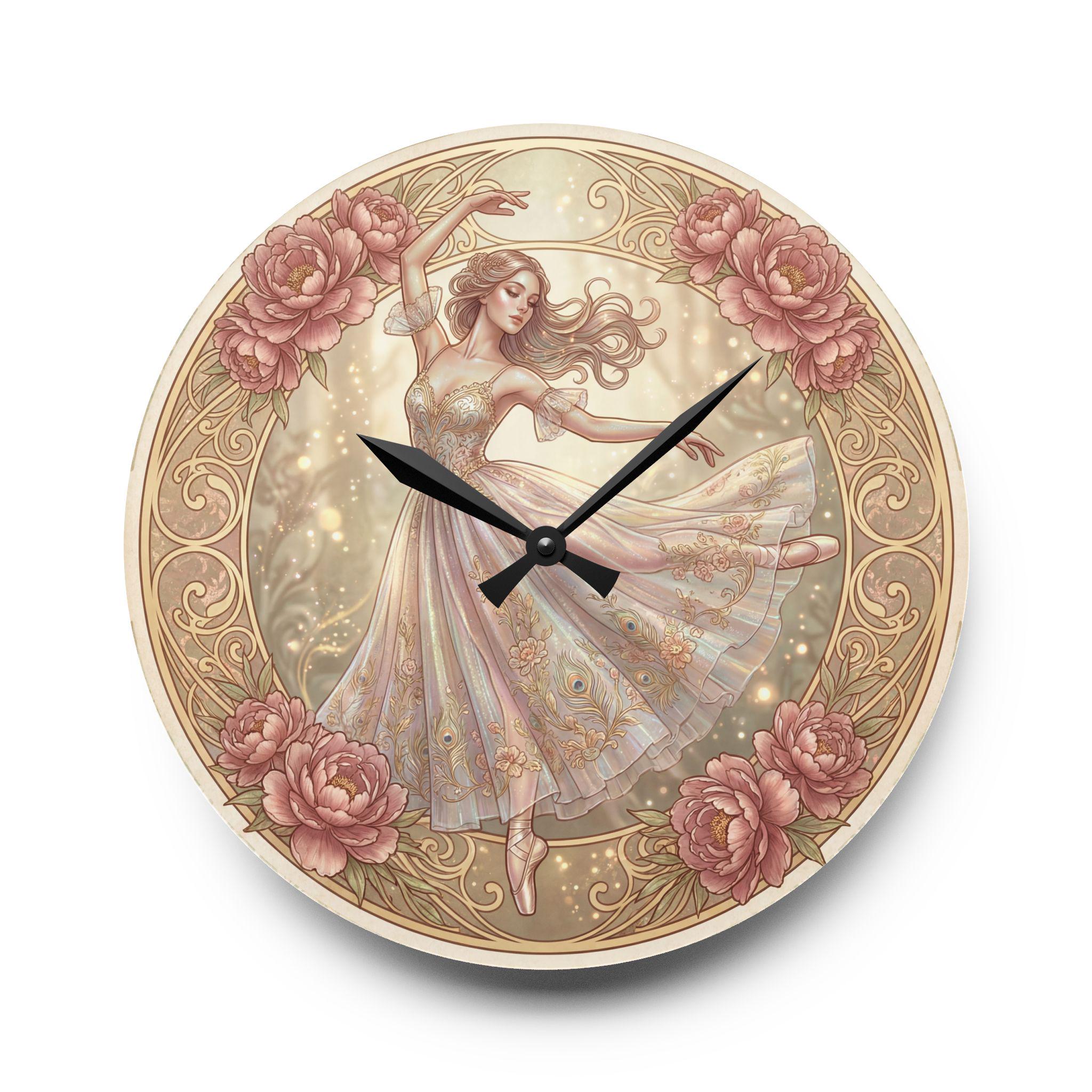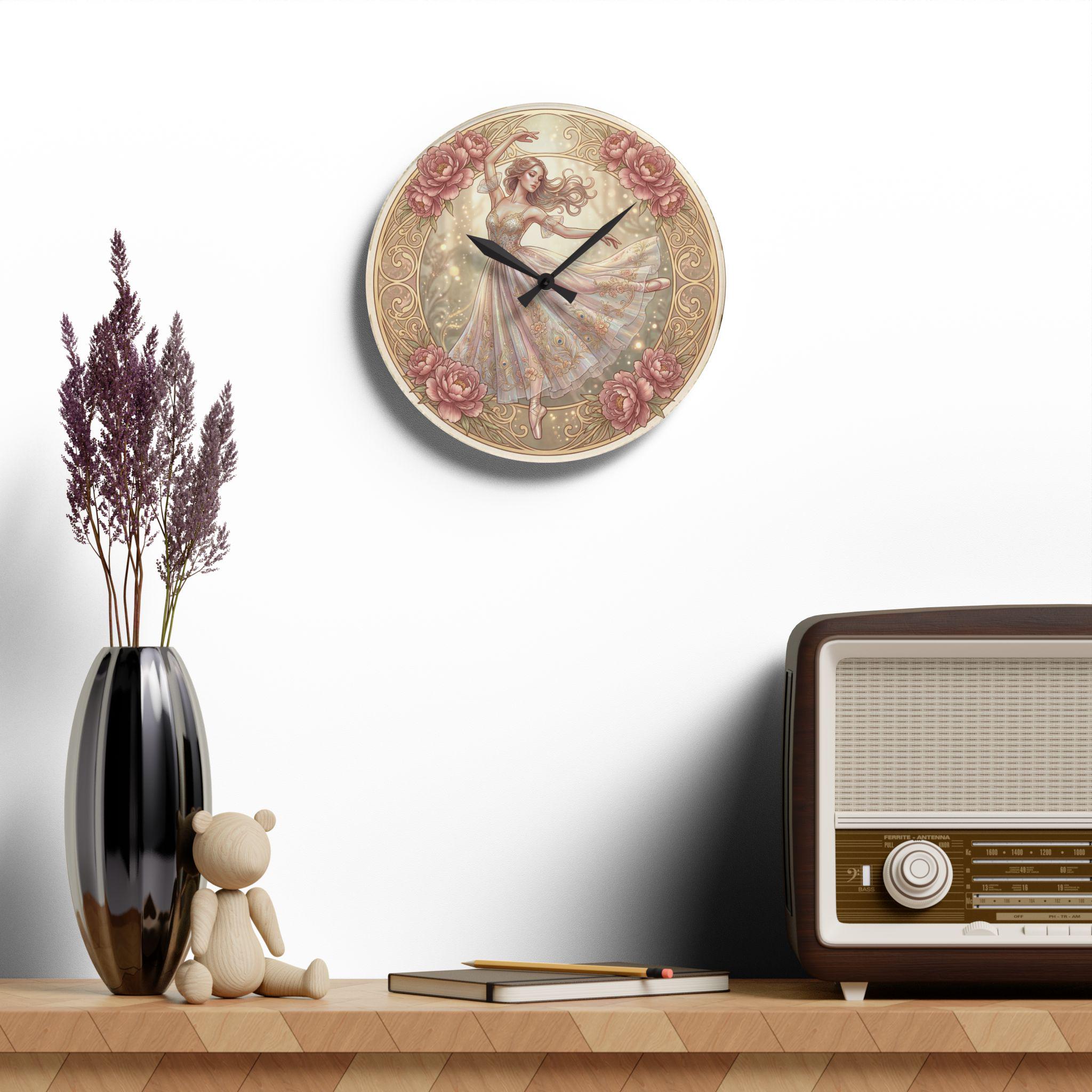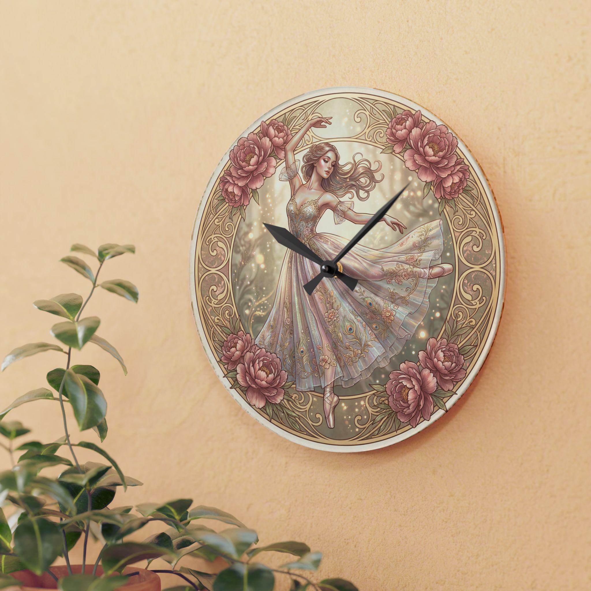 Romantic Ballerina Acrylic Wall Clock | Vintage Floral Dance Art