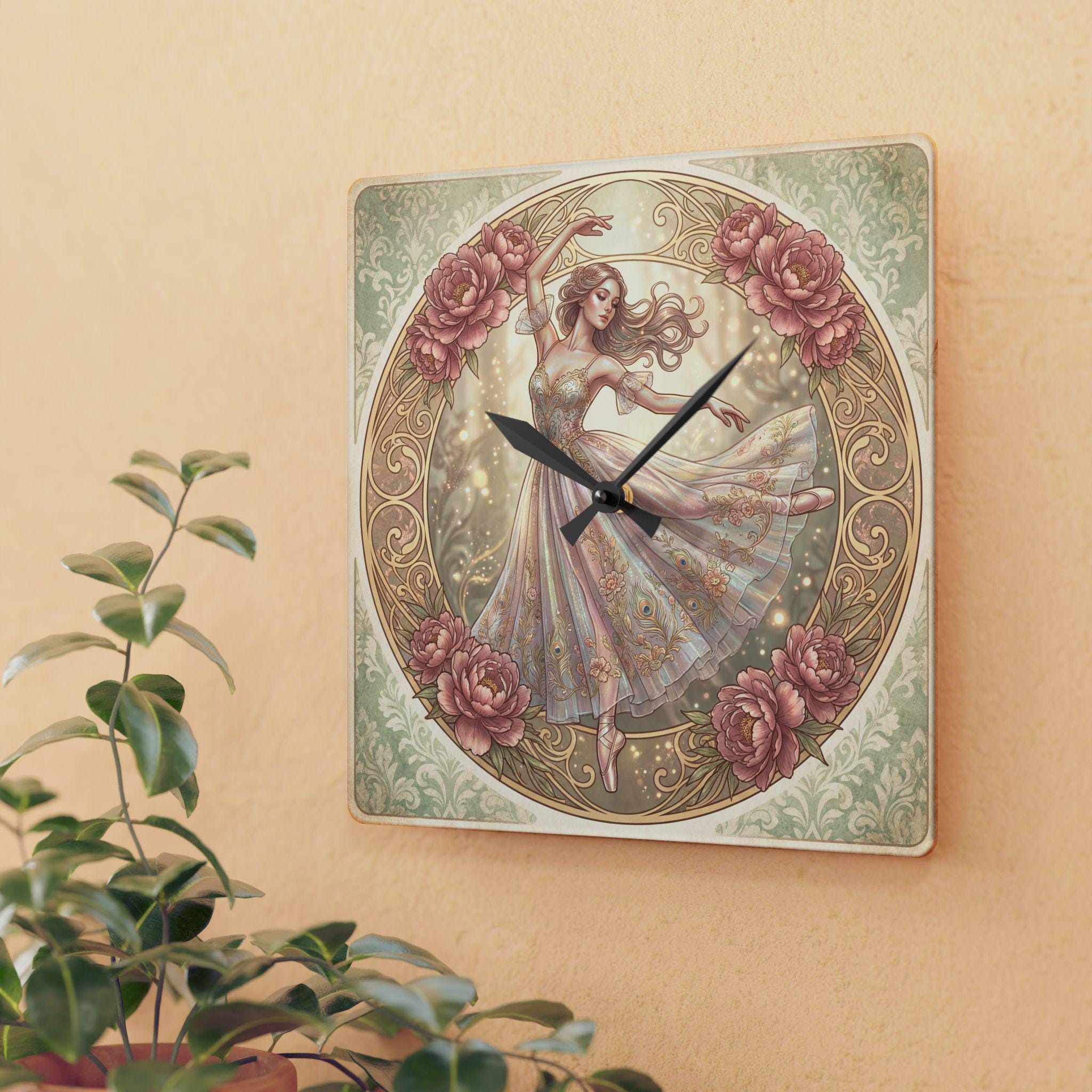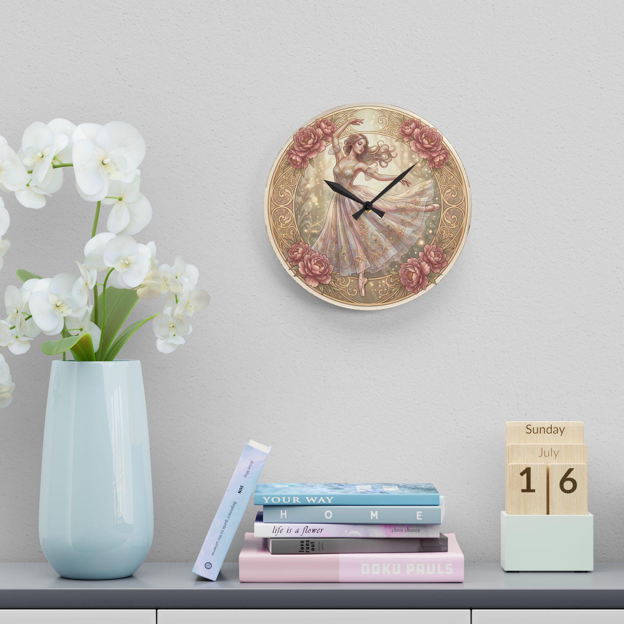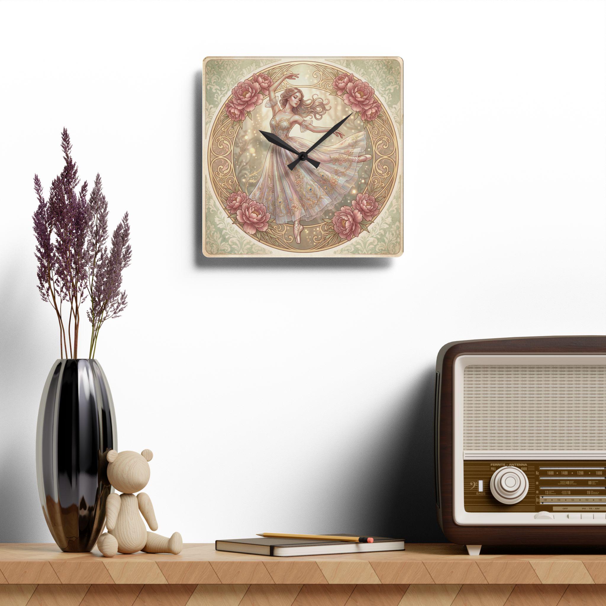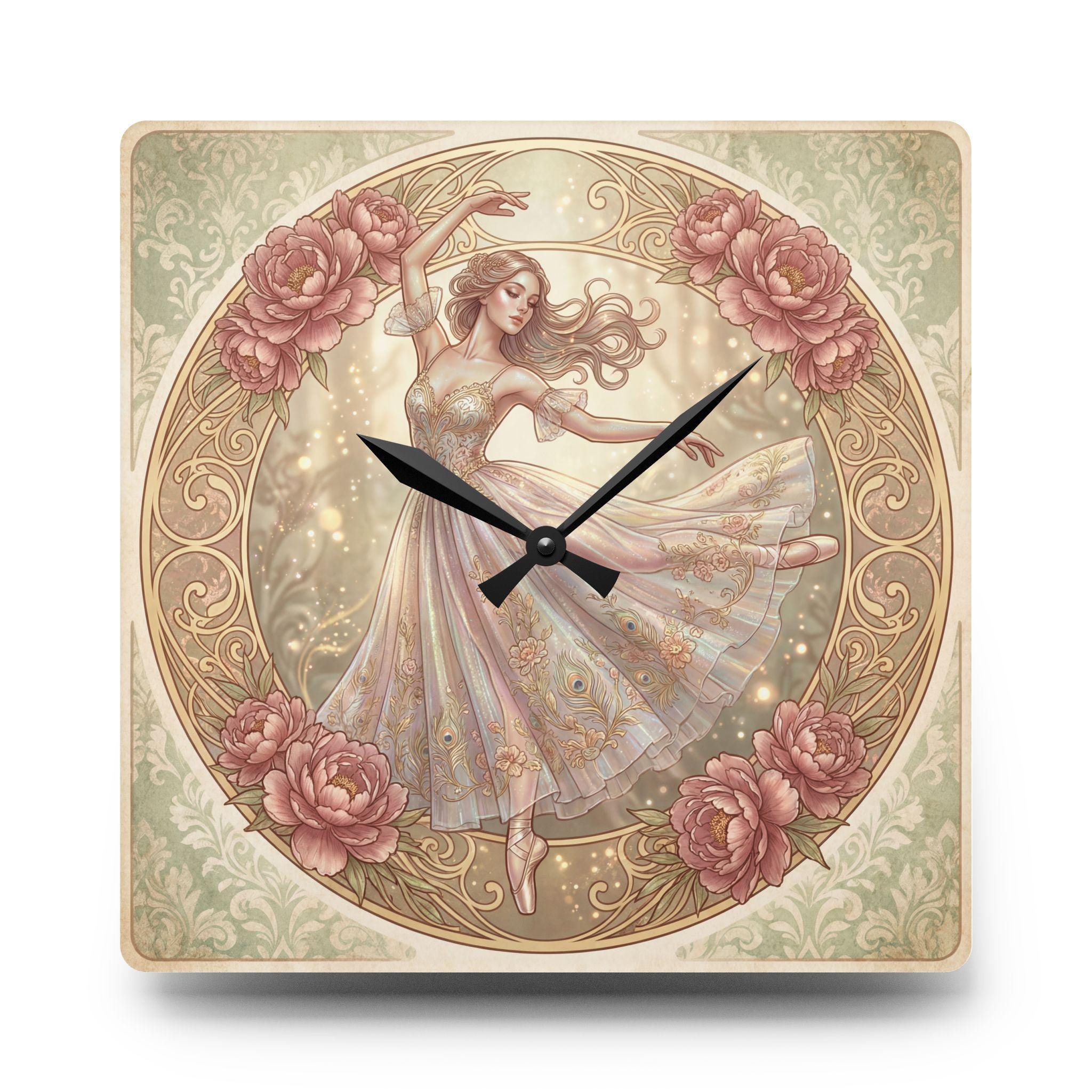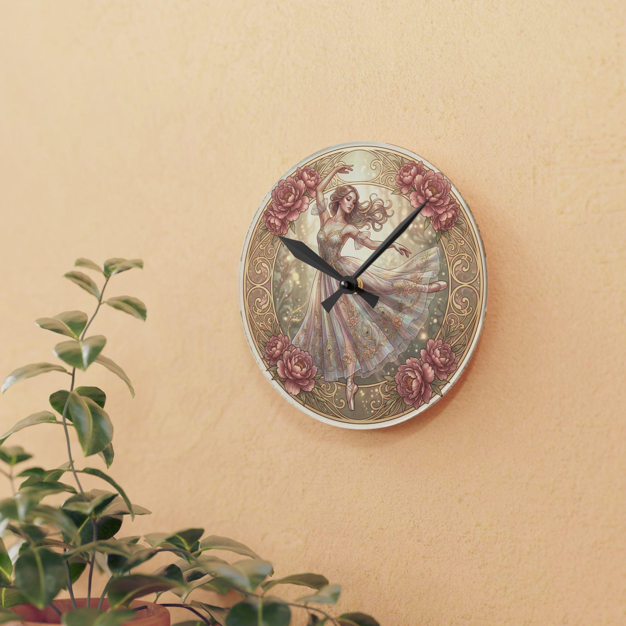 Romantic Ballerina Acrylic Wall Clock | Vintage Floral Dance Art
