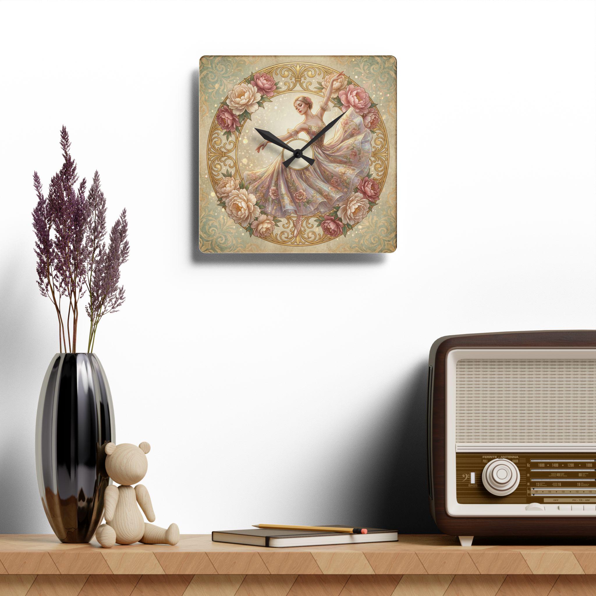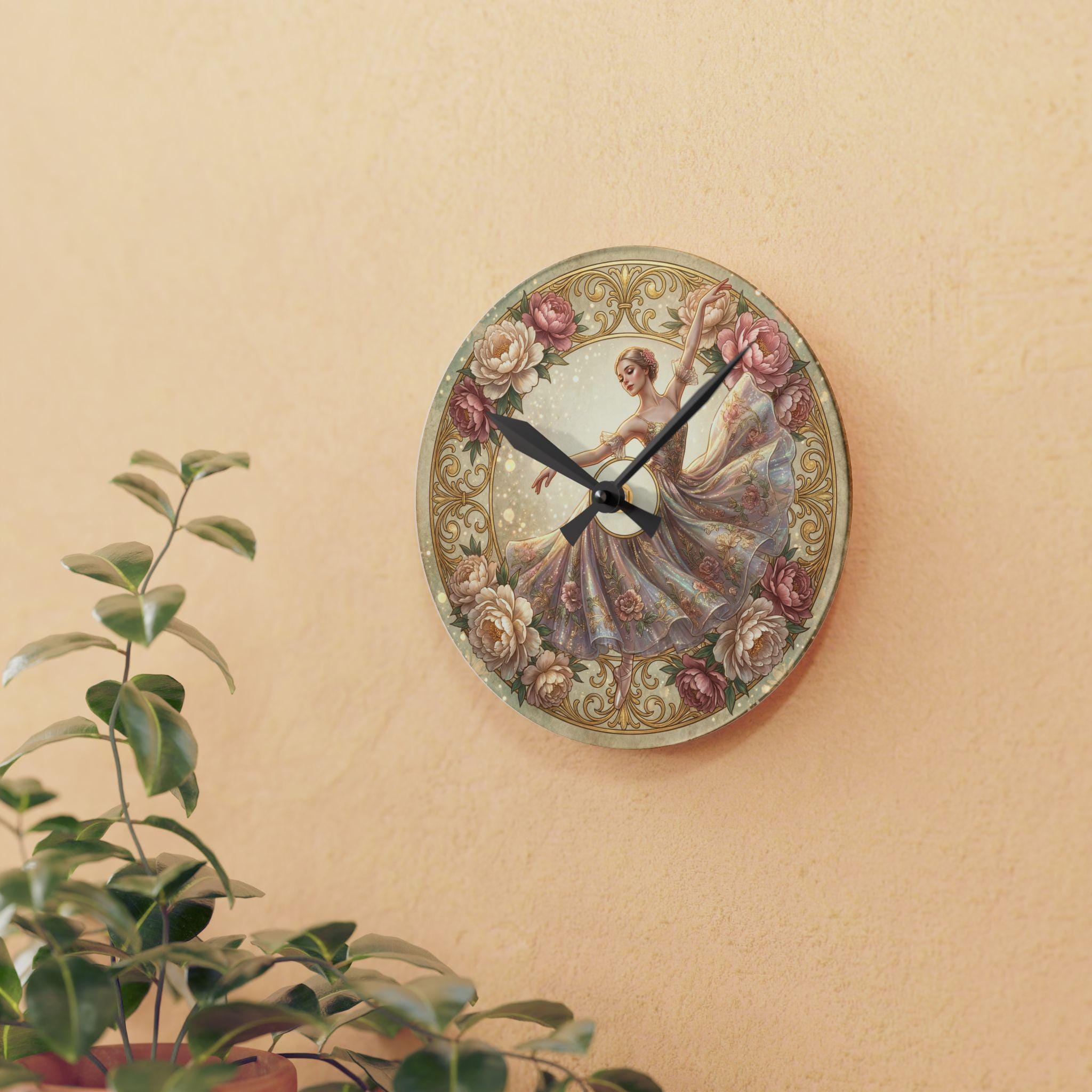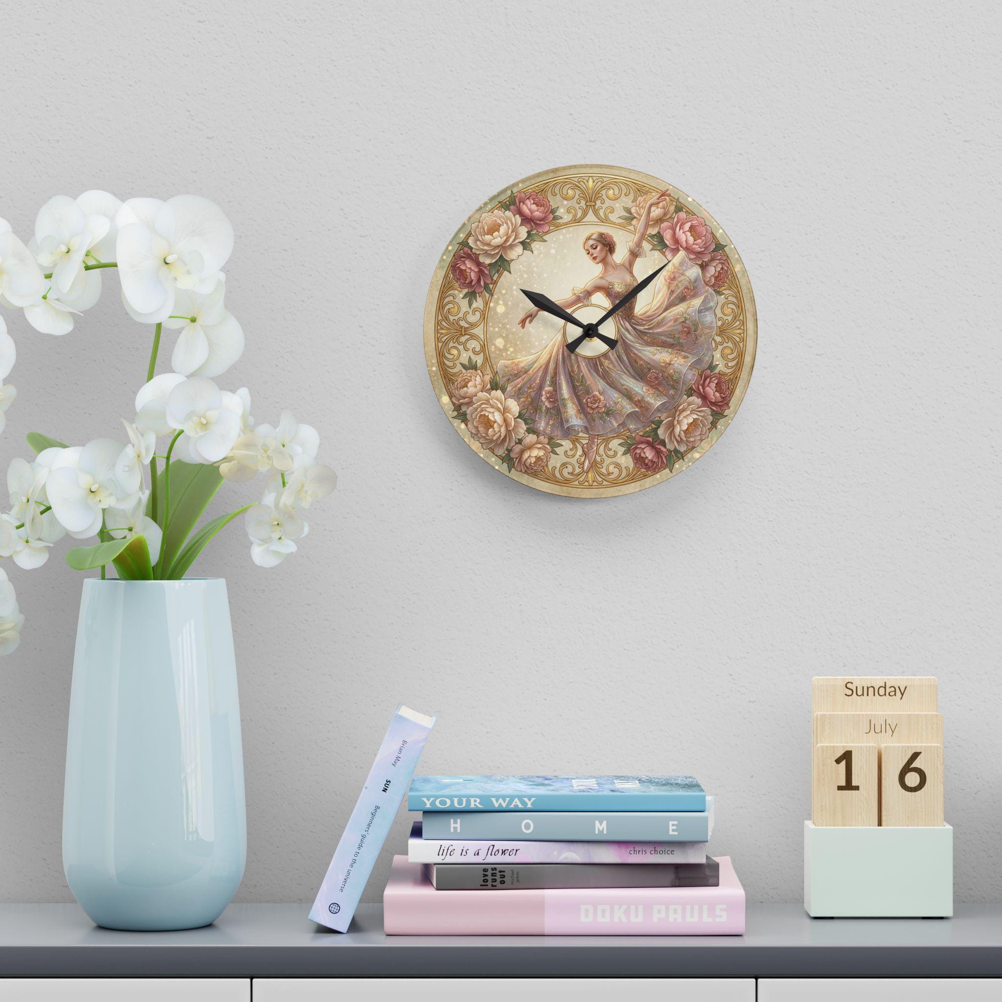 Vintage Ballerina Illustration Acrylic Wall Clock | Floral Victorian Dance Artwork