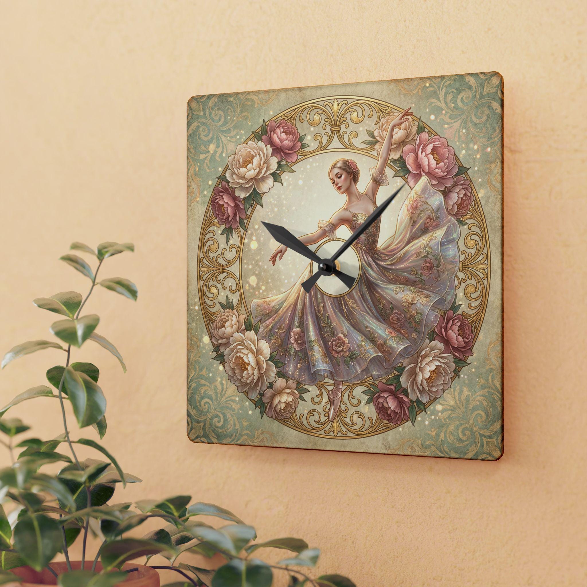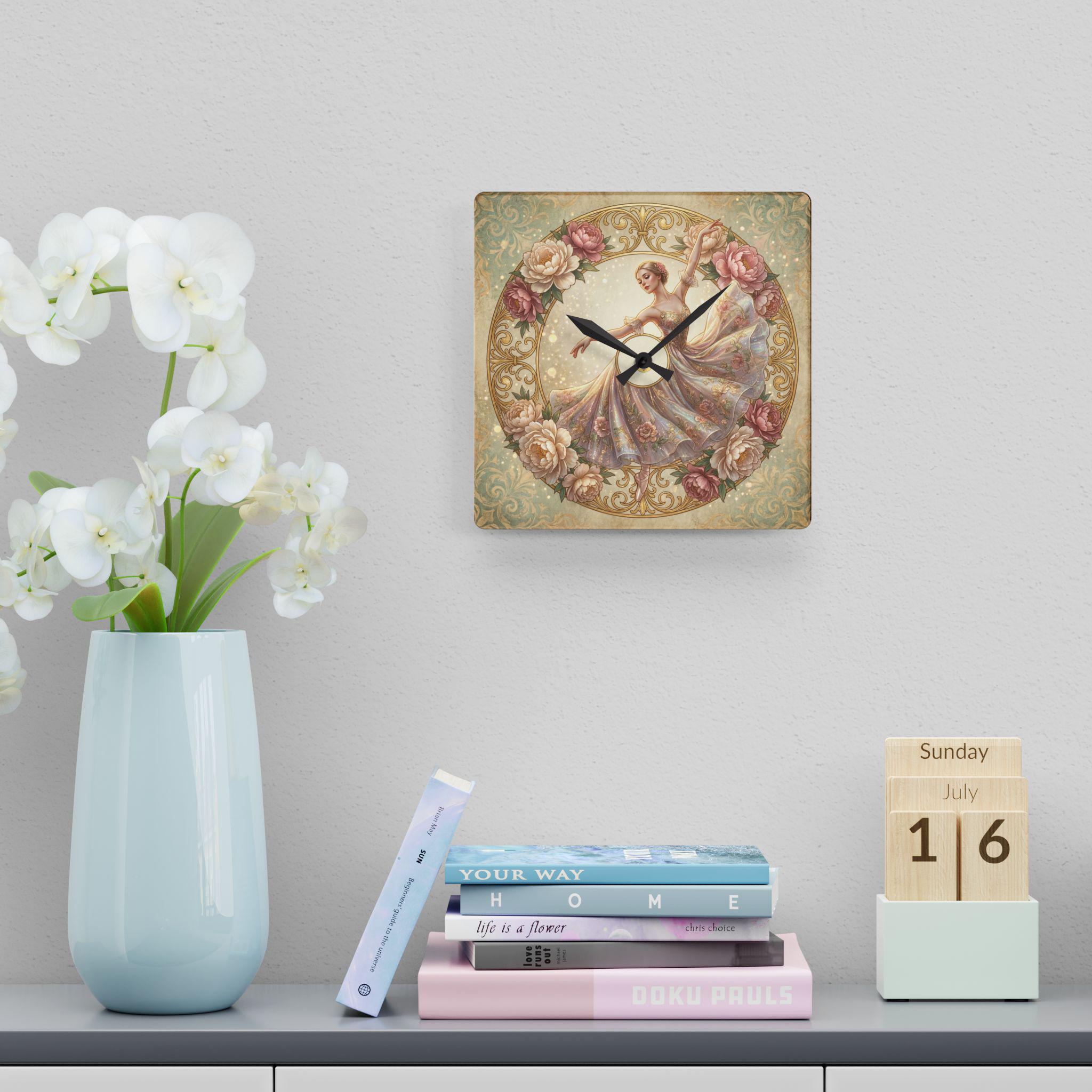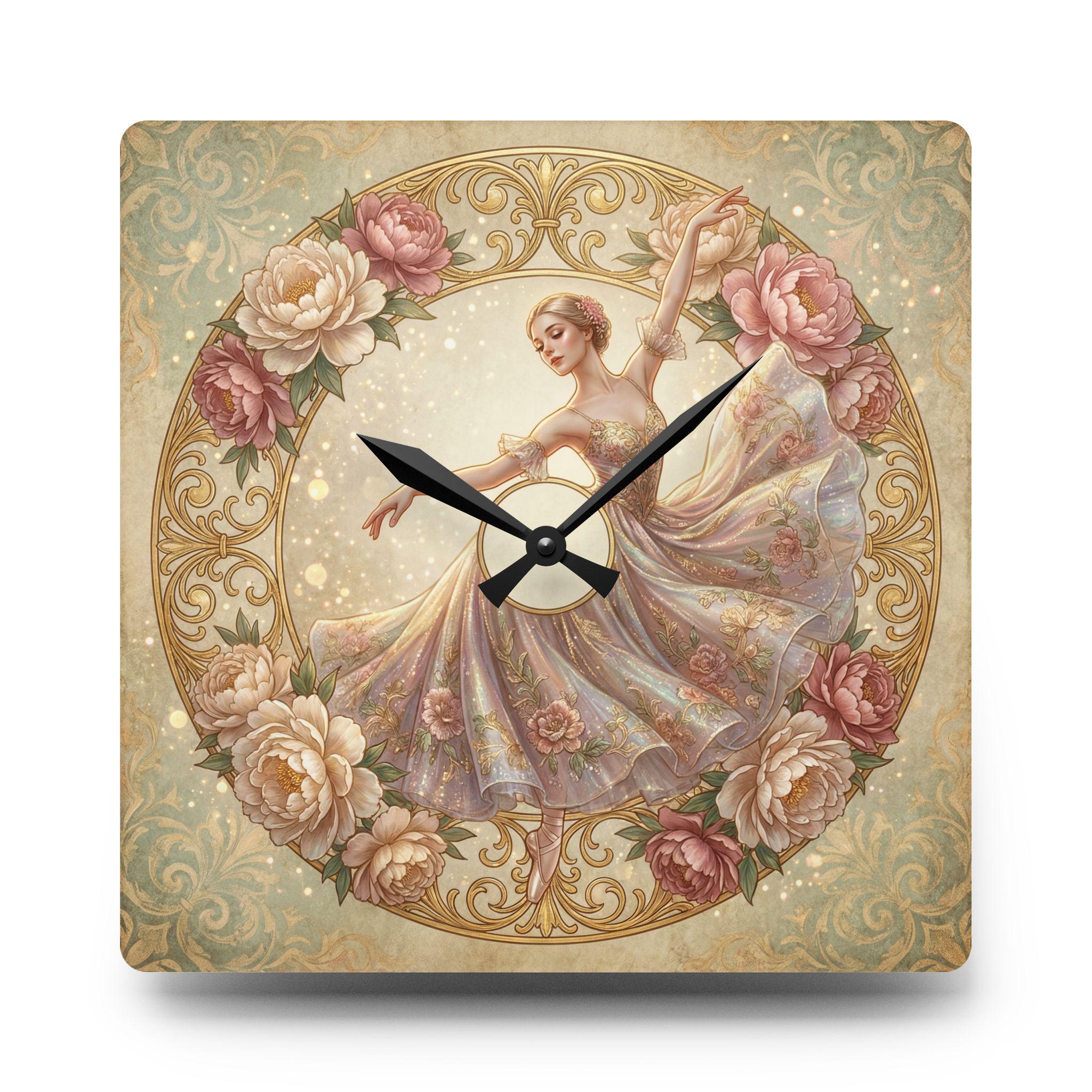 Vintage Ballerina Illustration Acrylic Wall Clock | Floral Victorian Dance Artwork