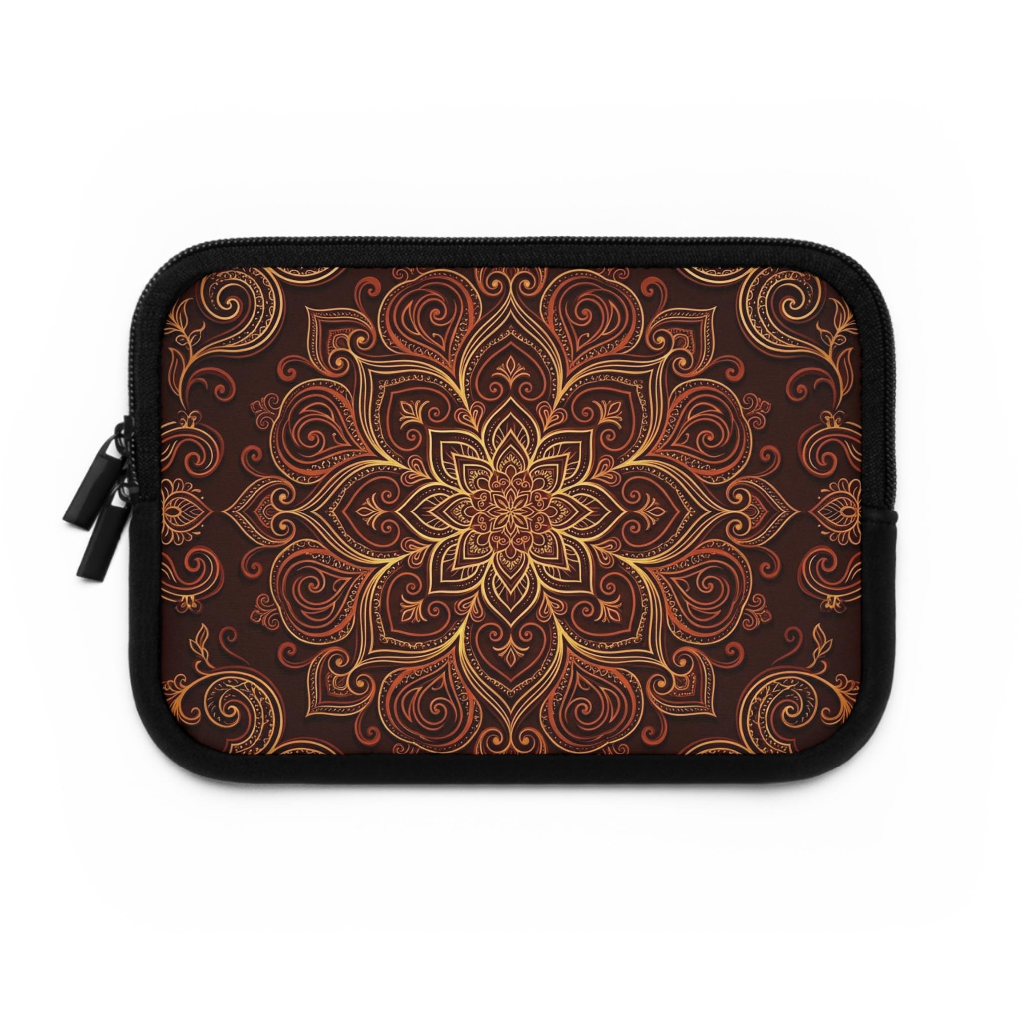 This laptop sleeve carries the delicate rhythm of Mughal henna—an intricate silhouette of a girl traced in flowing floral vines. It’s for someone who treats their laptop like a companion, sliding it into a soft, padded nest before heading to a café, a studio, or a train. The smooth neoprene surface shows off the detailed henna motif with crisp contrast against the solid black back. Lightweight and water-resistant, it soothes the worry of small bumps and splashes while still feeling elegant in hand. Dual zippers let you open it wide or zip it shut quickly, and multiple sizes mean the fit feels intentional, not forced. It’s a quiet way to carry art with you—useful, protective, and quietly personal, especially on days when you want your tech to reflect a gentler, culture-rich side of yourself.