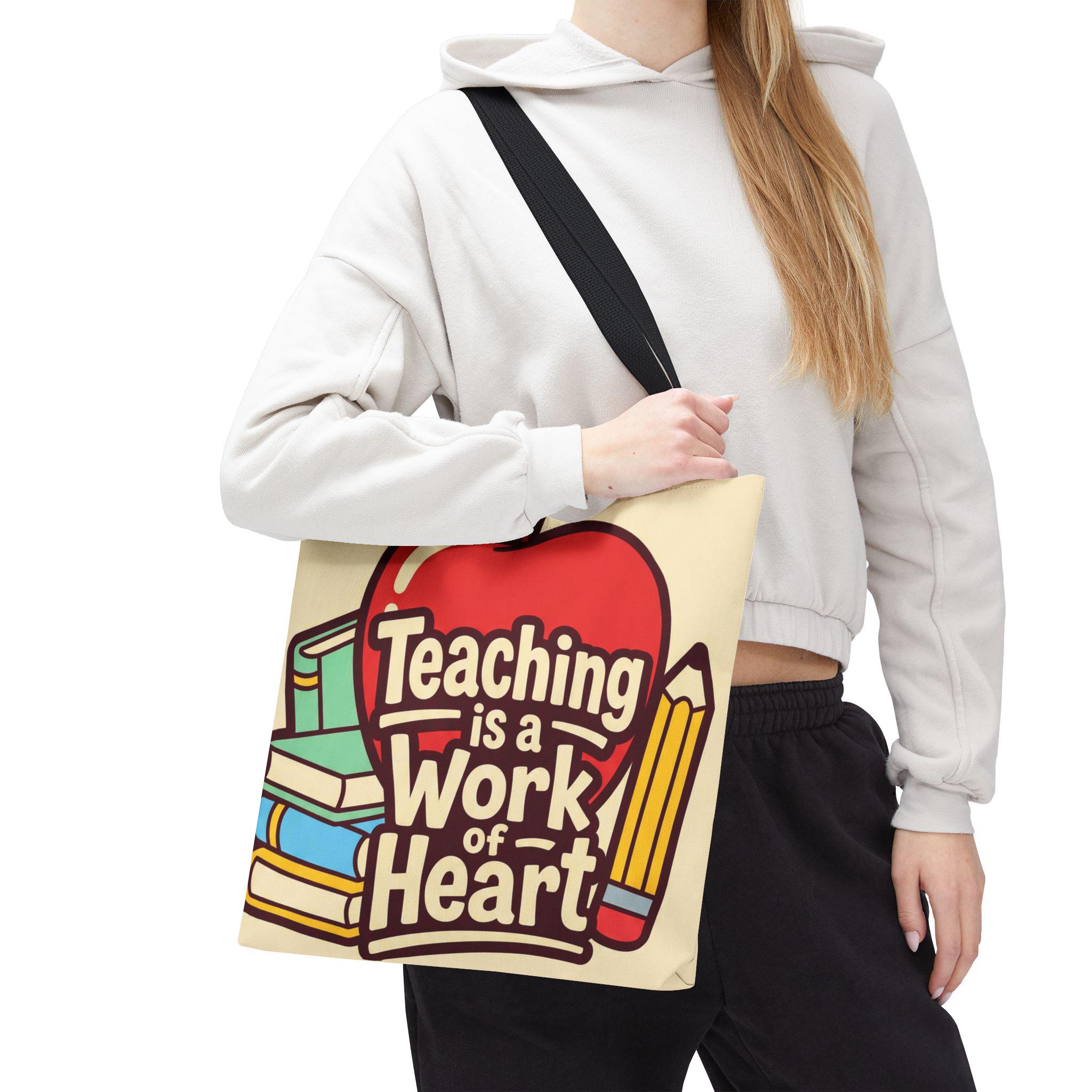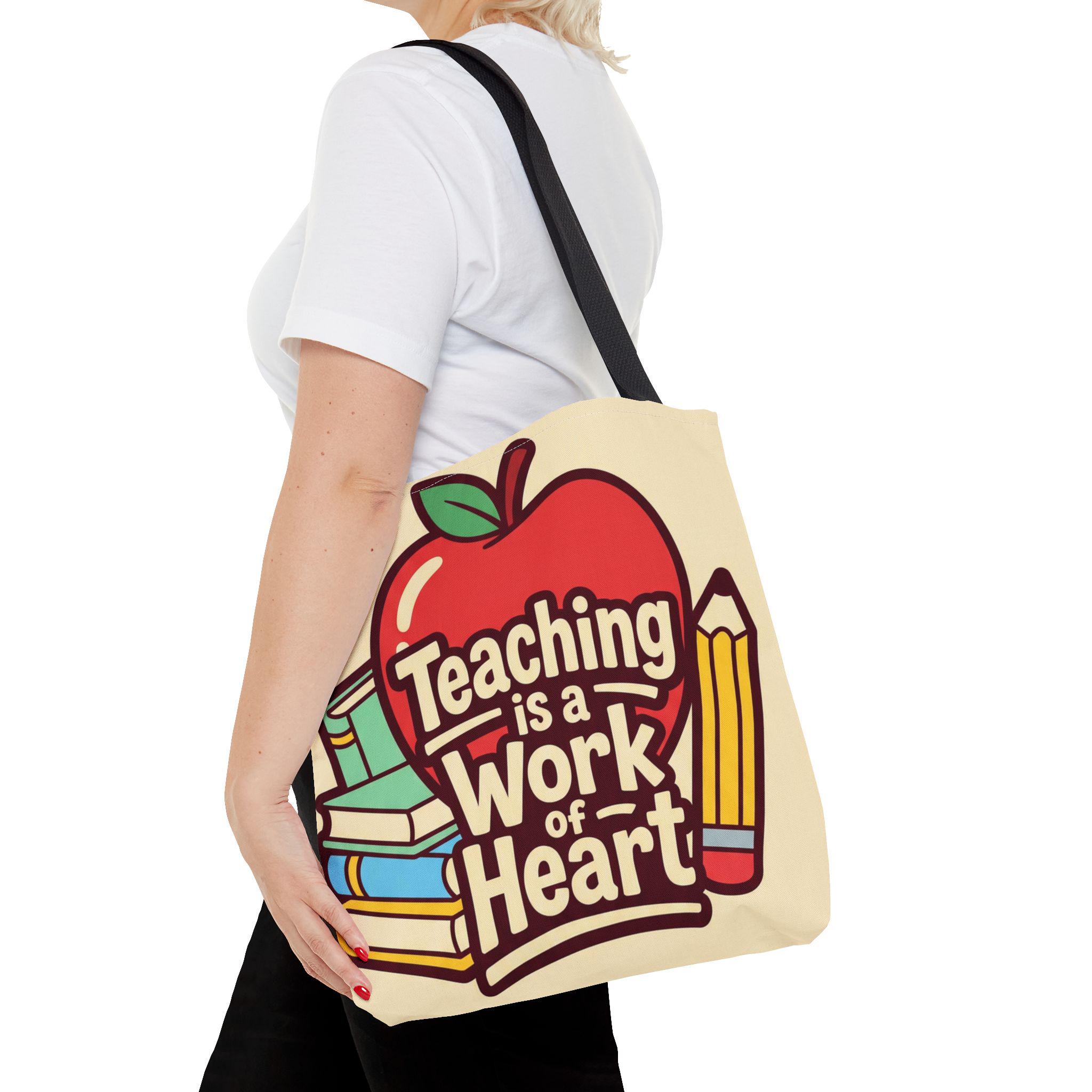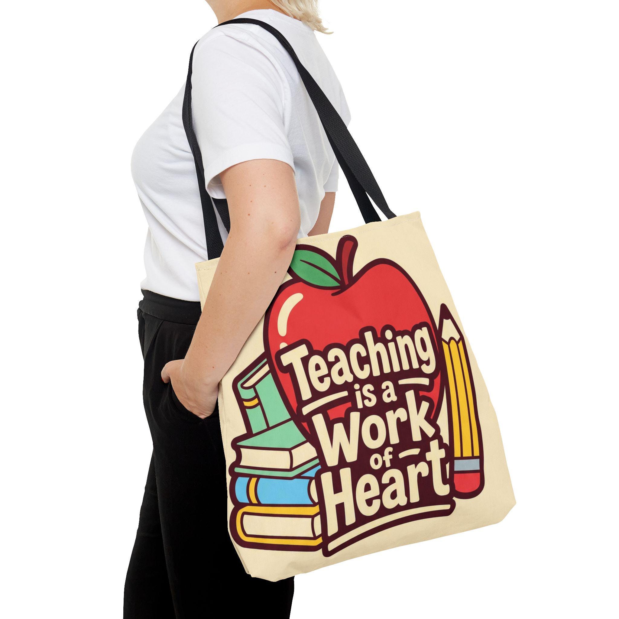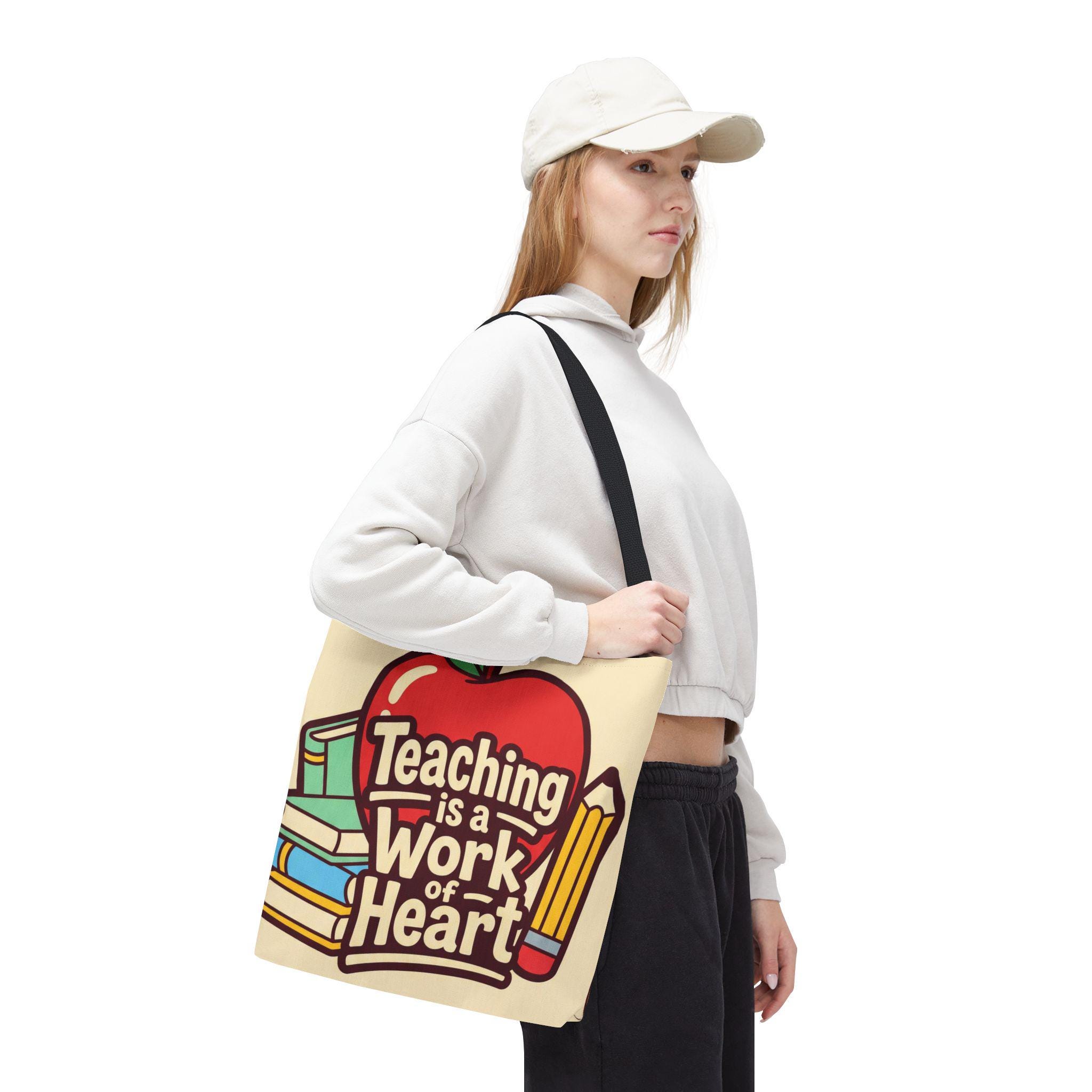 Teaching Is a Work of Heart Tote Bag | Teacher Appreciation Gift, School Bag, Apple Books Design