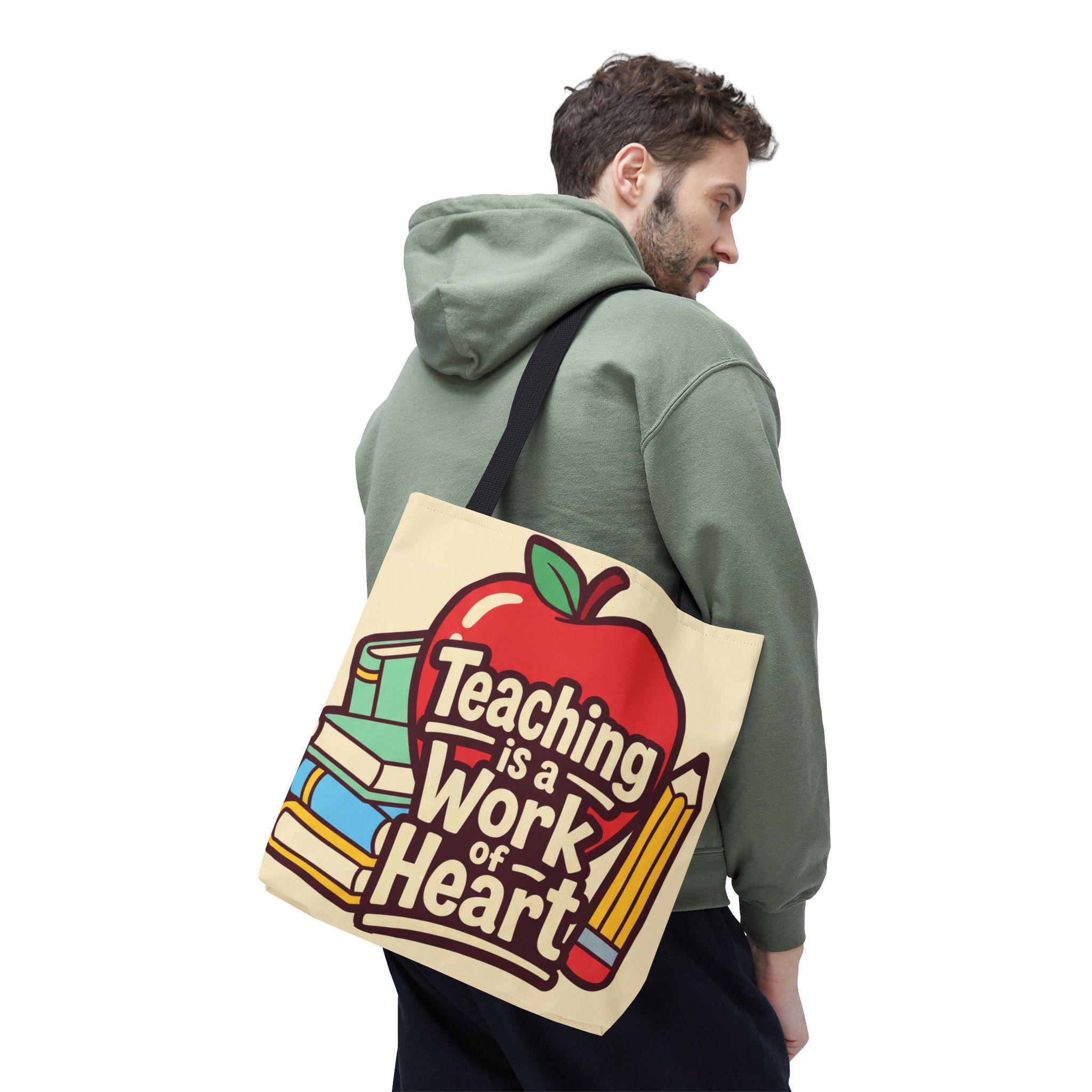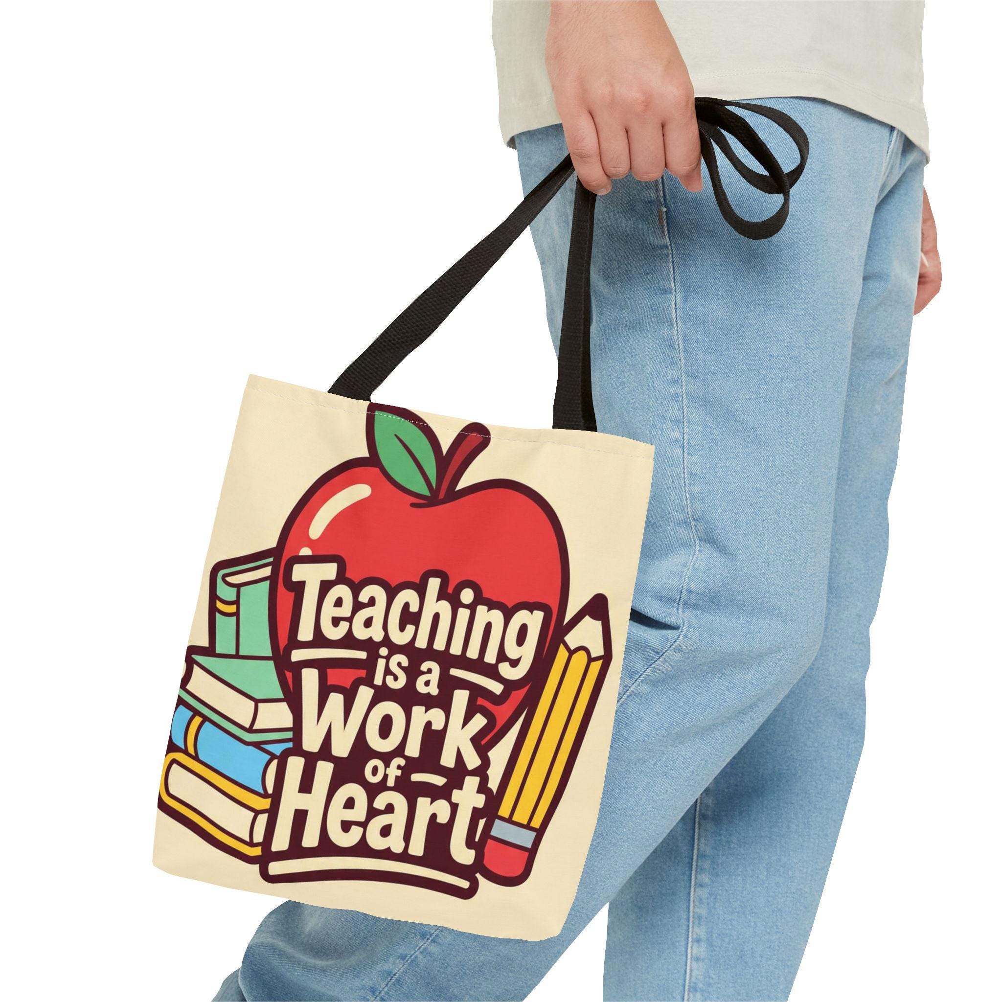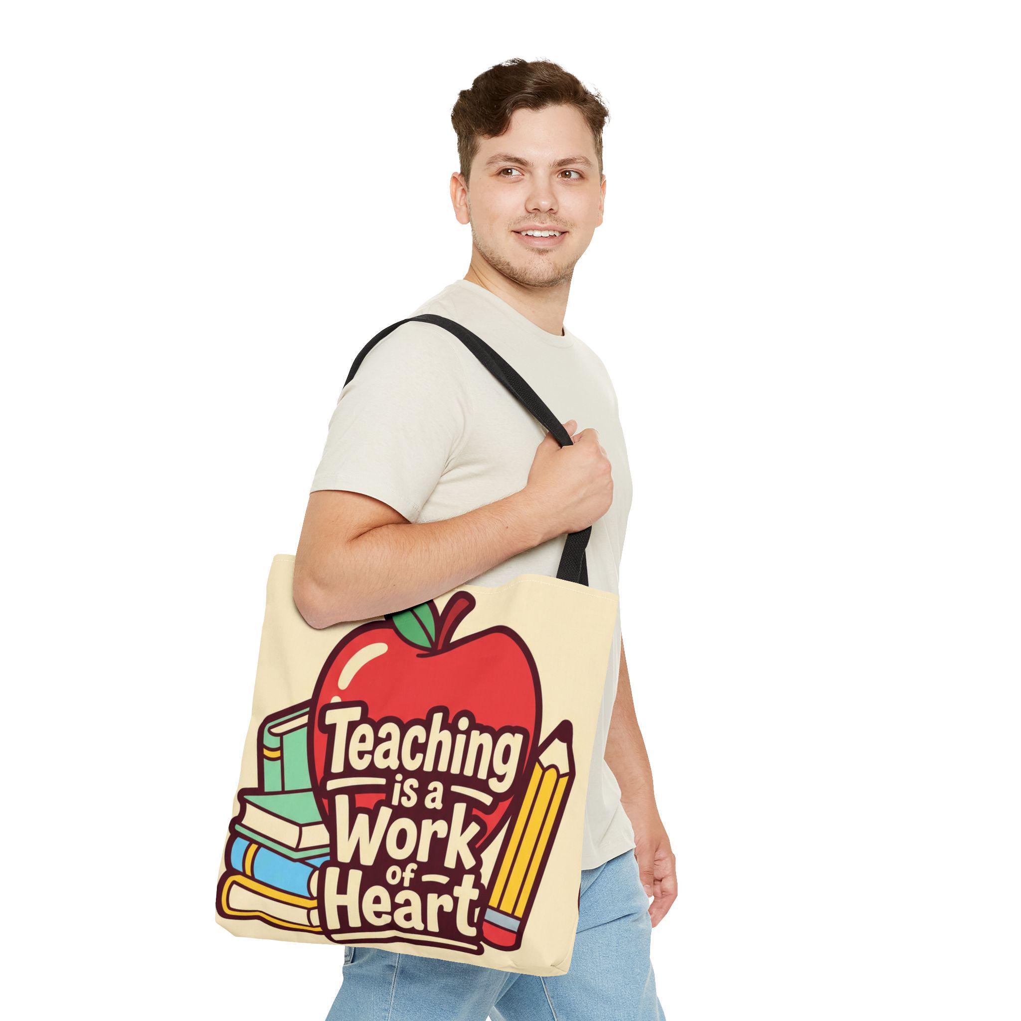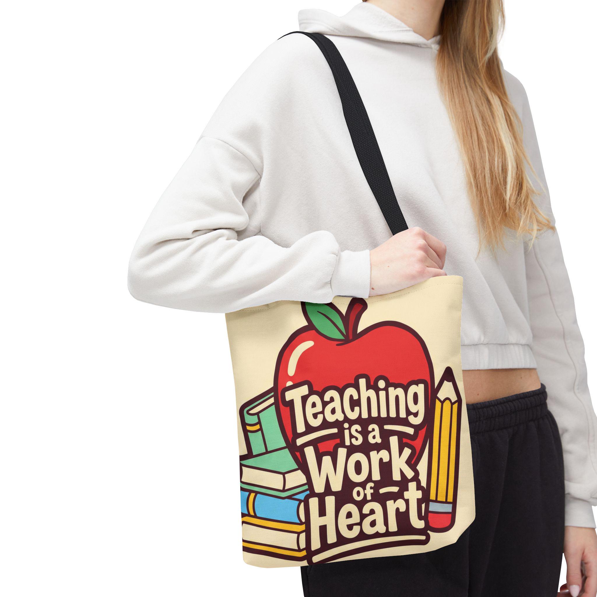 Teaching Is a Work of Heart Tote Bag | Teacher Appreciation Gift, School Bag, Apple Books Design