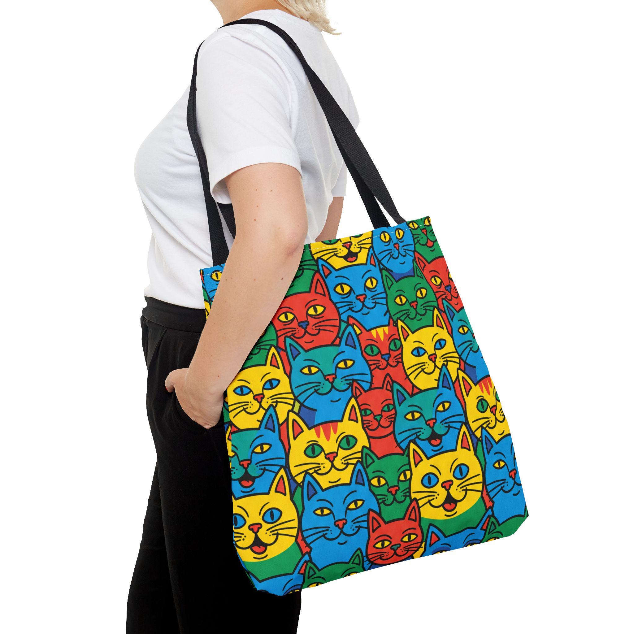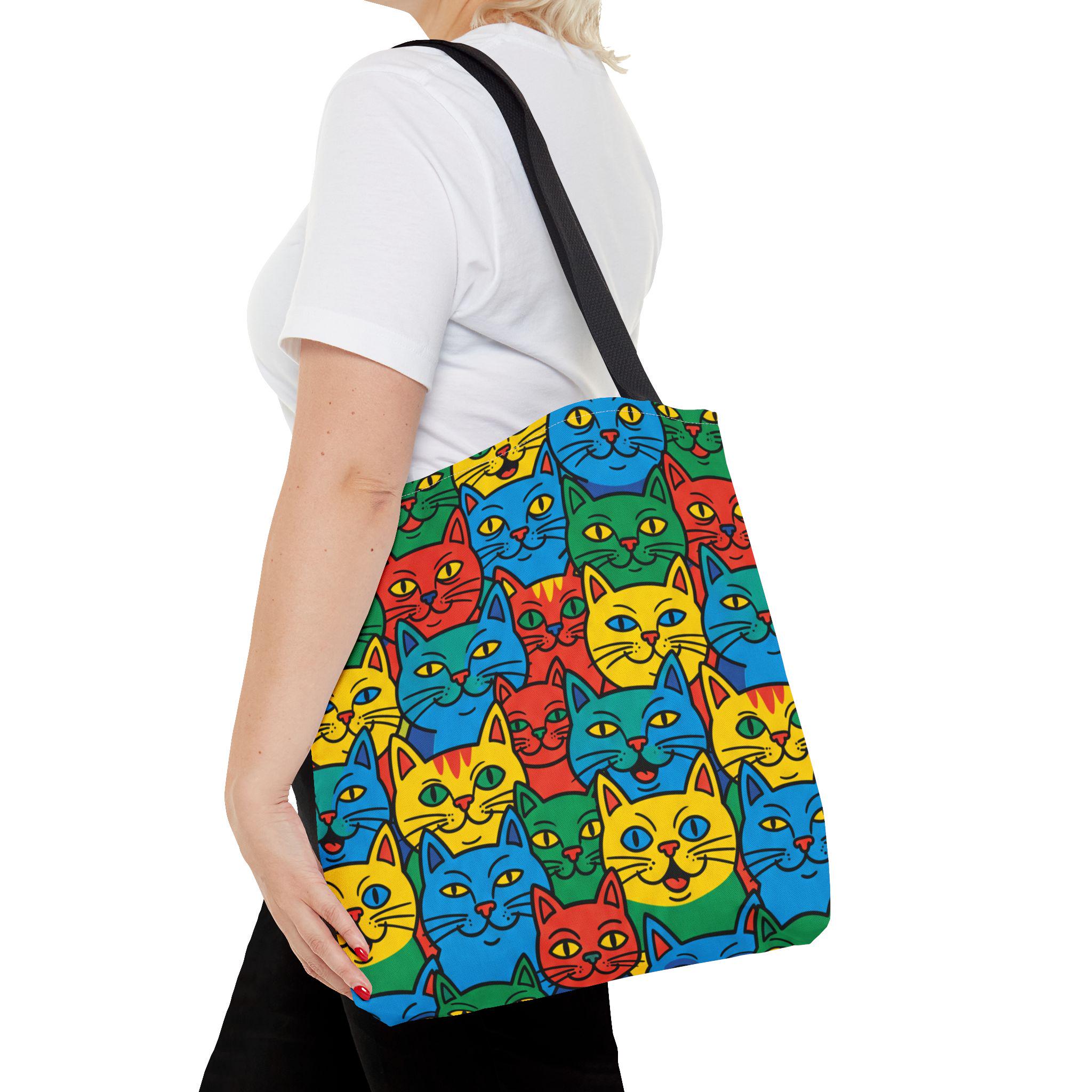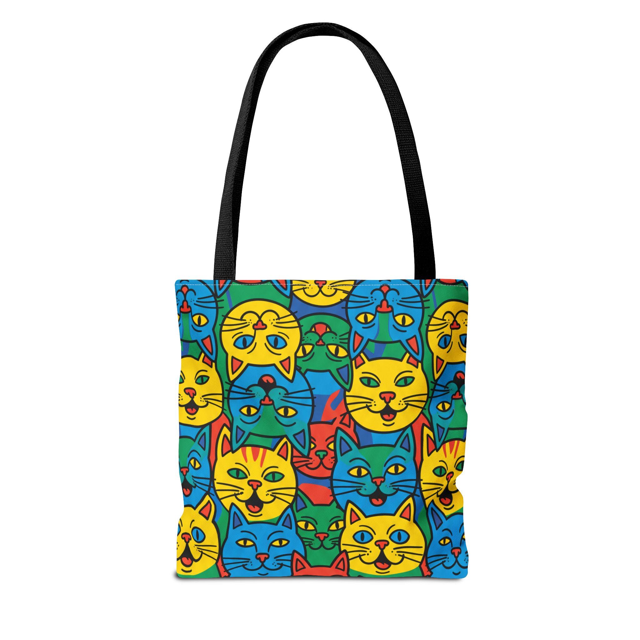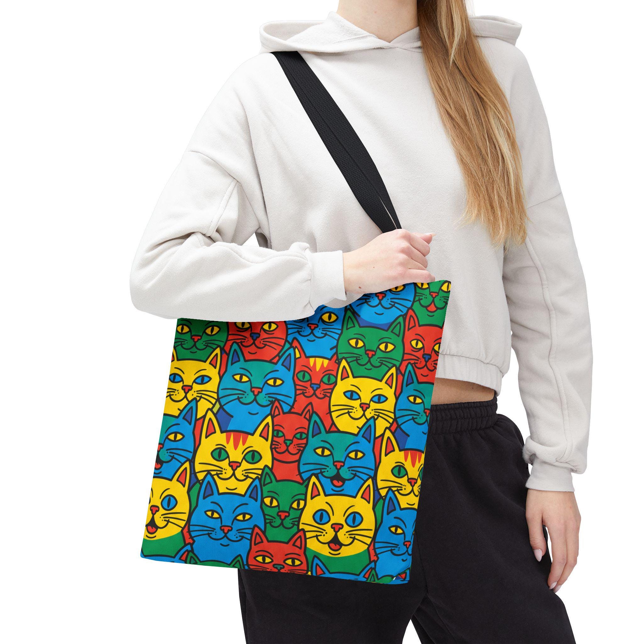 Colorful Cat Pattern Tote Bag | Bright Pop Art Feline Print