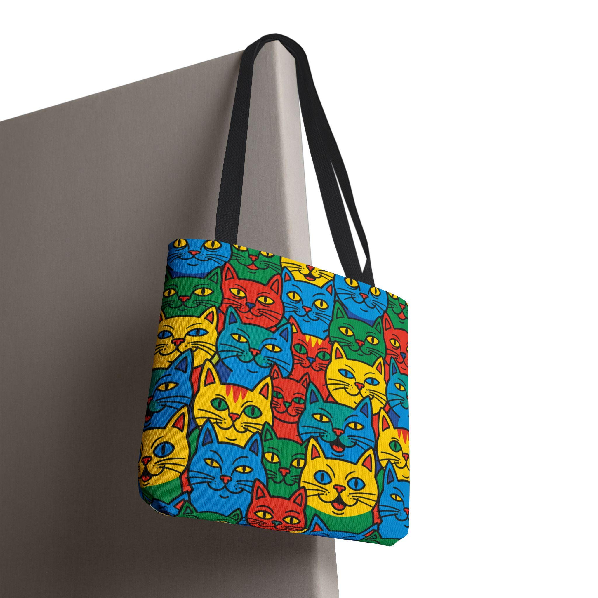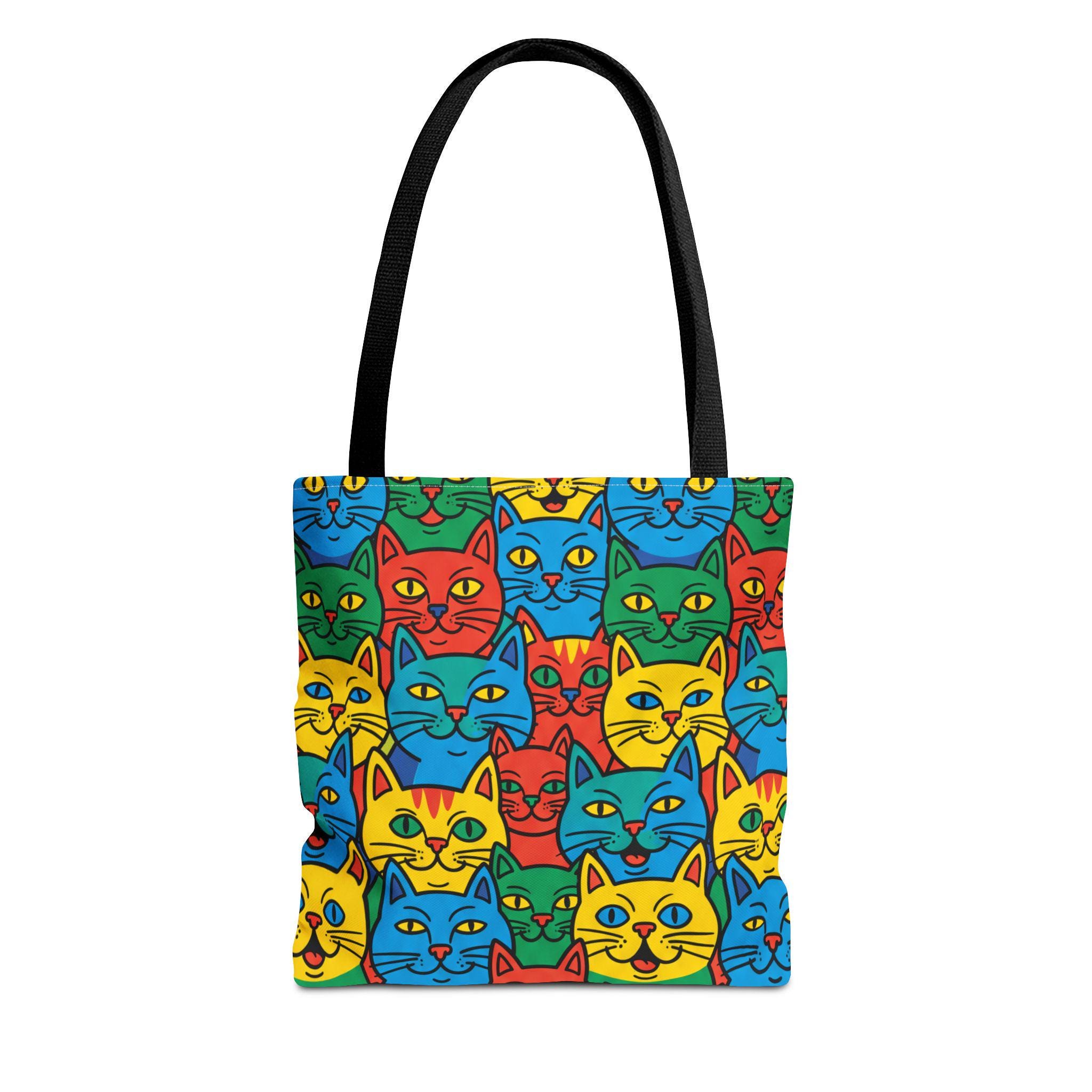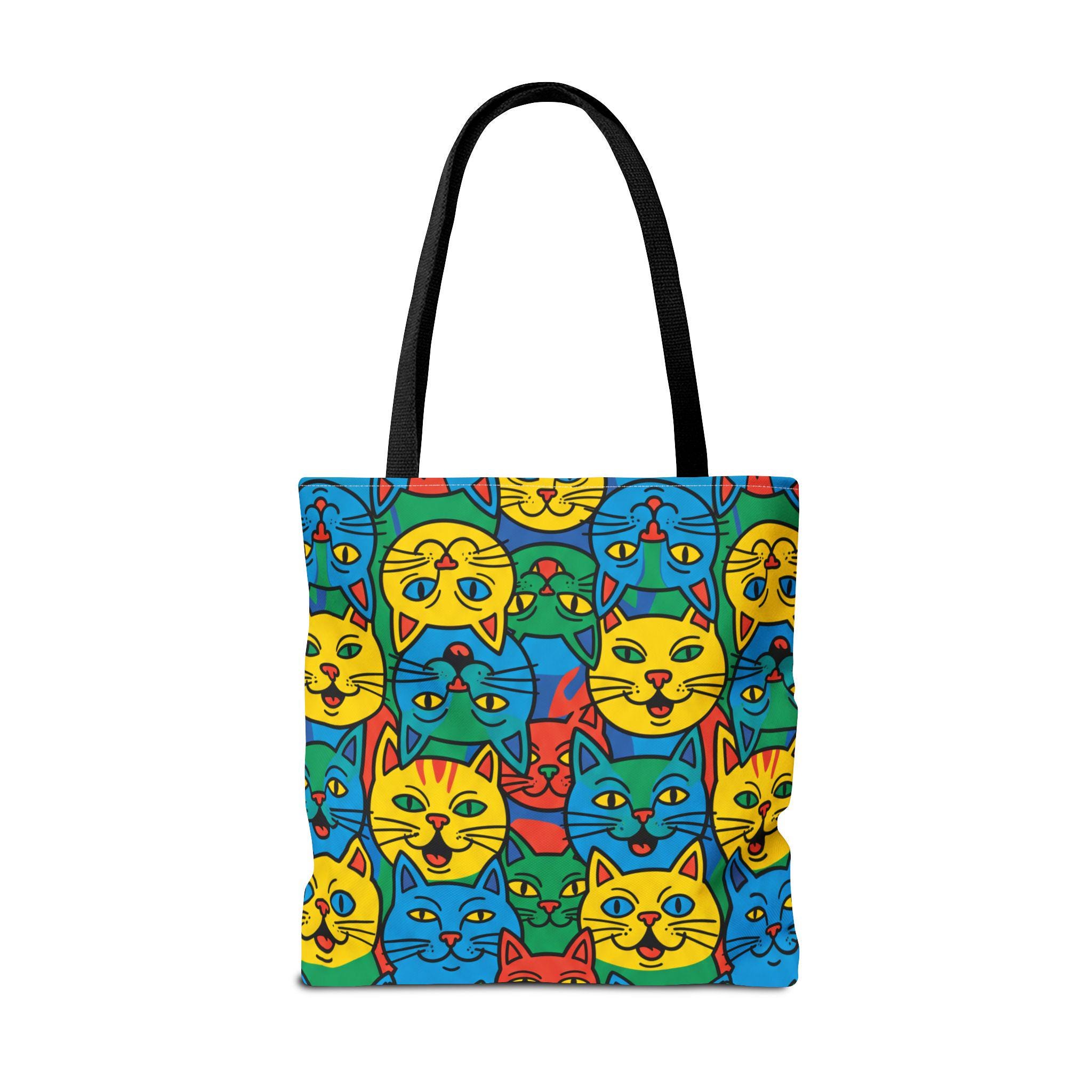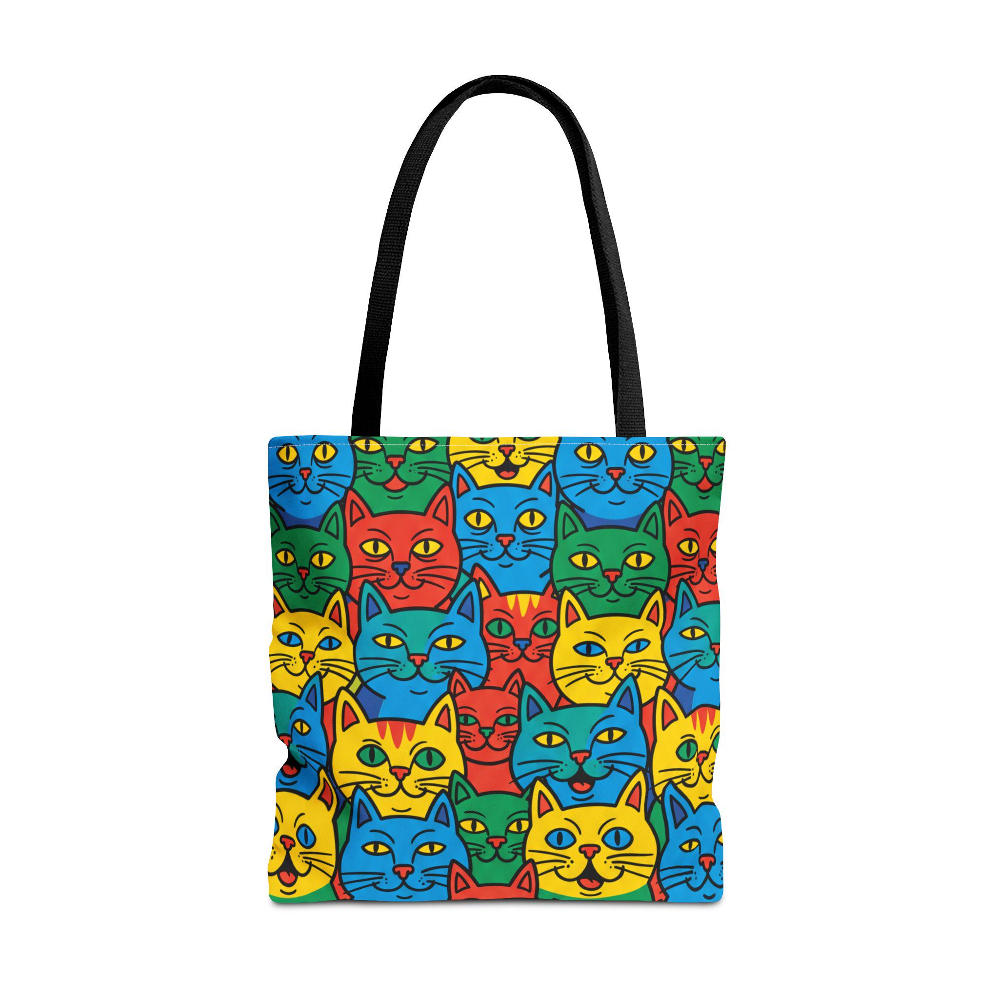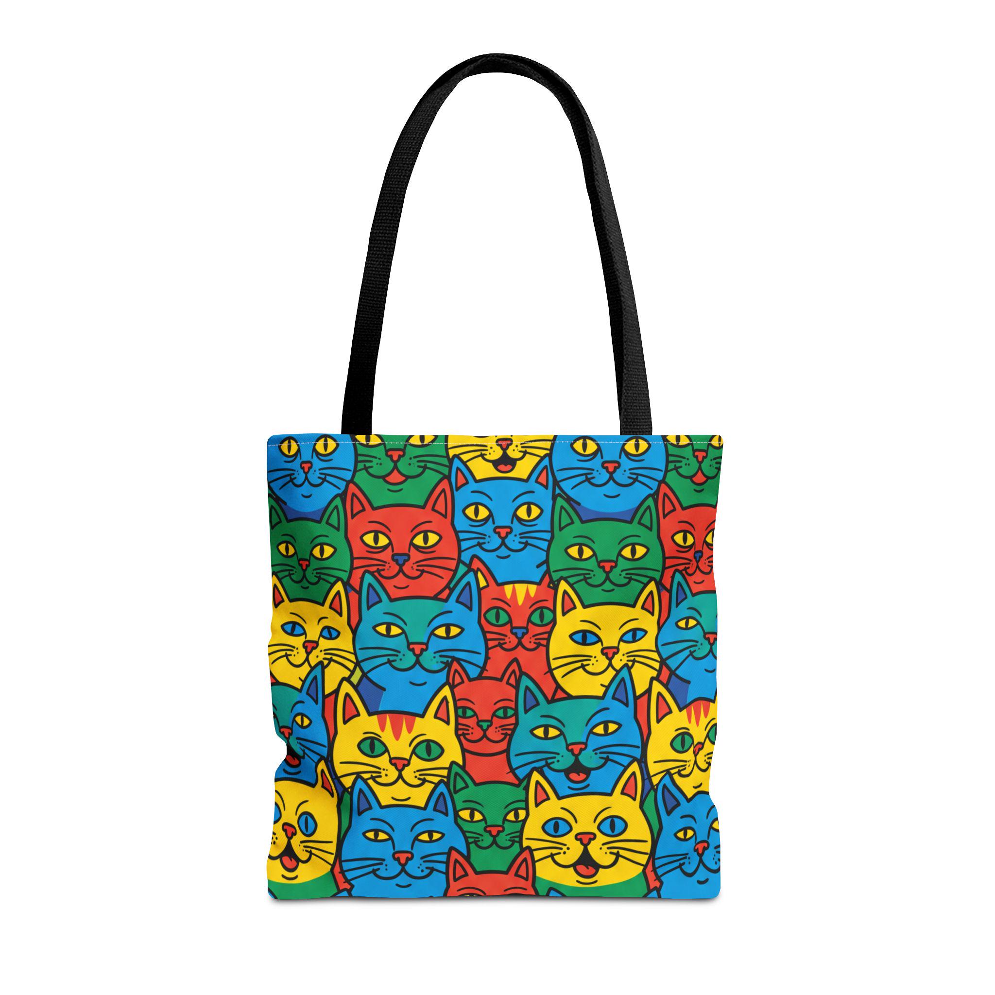 Bright, playful, and made to carry joy, this tote brings a neighborhood of colorful cat faces with you wherever you go. The cheerful pop-art pattern folds into daily life — grocery runs, library trips, or an afternoon at the farmer’s market — and adds a spark to mundane moments. Lightweight yet sturdy, the bag holds its shape and breathes confidence: boxed corners give extra room, reinforced stitch handles stand up to frequent use, and the laminated interior protects against spills. Choose a handle color to match your vibe and carry a little gallery of feline smiles that make errands feel like a small celebration.