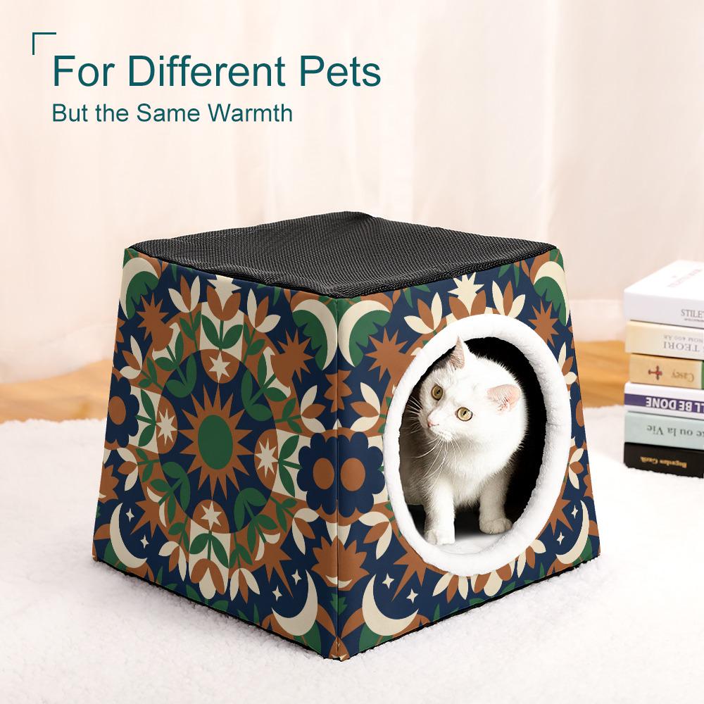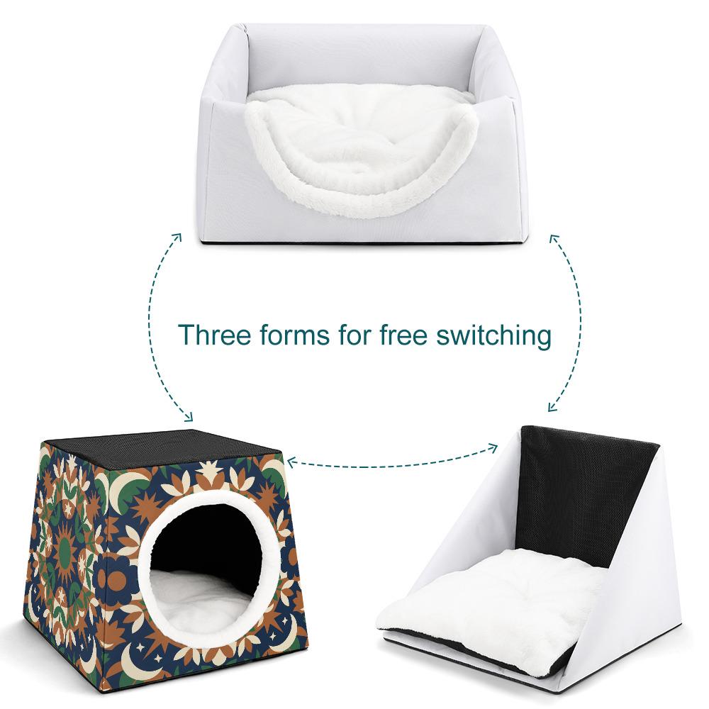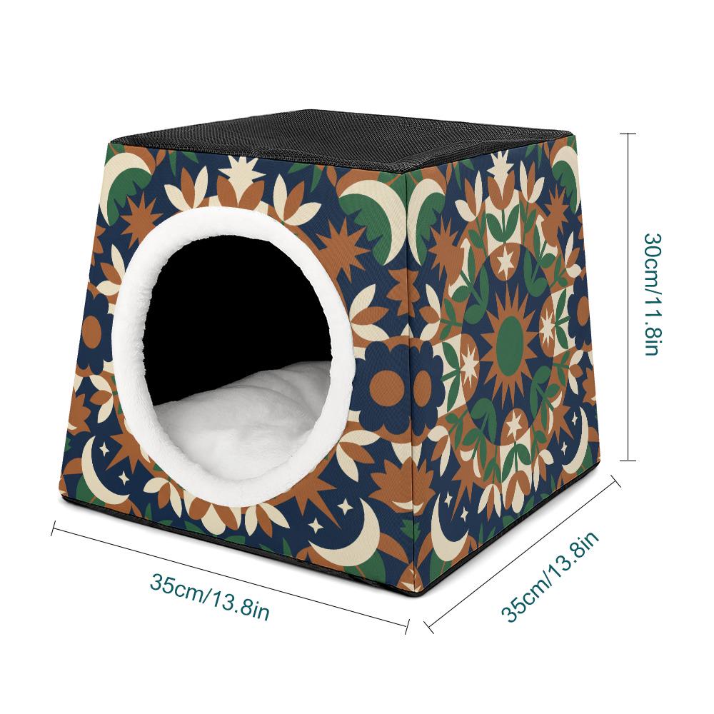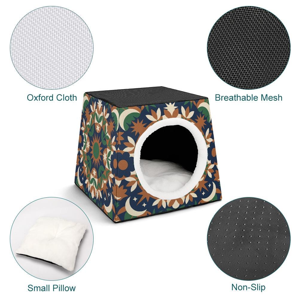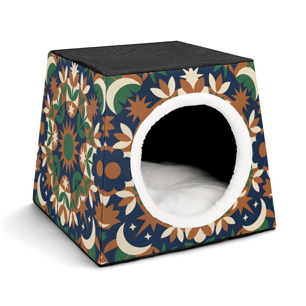 Gone are the days of hiding the ugly pet bed when guests come over! Featuring a stunning earth-toned mandala, moon, and star pattern, this modern pet house is designed to look like a beautiful piece of bohemian decor in your living room, bedroom, or sunroom.
