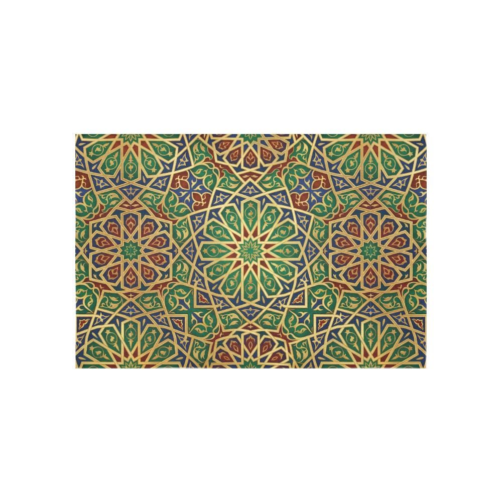 Product Details: • Dimensions: 60" (W) x 40" (H) — The perfect oversized landscape statement piece. • Material: Premium Linen-Textured Polyester Blend (Ballproof, lightweight, and vibrant). • Print: High-definition, one-sided print featuring intricate Islamic/Moroccan geometric art. • Origin: Proudly printed and shipped from our USA-based factory. (Note: Currently shipping within the US only).