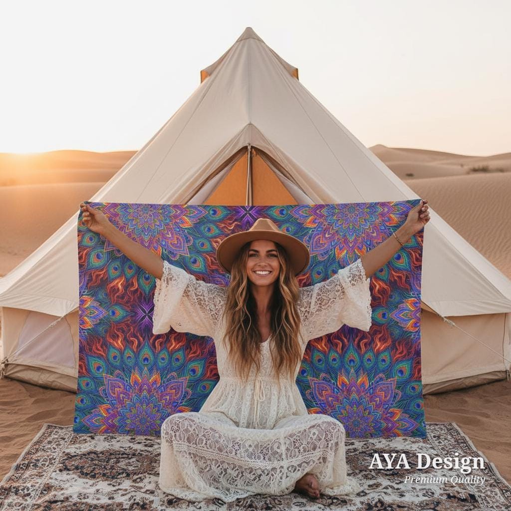 ✨ Versatile Magic for the Free Spirit Don't limit this gorgeous artwork to just your walls! Because it's exquisitely lightweight and durable, it folds up beautifully to become your favorite festival blanket, a chic beach towel, a vibrant picnic mat, or even a bold tablecloth.