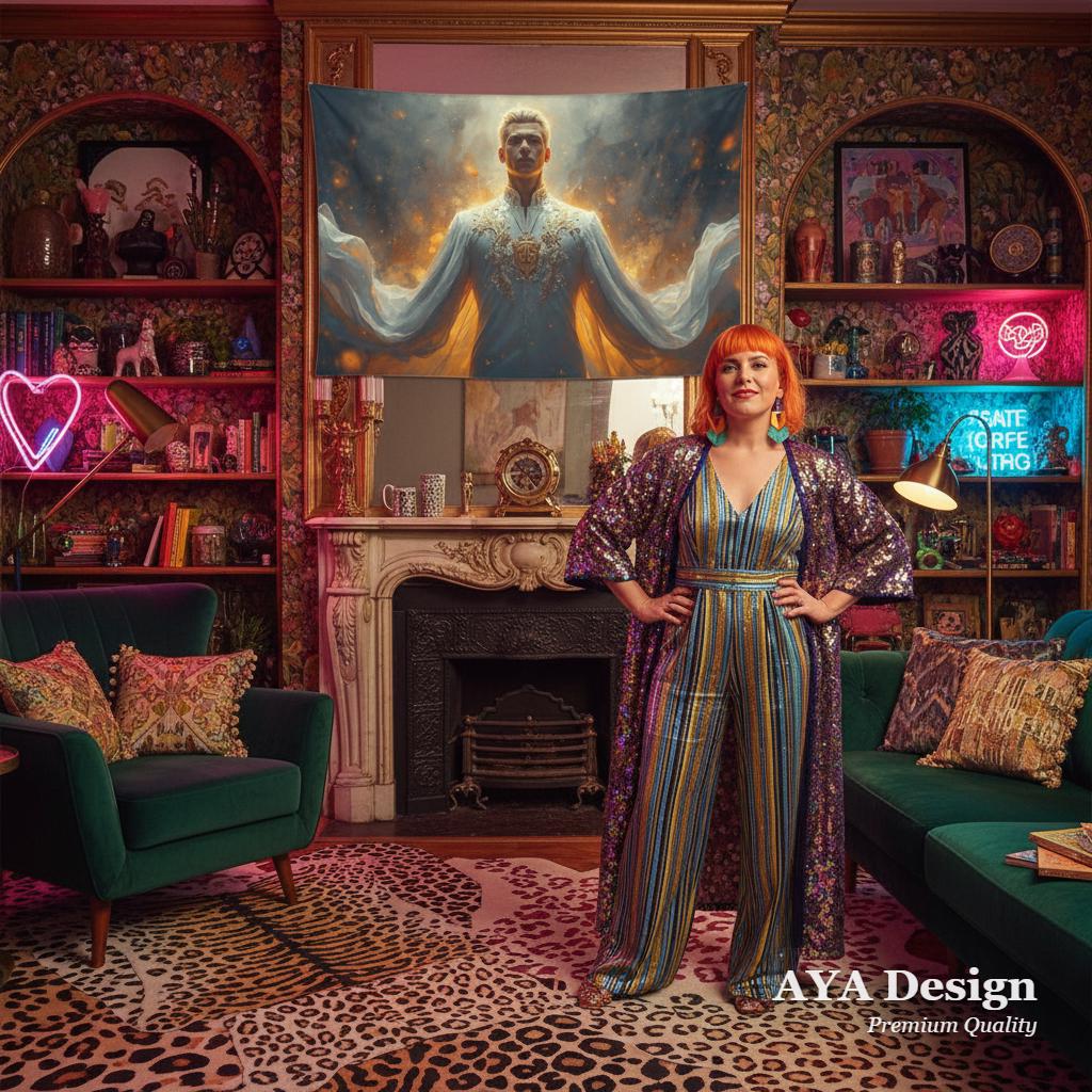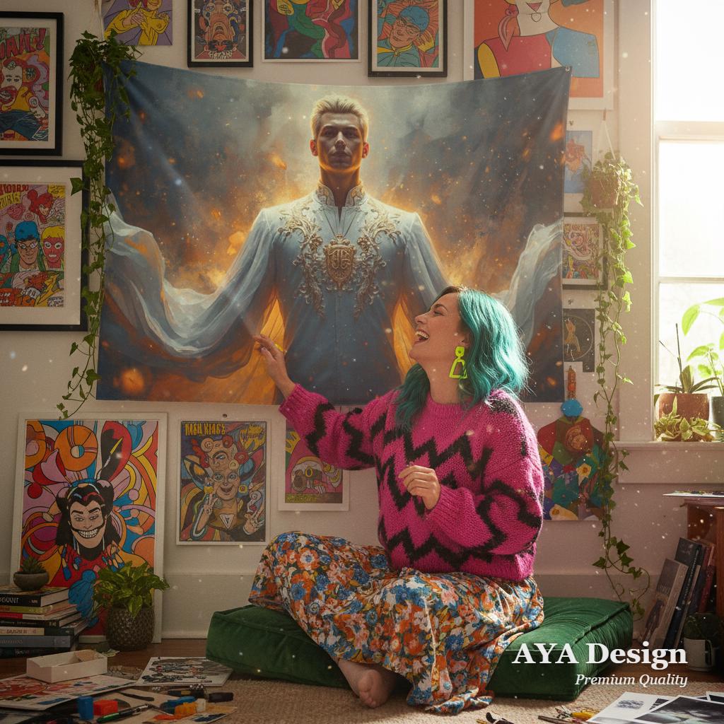 Featuring a majestic, fiery depiction of a champion draped in royal white and gold, this tapestry captures the god-like energy and unstoppable spirit of the greatest club in the world. Whether you're gearing up for a massive Champions League night, upgrading your game room, or looking for the ultimate centerpiece for your dorm, this tapestry sets the stage for victory.