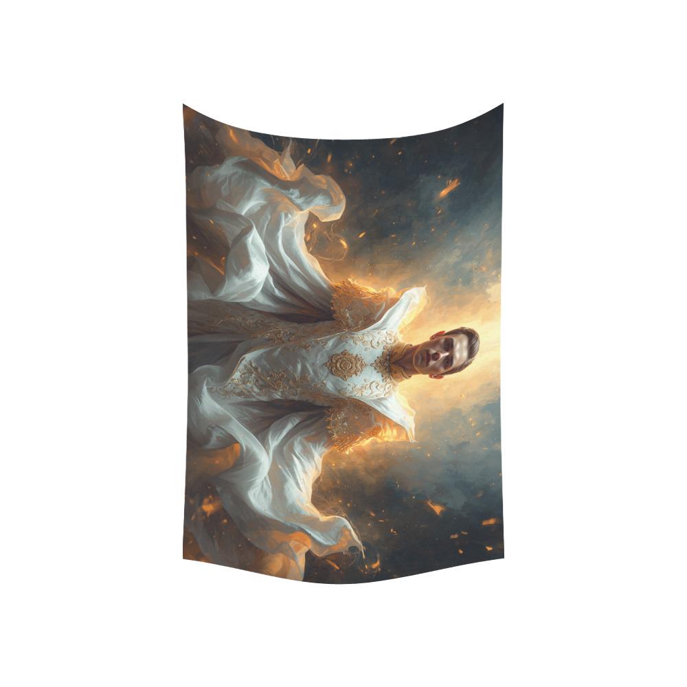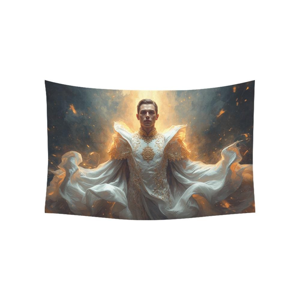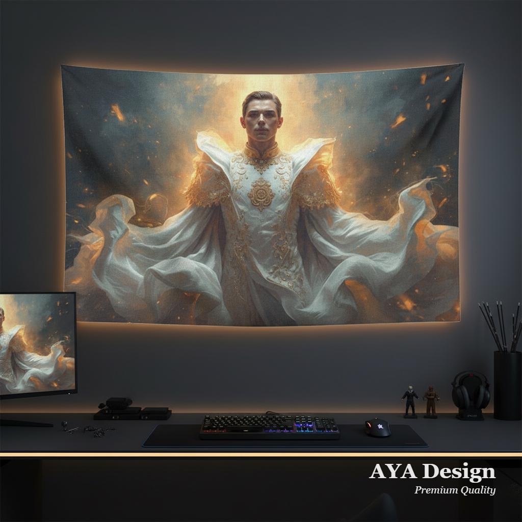 Featuring an epic, ethereal vision of a figure cloaked in flowing white and gold—the iconic colors of the greatest club in the world—this tapestry doesn't just show you're a fan; it radiates the glory, history, and undisputed dominance of Los Blancos. Whether you are transforming your man cave, upgrading a gamer room, or looking for the most unforgettable gift for the football fanatic in your life, this tapestry makes a statement that cannot be ignored.