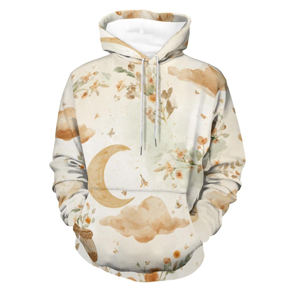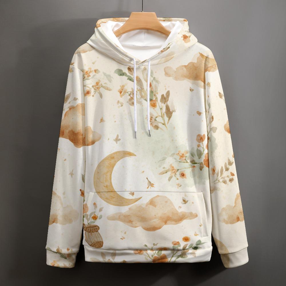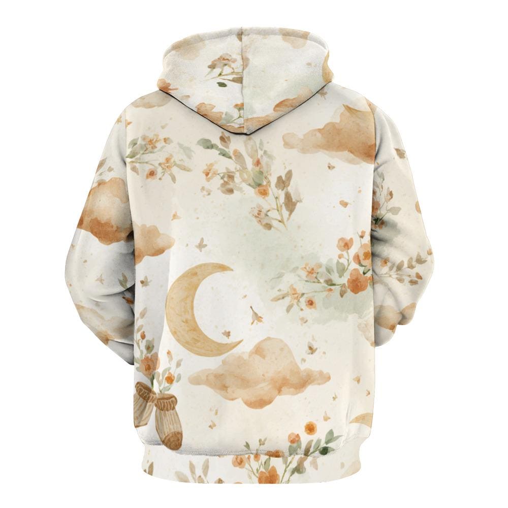 Boho Watercolor Moon Cloud Hoodie | Celestial Floral Sweatshirt, Cozy Loungewear