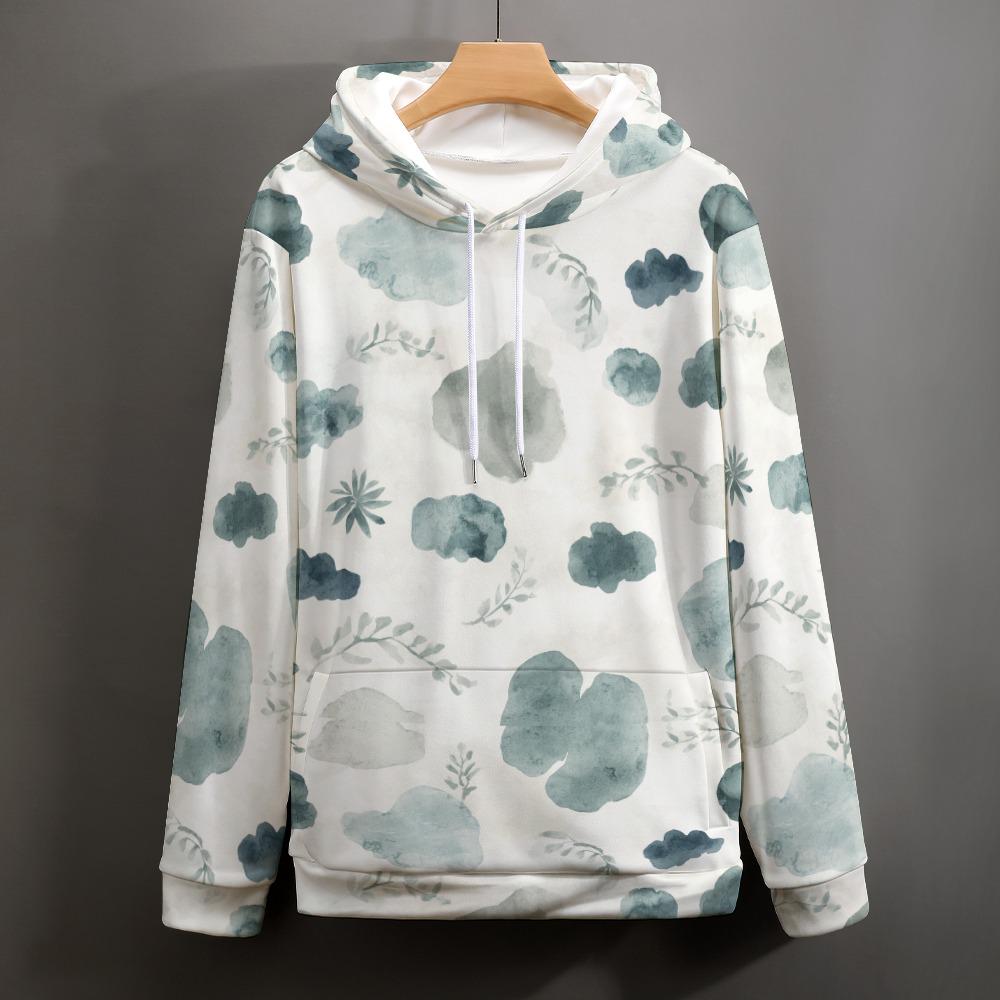 Watercolor Cloud Botanical Hoodie, Nature Leaf Print Pullover, Cozy Boho Sweater
