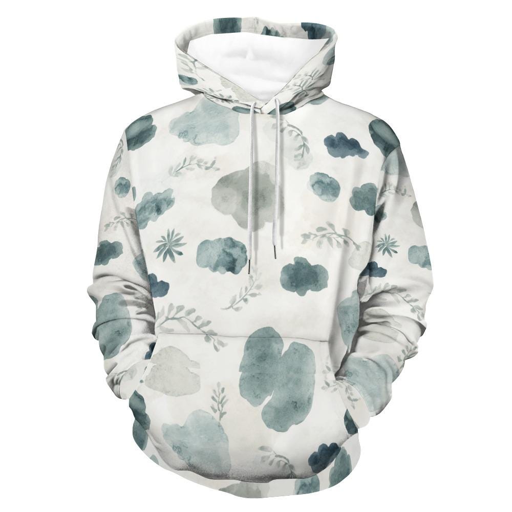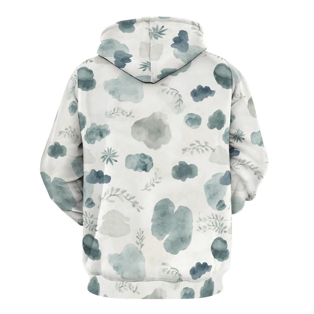 Featuring a beautifully serene, all-over print of watercolor clouds and delicate leafy branches, this pullover effortlessly blends the calming vibes of nature with everyday street-style fashion. Whether you are running errands, lounging on the couch with a good book, or exploring the outdoors, this aesthetic hoodie is your perfect companion.