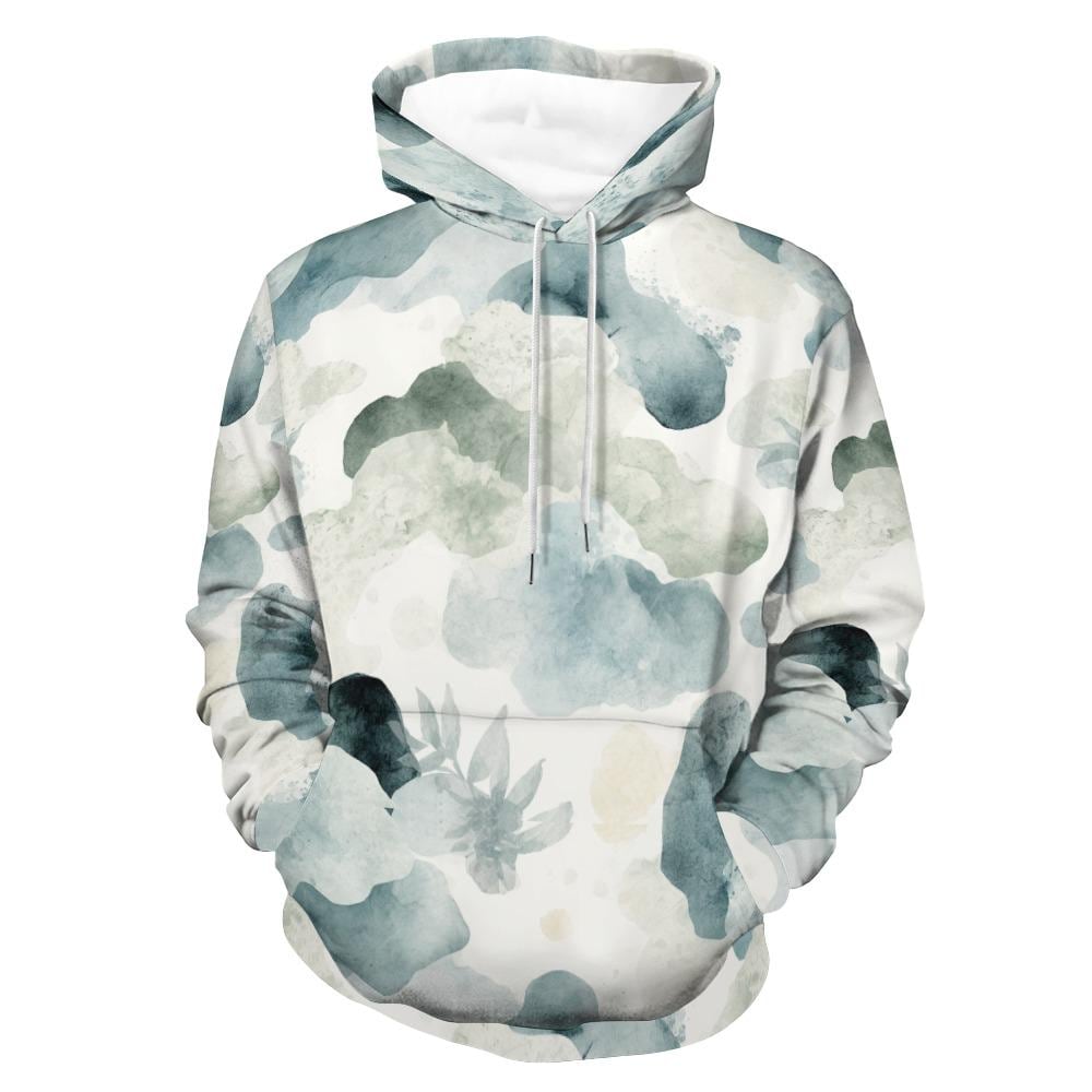 Watercolor Cloud Hoodie, Oversized Pastel Pullover, Postpartum Loungewear, Sage Green Blue Cream