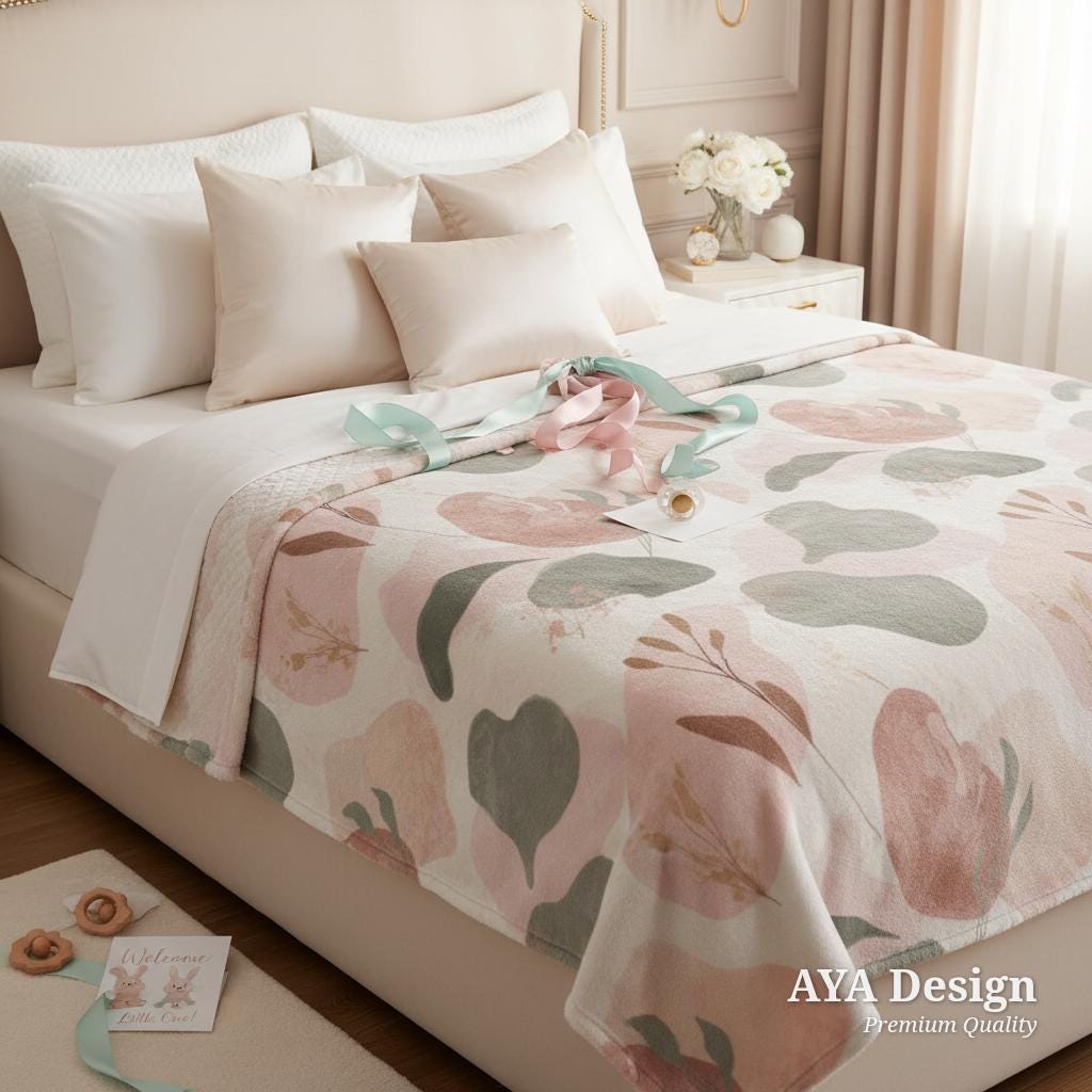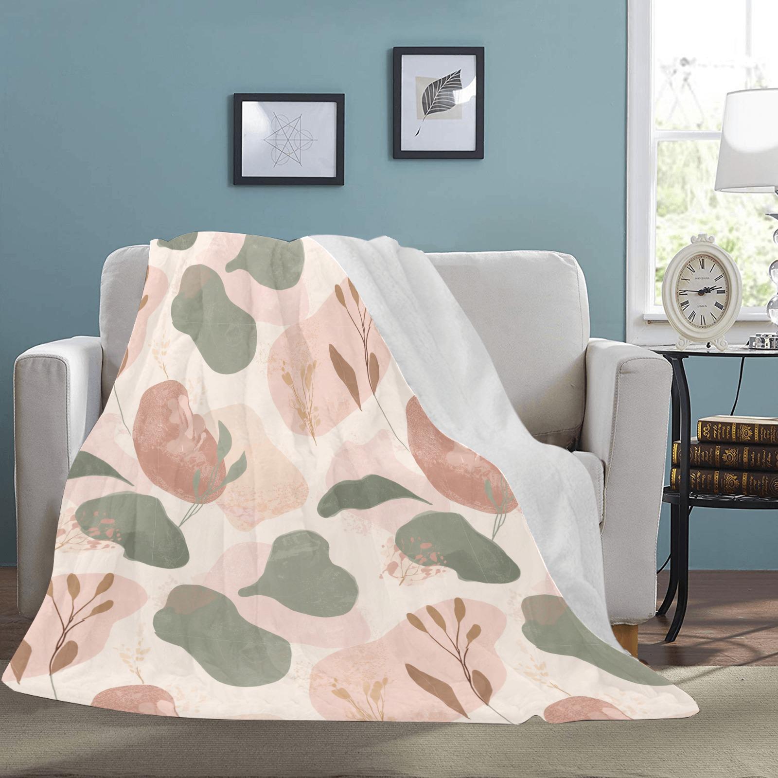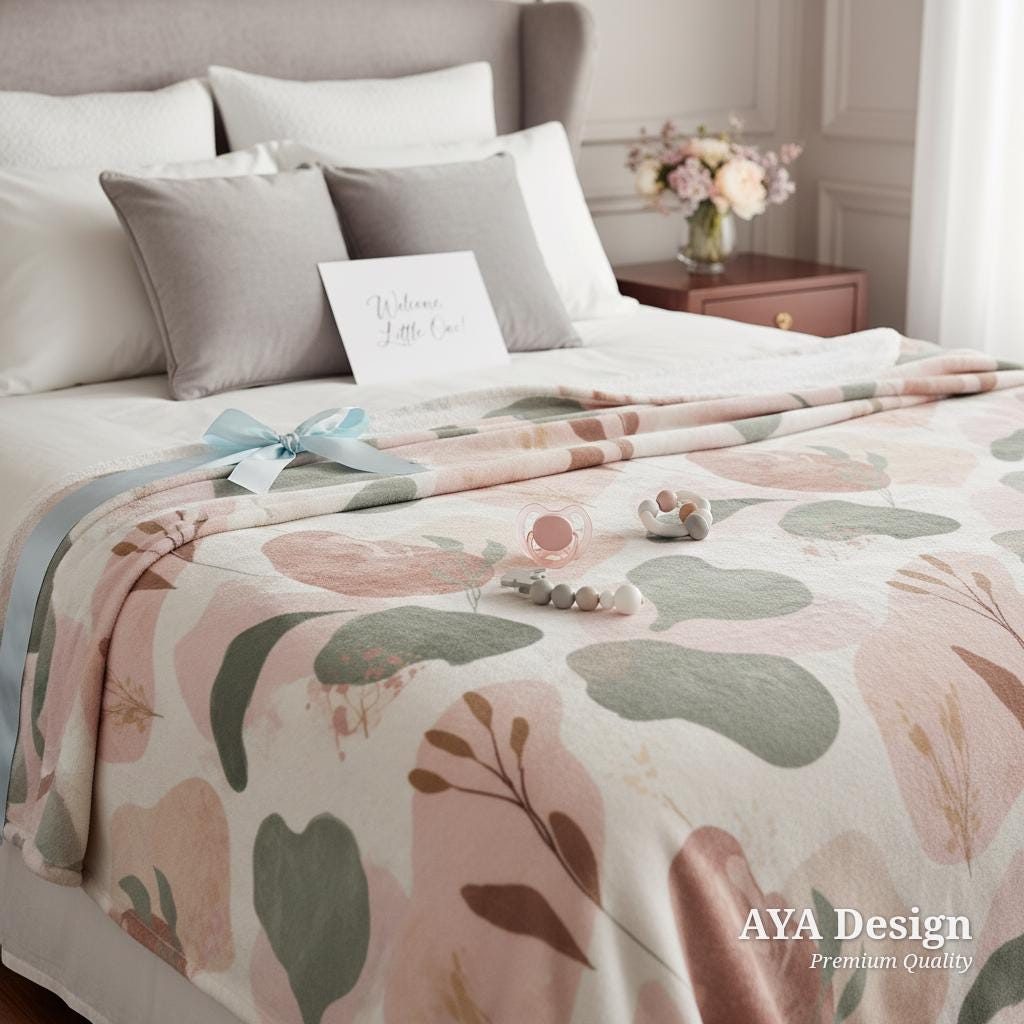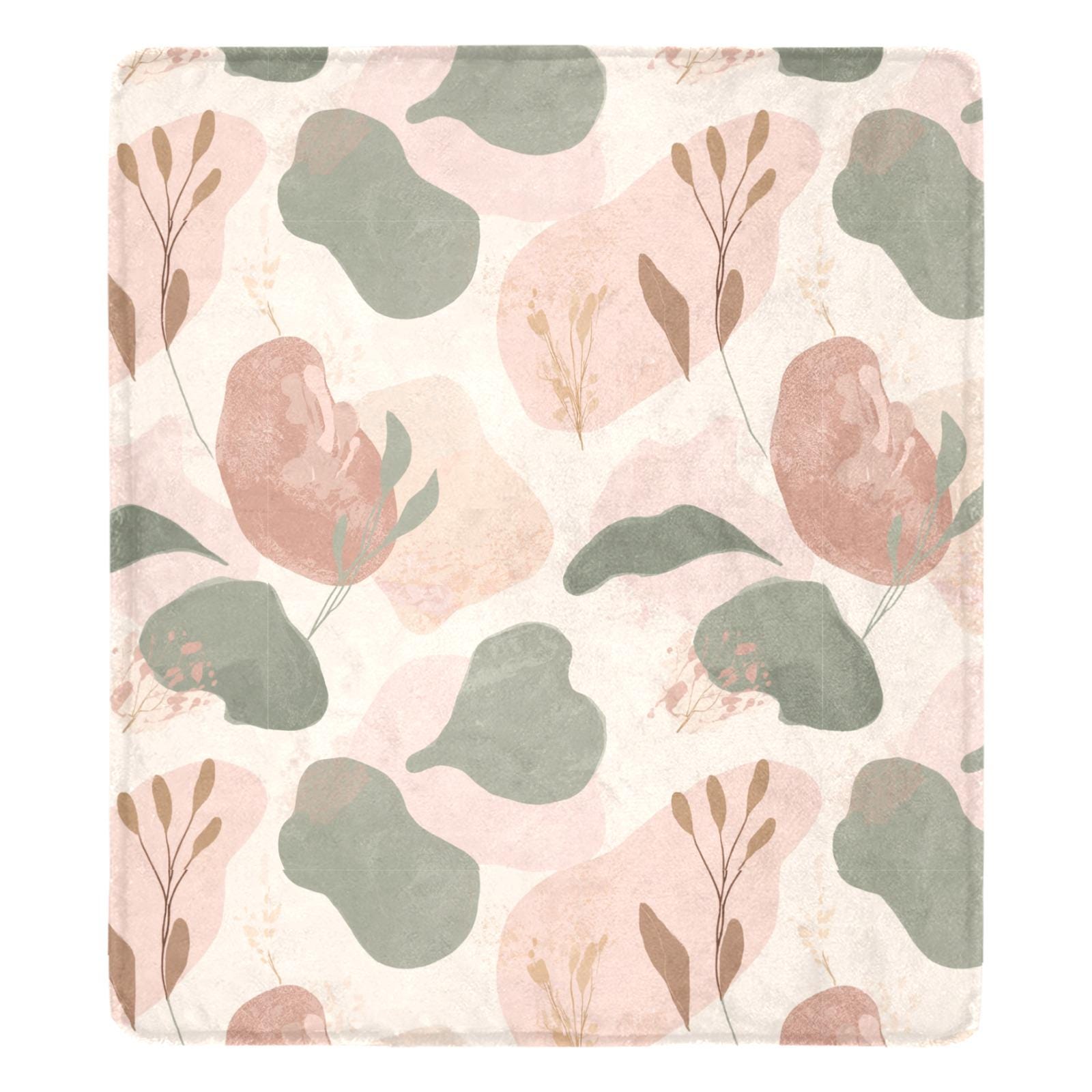Boho Throw Blanket, Sage Green and Blush Pink Abstract Fleece, Minimalist Botanical Home Decor, Cozy Aesthetic Sofa Throw, Earthy Nursery