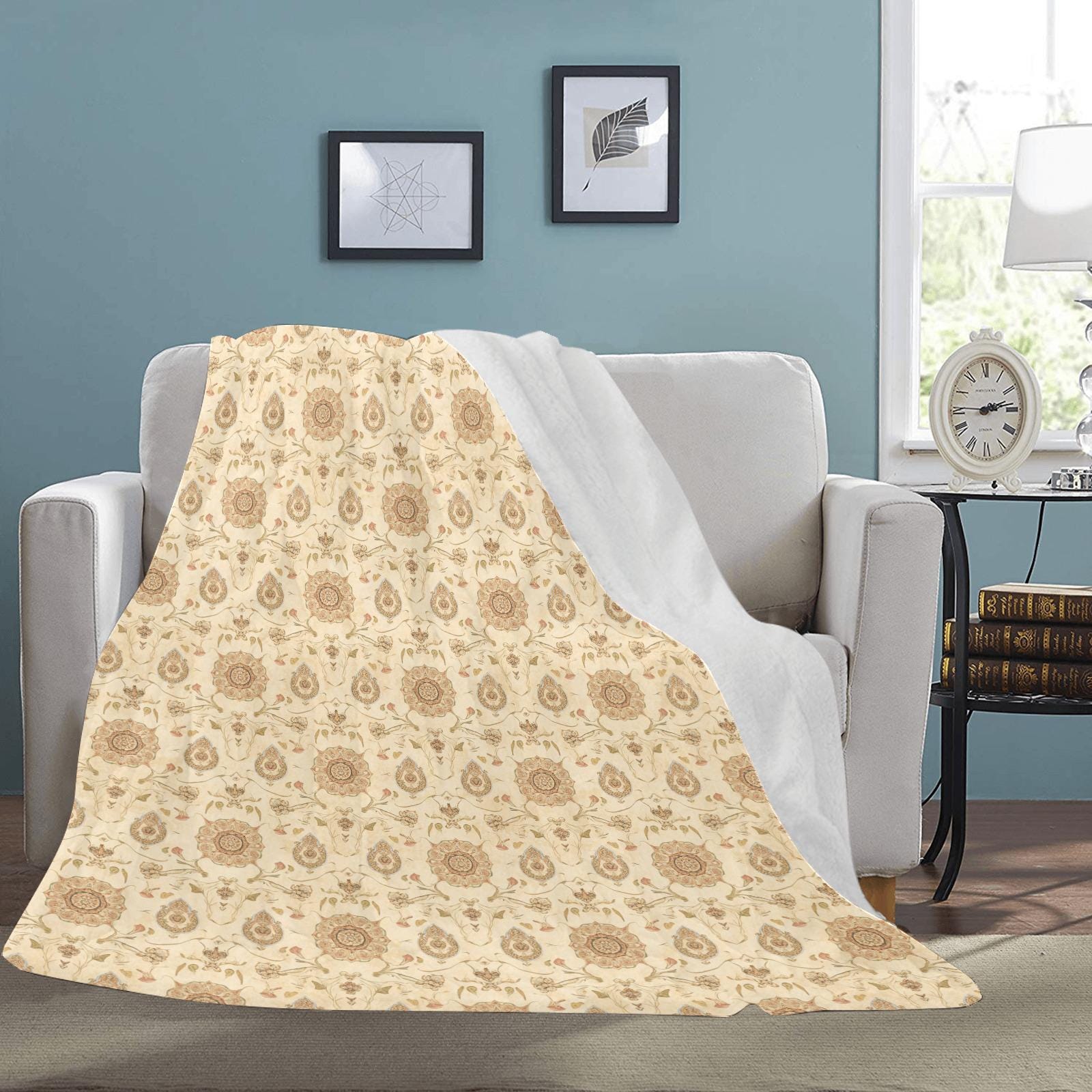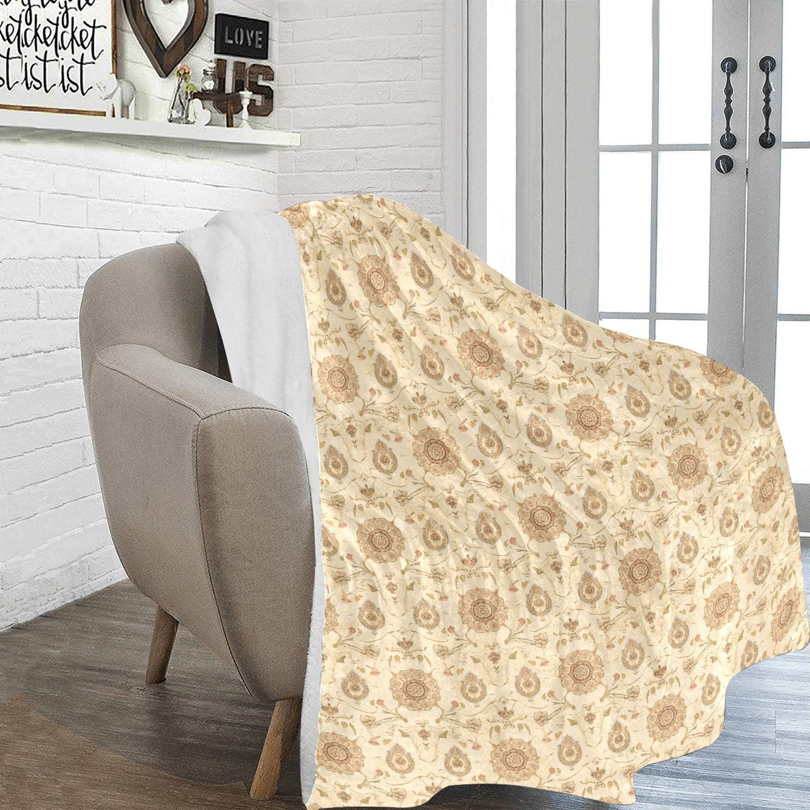 Vintage Mughal Floral Fleece Blanket | Paisley Botanical Boho Throw