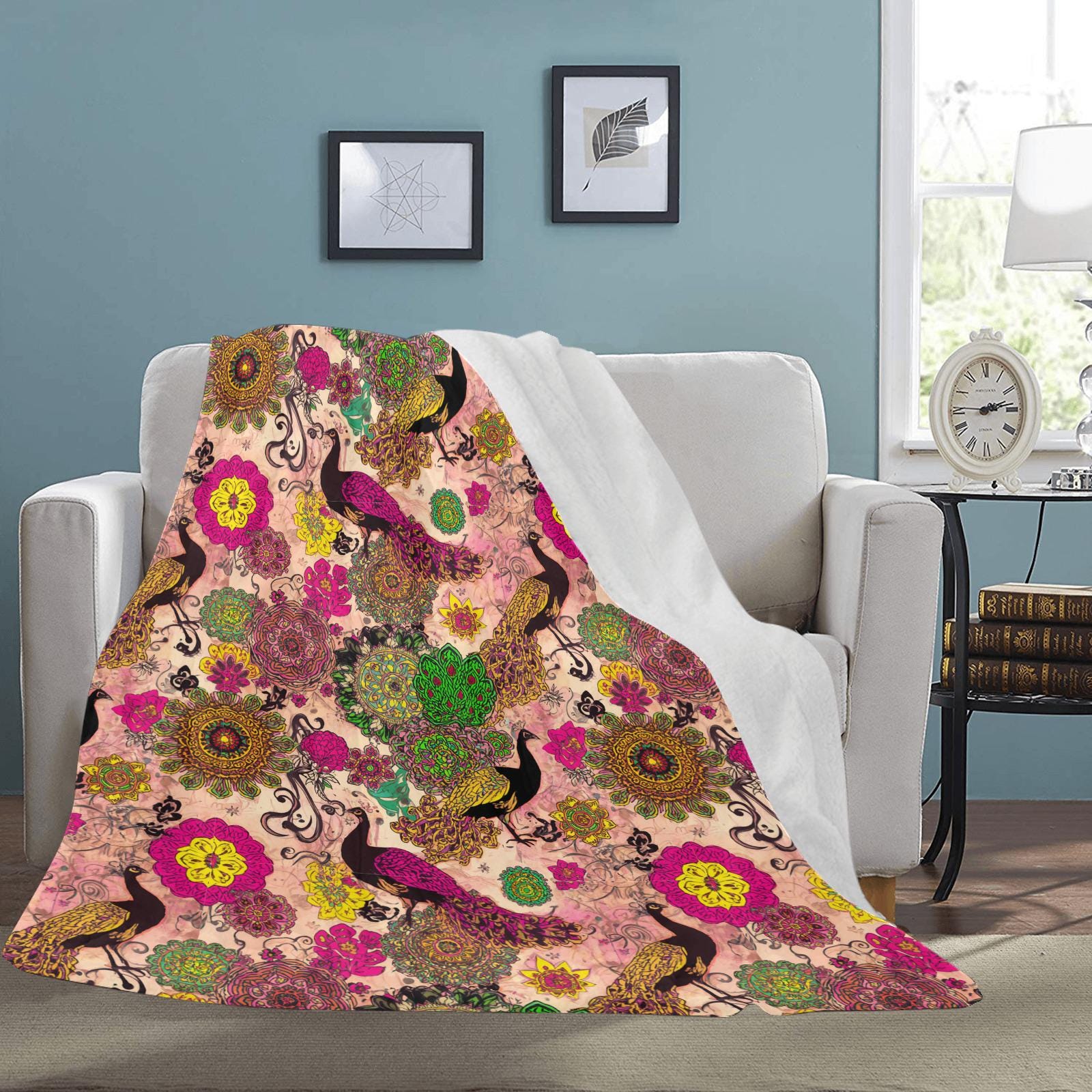 Featuring an intricate, high-energy psychedelic design bursting with vivid magenta florals, emerald green mandalas, and majestic golden peacocks, this blanket isn't just a cozy layer—it’s a piece of "dopamine decor" guaranteed to make any room pop.