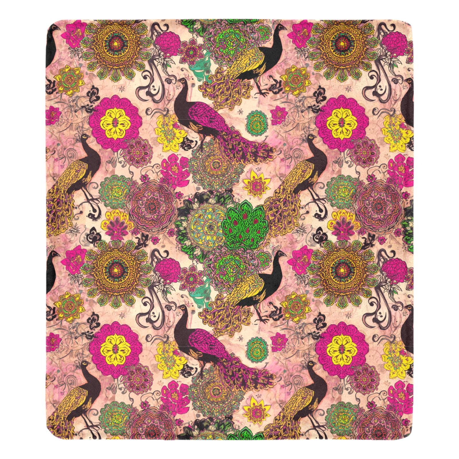 Pakistani Truck Art Peacock Mandala Blanket | Psychedelic Floral Fleece Throw