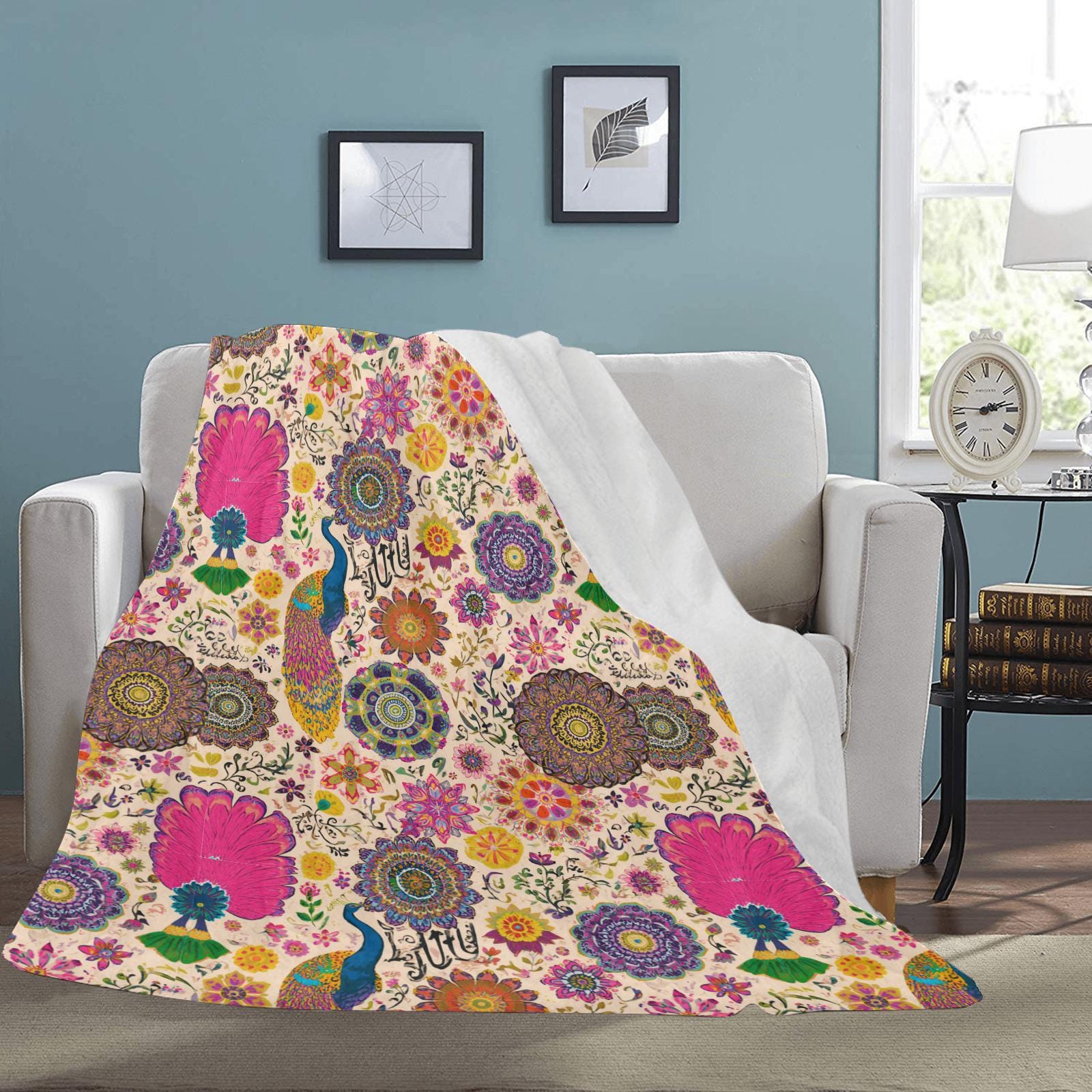Featuring psychedelic fuchsia peacocks, intricate mandalas, and vibrant botanical blooms, this design captures the electric, maximalist soul of South Asian heritage. Whether you are looking for that perfect touch of "Desi" charm to remind you of home, or you simply want a bold, eclectic statement piece to brighten your living room, this blanket is your canvas.