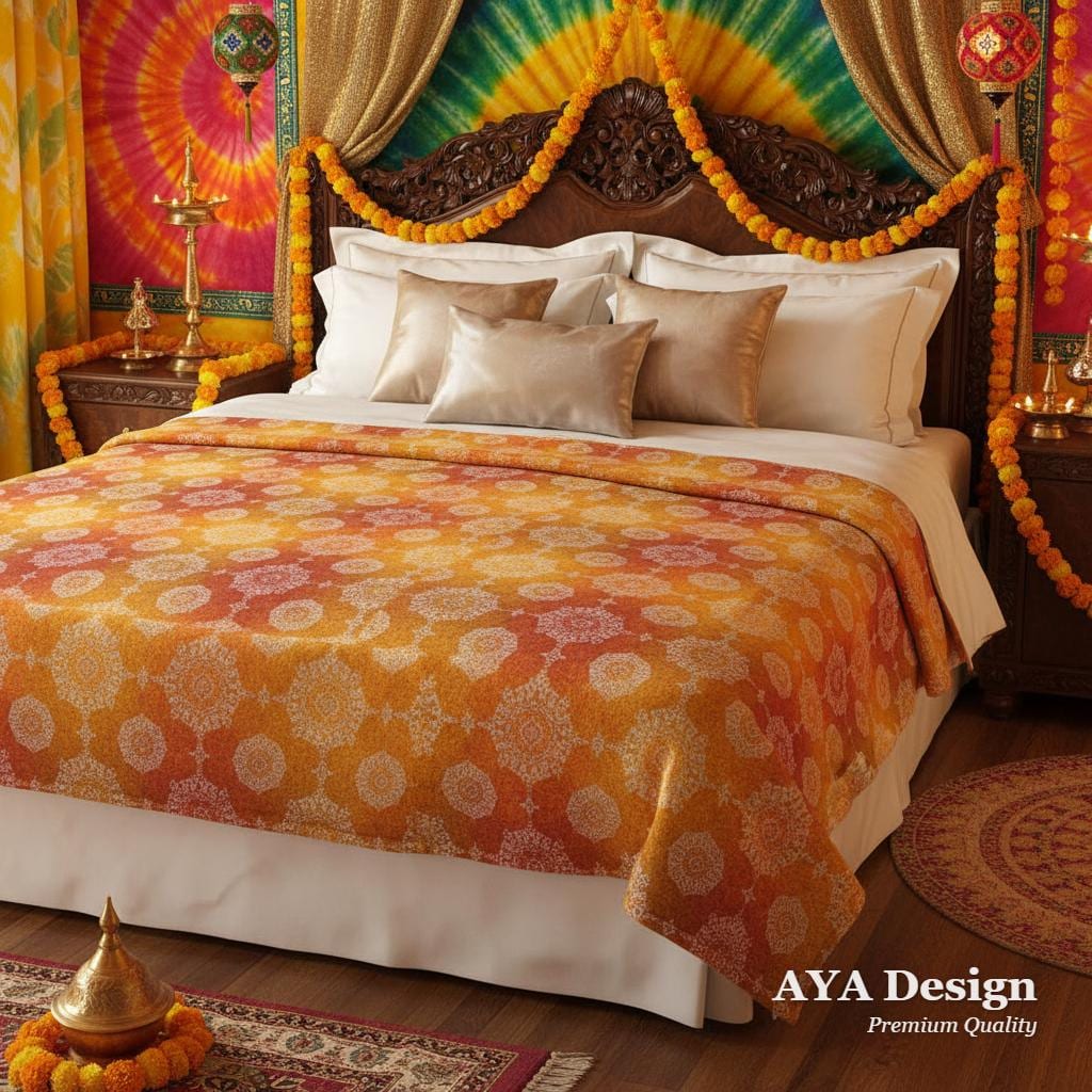 While traditionally a tie-dye technique passed down through generations, this gorgeous "Chunri" pattern has been beautifully reimagined as a high-quality digital print. Featuring clusters of delicate white dots dancing across a rich, sunset-hued background, this blanket isn't just a cozy layer—it’s a piece of cultural art.