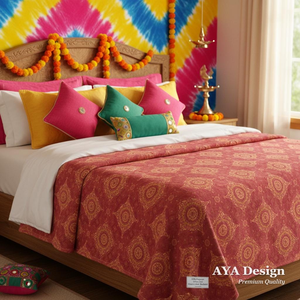 Whether you are draping it over your sofa for a pop of vibrant color, setting the perfect backdrop for a Mehndi or Dholki night, or simply snuggling up on a chilly evening, this blanket wraps you in memories of home, celebrations, and togetherness.