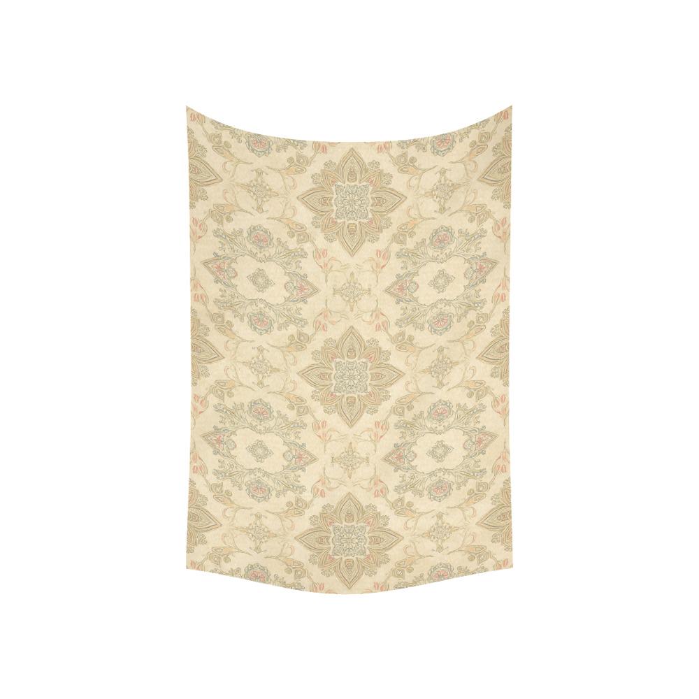 Vintage Floral Tapestry Wall Hanging, Cottagecore Room Decor, Neutral Shabby Chic Wall Art, French Country Damask Bedroom Decor