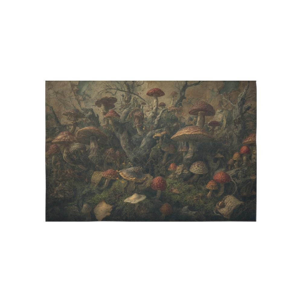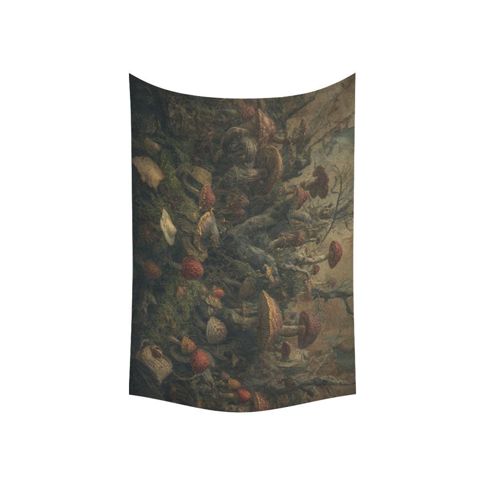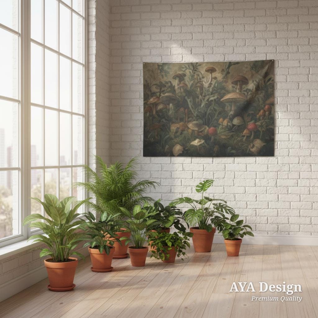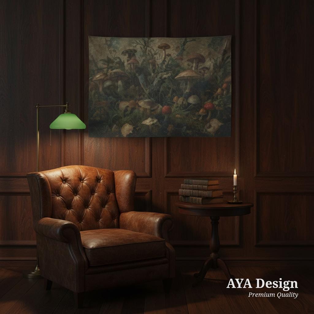 Dark Academia Mushroom Tapestry | Vintage Botanical Wall Hanging | Goblincore Room Decor | Moody Cottagecore Fungi Art | Witchy Wall Decor