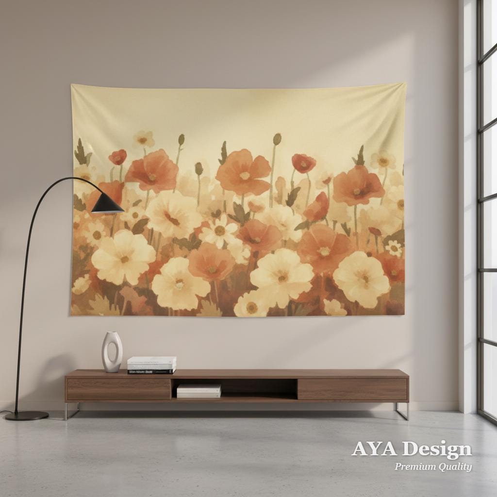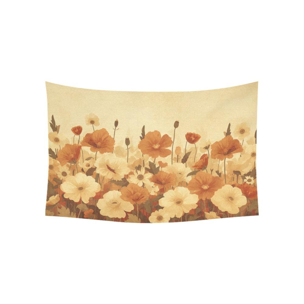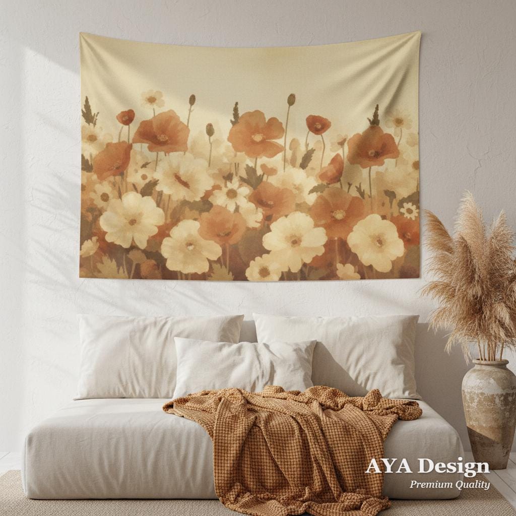 Does your room feel like it’s missing that cozy, grounding touch? Bring the effortless beauty of a sunlit, nostalgic garden right into your home. Featuring a gorgeous array of warm terracotta poppies and creamy daisies, this retro floral tapestry instantly warms up any blank wall, turning your space into a calming, bohemian sanctuary.