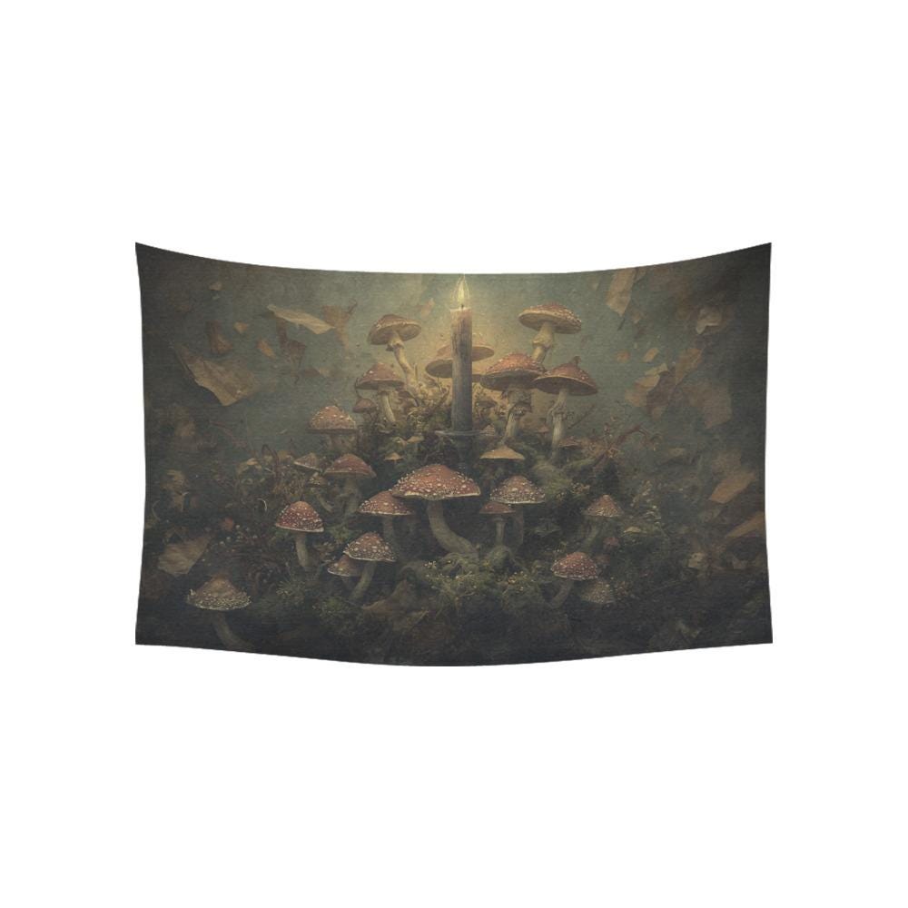 Dark Academia Mushroom Tapestry - Vintage Botanical Fungi Wall Hanging - Moody Forestcore Decor - Goblincore Aesthetic Large Wall Art