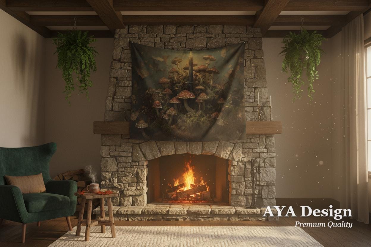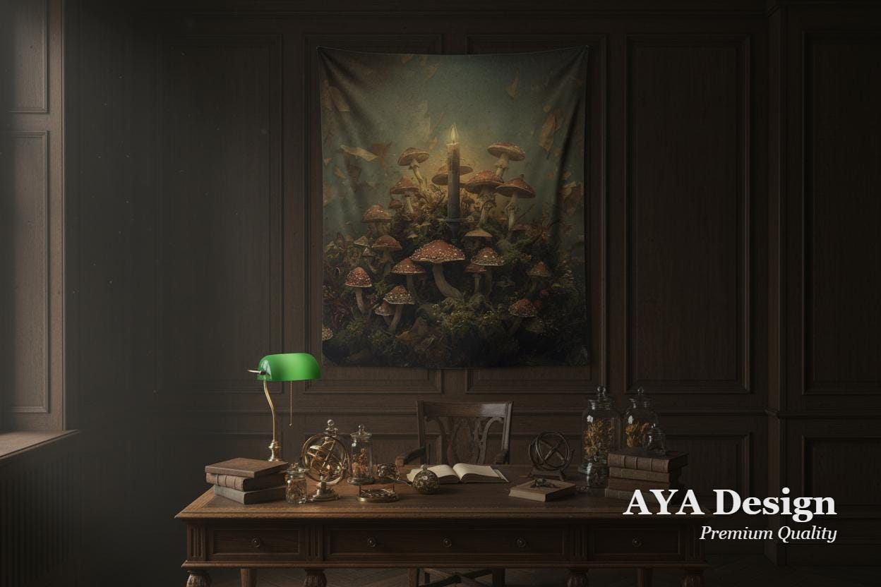 Transform your space into a moody, scholarly sanctuary with our "Midnight Mycologist" Tapestry. Designed for the Dark Academia enthusiast and the forest-dweller at heart, this maximalist wall hanging captures the intricate, damp beauty of a hidden woodland floor.