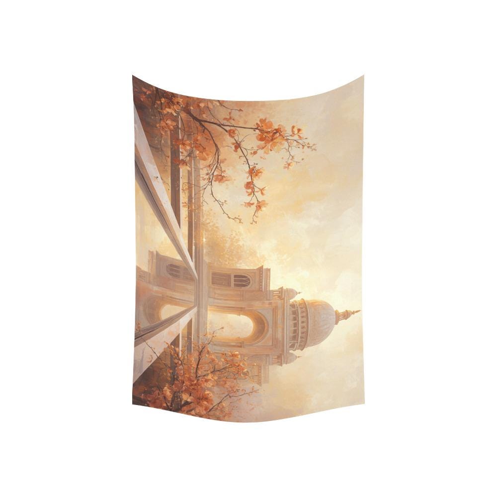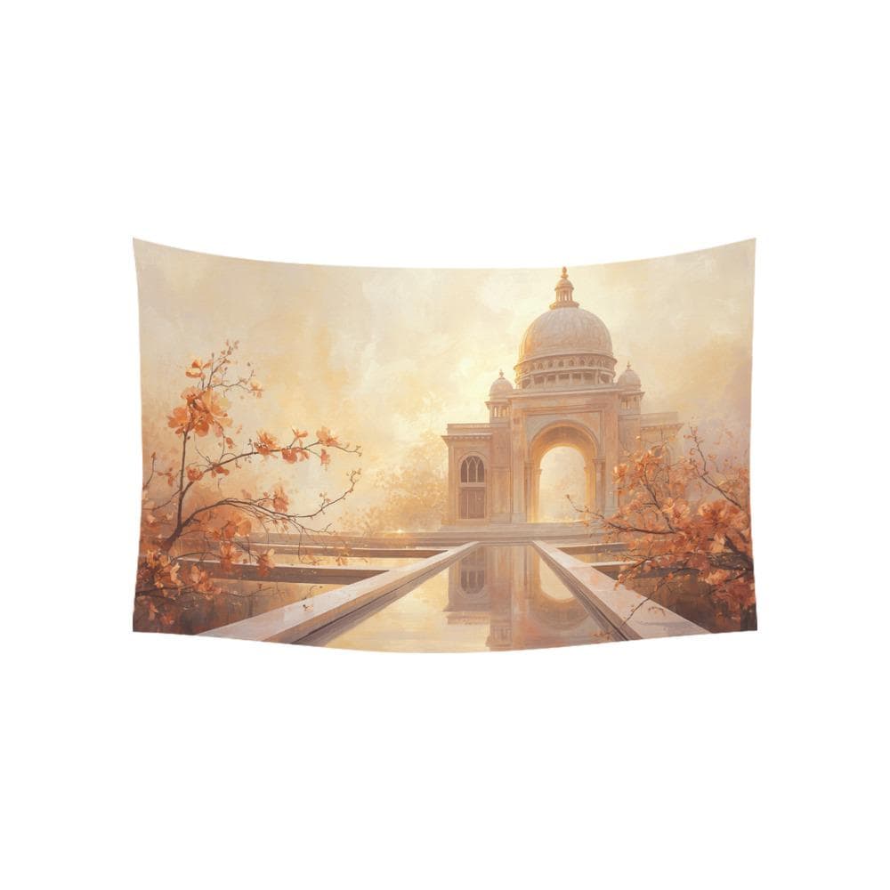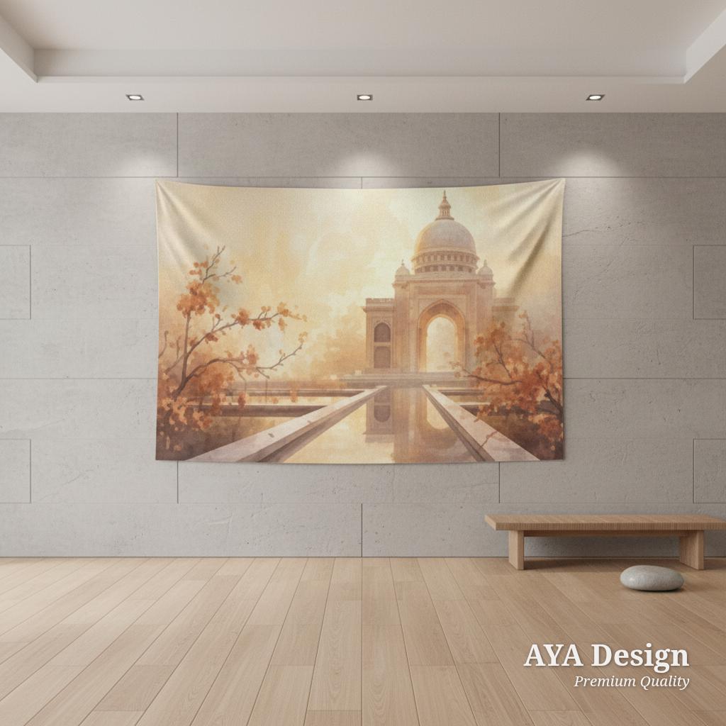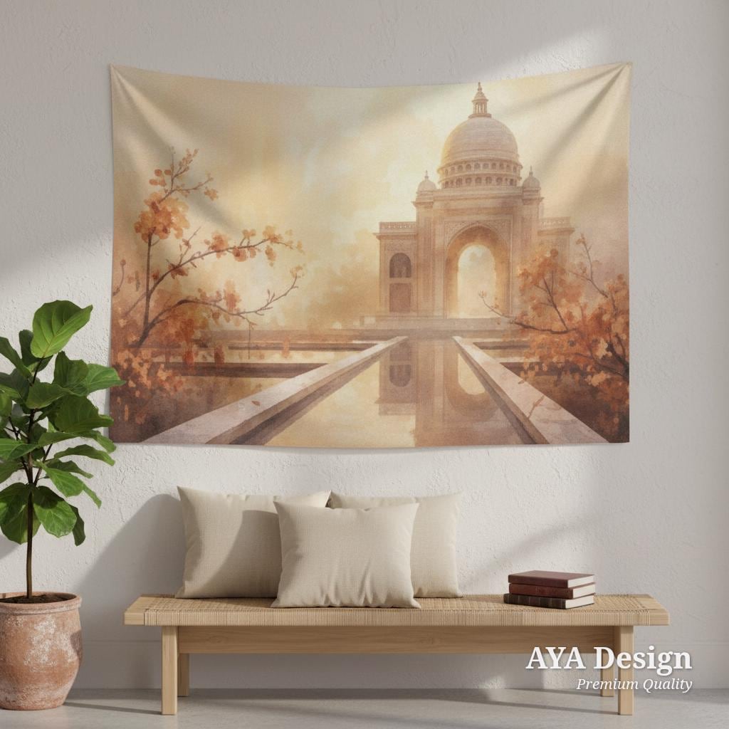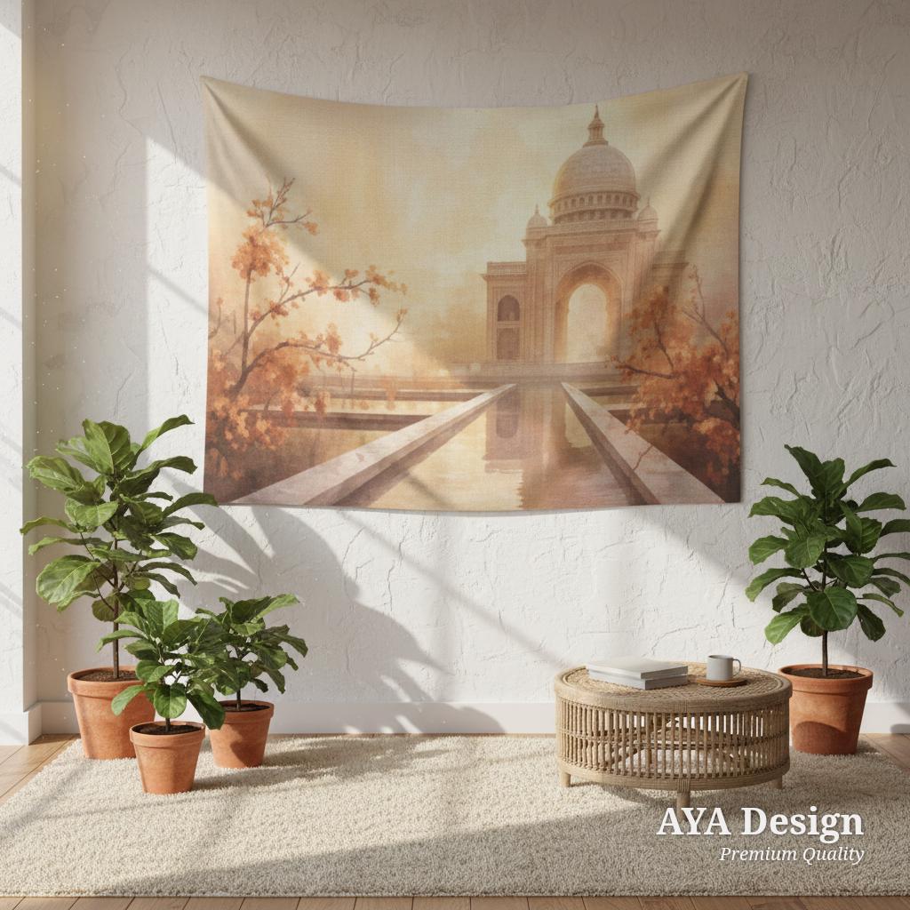 Step into a world of golden sunsets, tranquil reflecting pools, and breathtaking architecture with our Ethereal Taj Mahal Wall Tapestry. Designed to capture the magic of a romantic Indian palace surrounded by delicate peach blossoms, this dreamy wall hanging instantly adds warmth, peace, and wanderlust to any room.