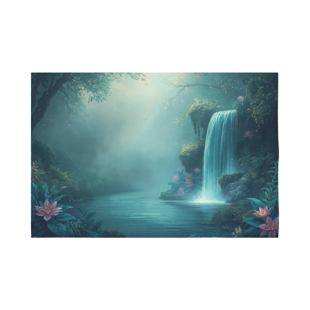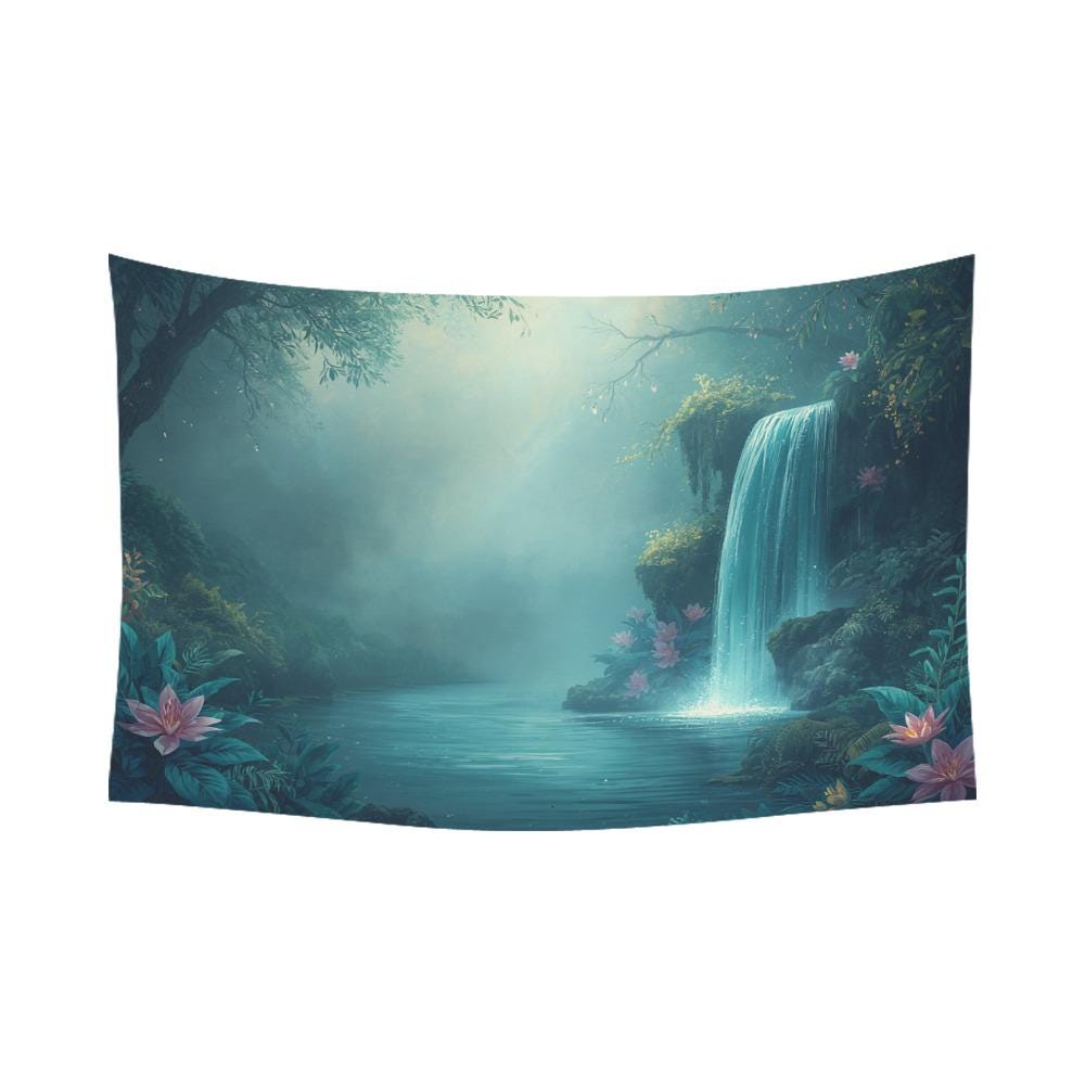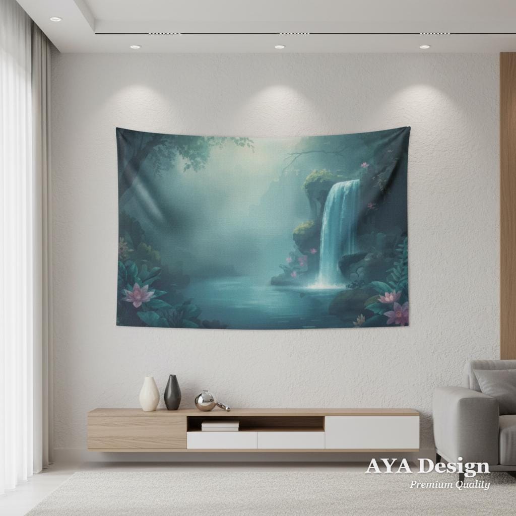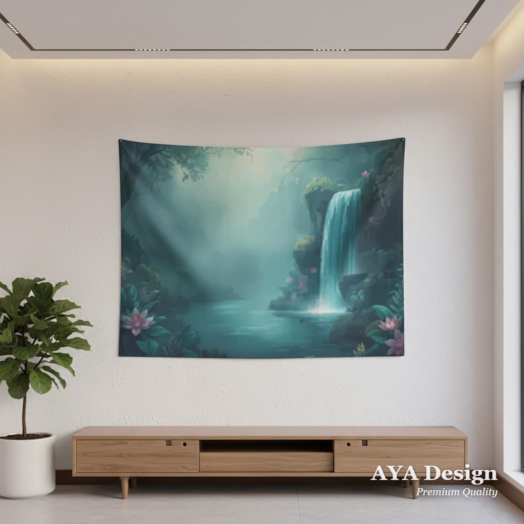 Imagine coming home, taking a deep breath, and stepping into your very own enchanted forest. This breathtaking waterfall tapestry is more than just wall art—it’s a window into a peaceful, mystical realm. Featuring a gentle, misty waterfall cascading into a serene lagoon adorned with glowing pink lotus flowers, this tapestry instantly washes away the stress of the day and fills your room with calming, ethereal energy.