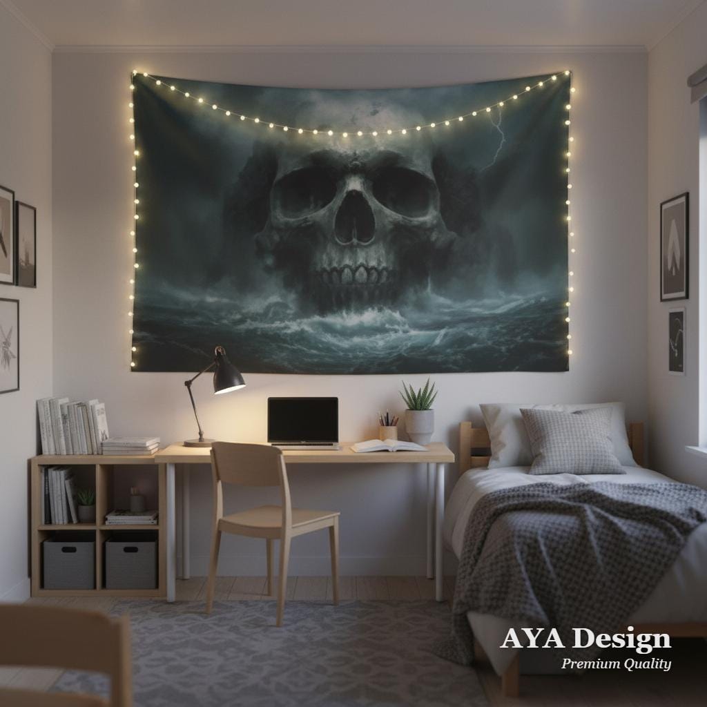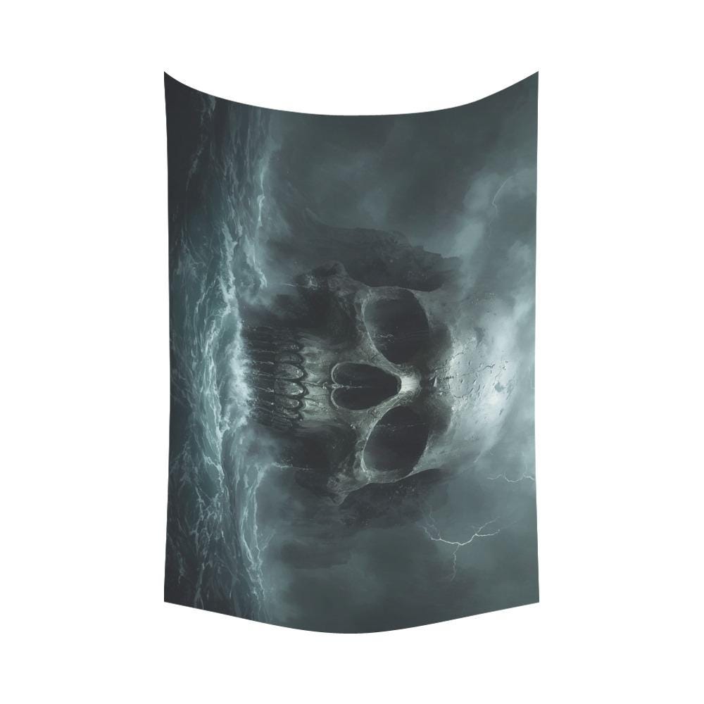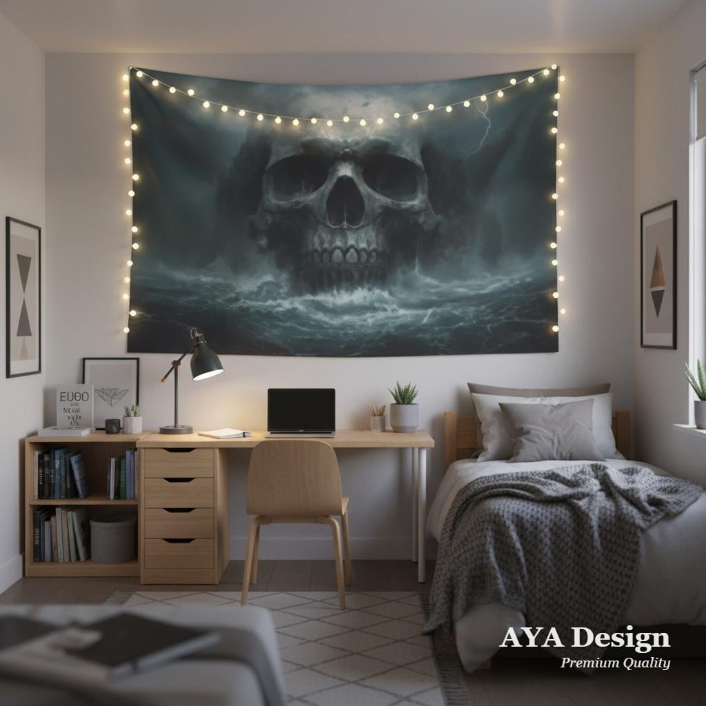 Imagine stepping into your room and being instantly transported to the treacherous, uncharted waters of a forgotten world. The storm rages, the lightning strikes, and rising from the churning sea is a colossal skull, ancient and full of mystery. This isn't just a wall hanging; it’s a portal to epic adventures and dark, moody aesthetics.