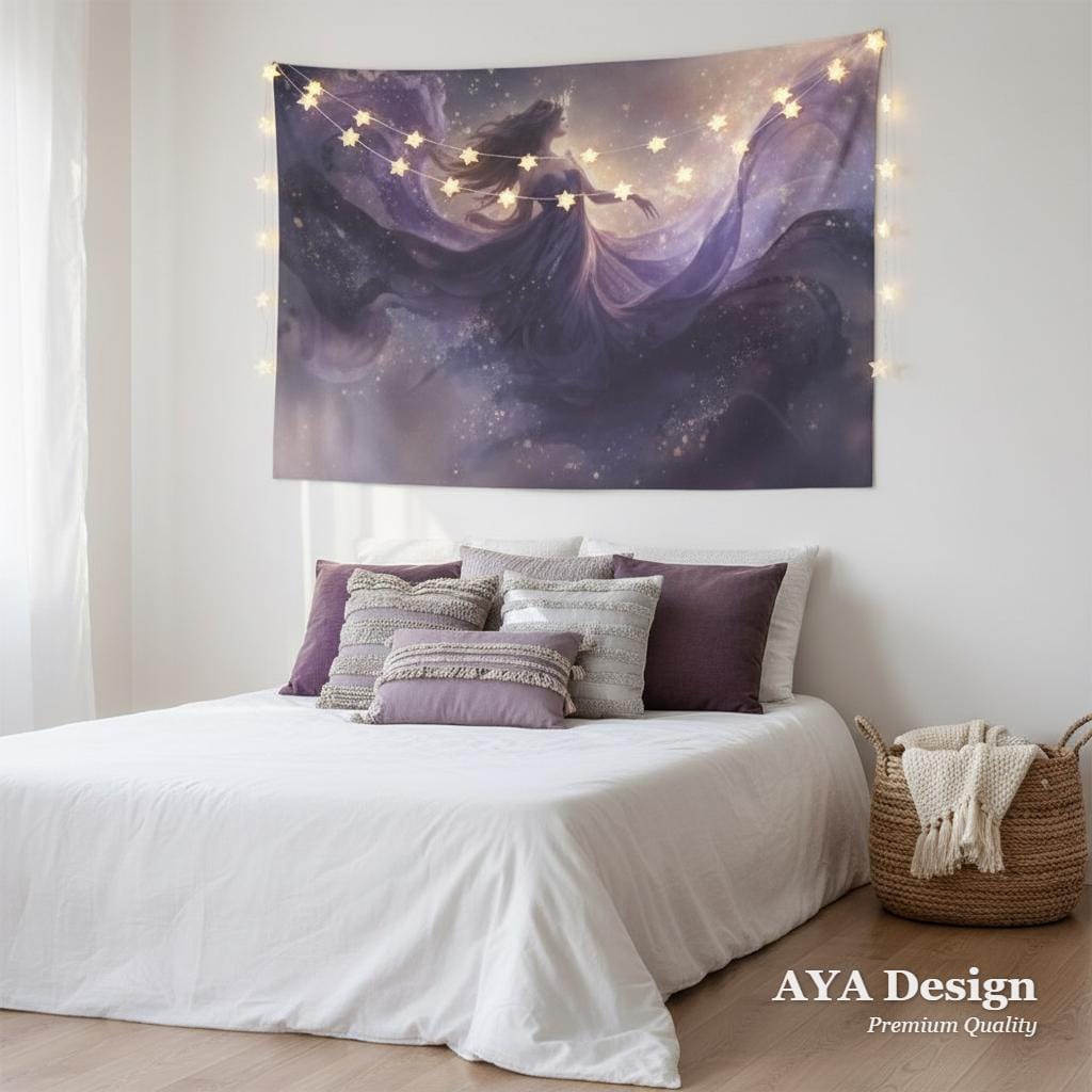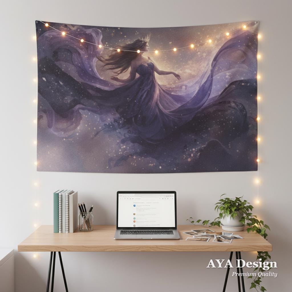 The Emotional Spark: Imagine coming home, dimming the lights, and seeing the Purple Moon Queen watching over your space. Her swirling gown and the shimmering stardust create a sense of tranquility and "Divine Feminine" power. Whether you’re meditating, gaming, or just unwinding after a long day, this tapestry sets a mood of pure enchantment.