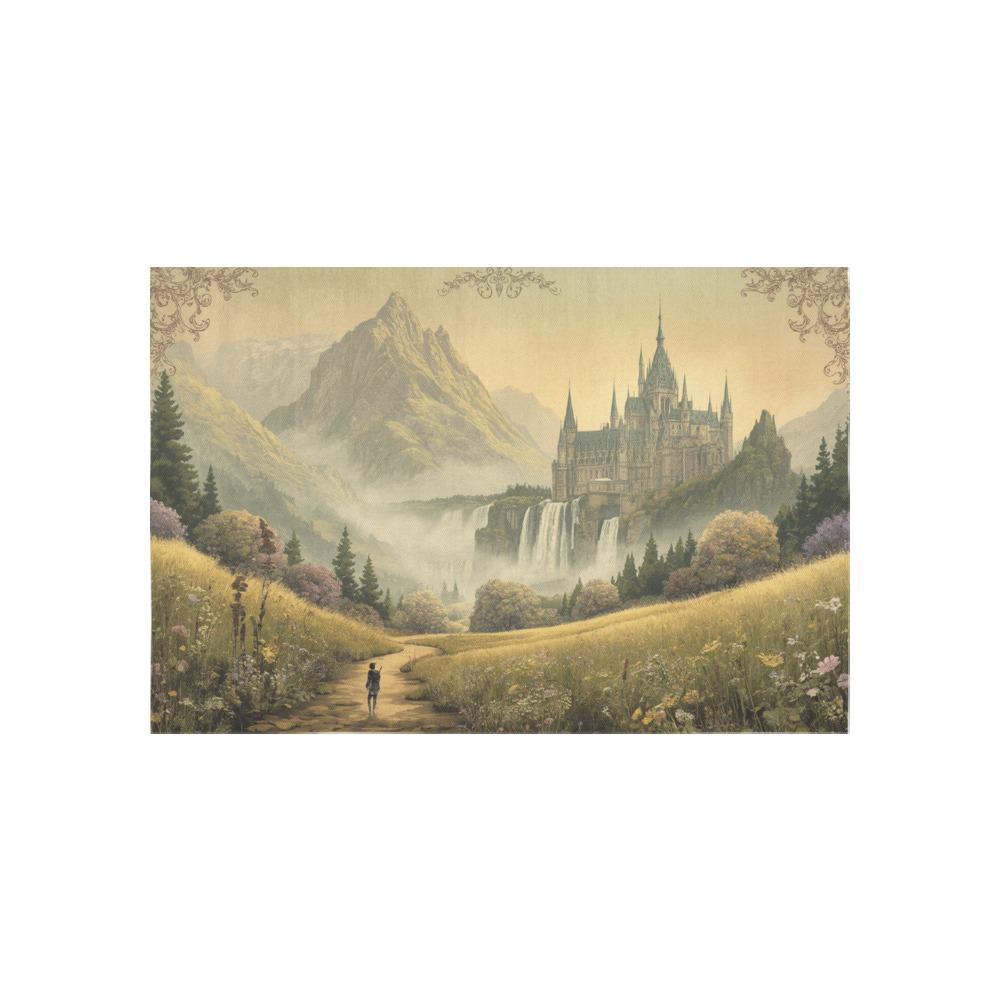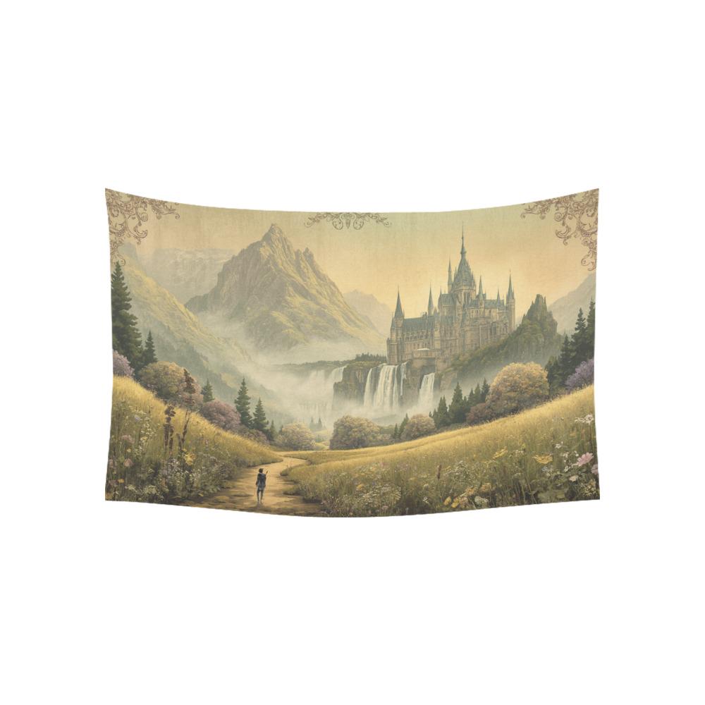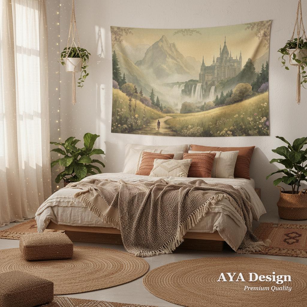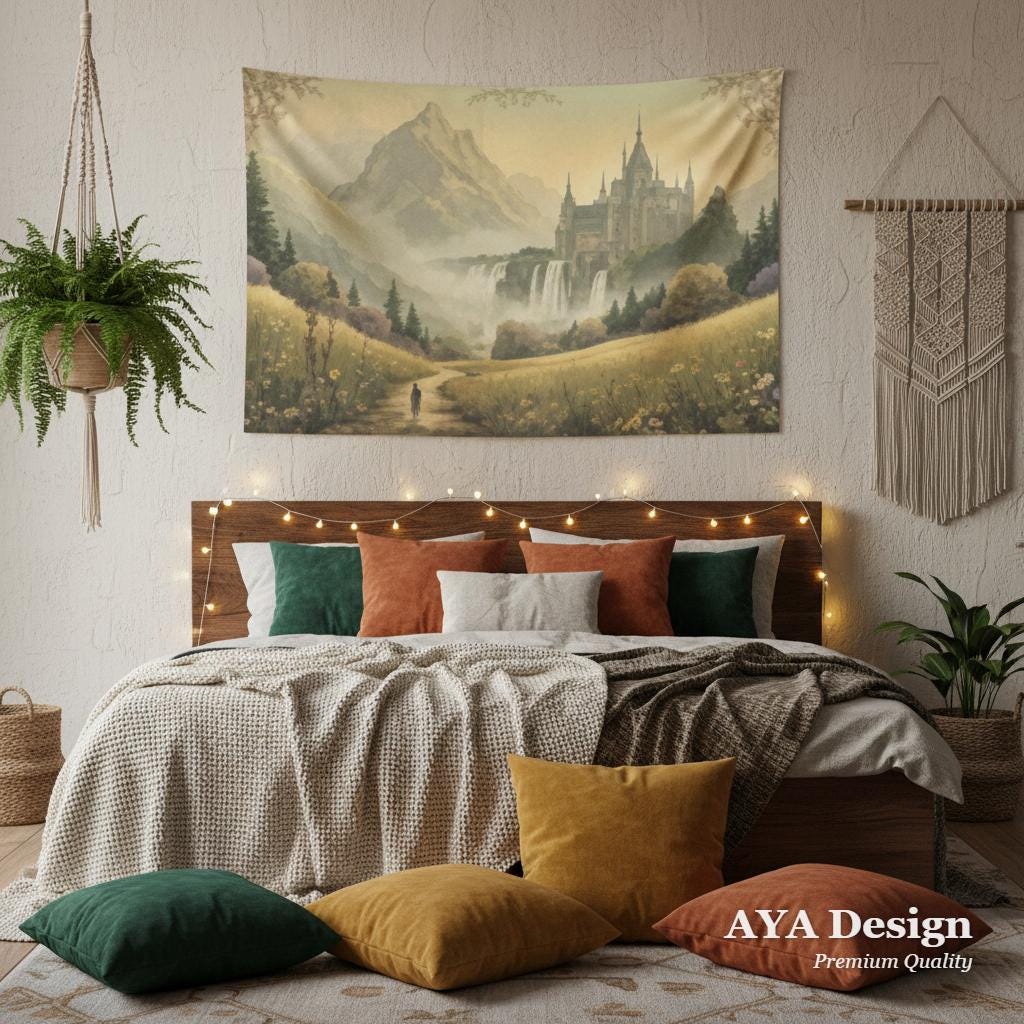 Transform your space into a gateway to another realm. Featuring a sweeping, vintage-style landscape with a solitary traveler journeying toward a magnificent, mist-shrouded castle, this tapestry isn't just room decor—it’s an invitation to escape.