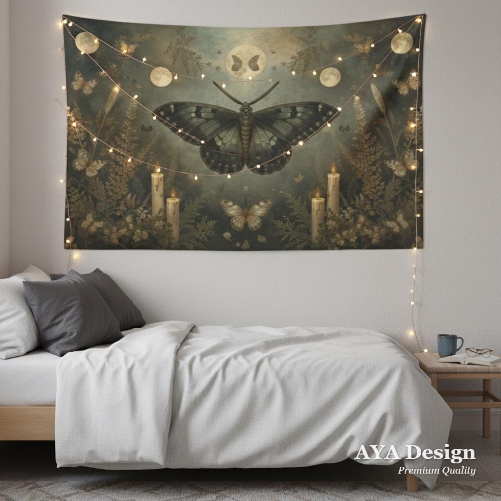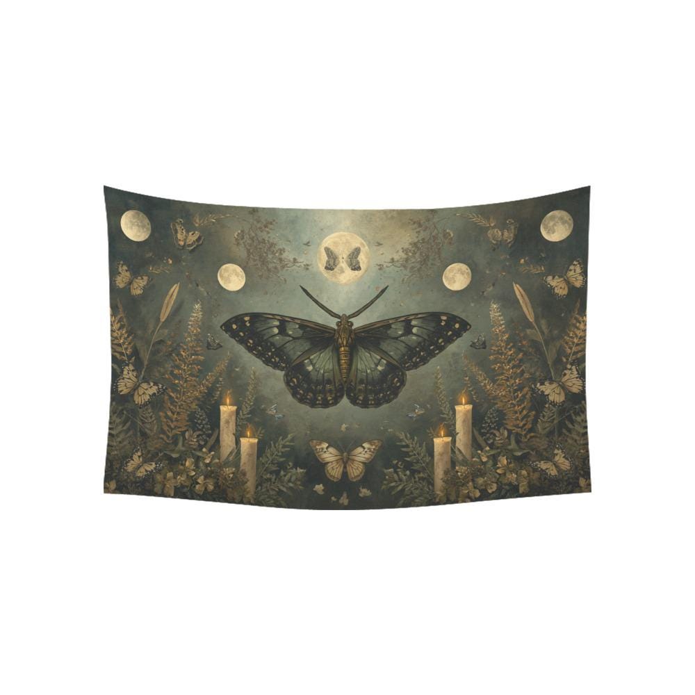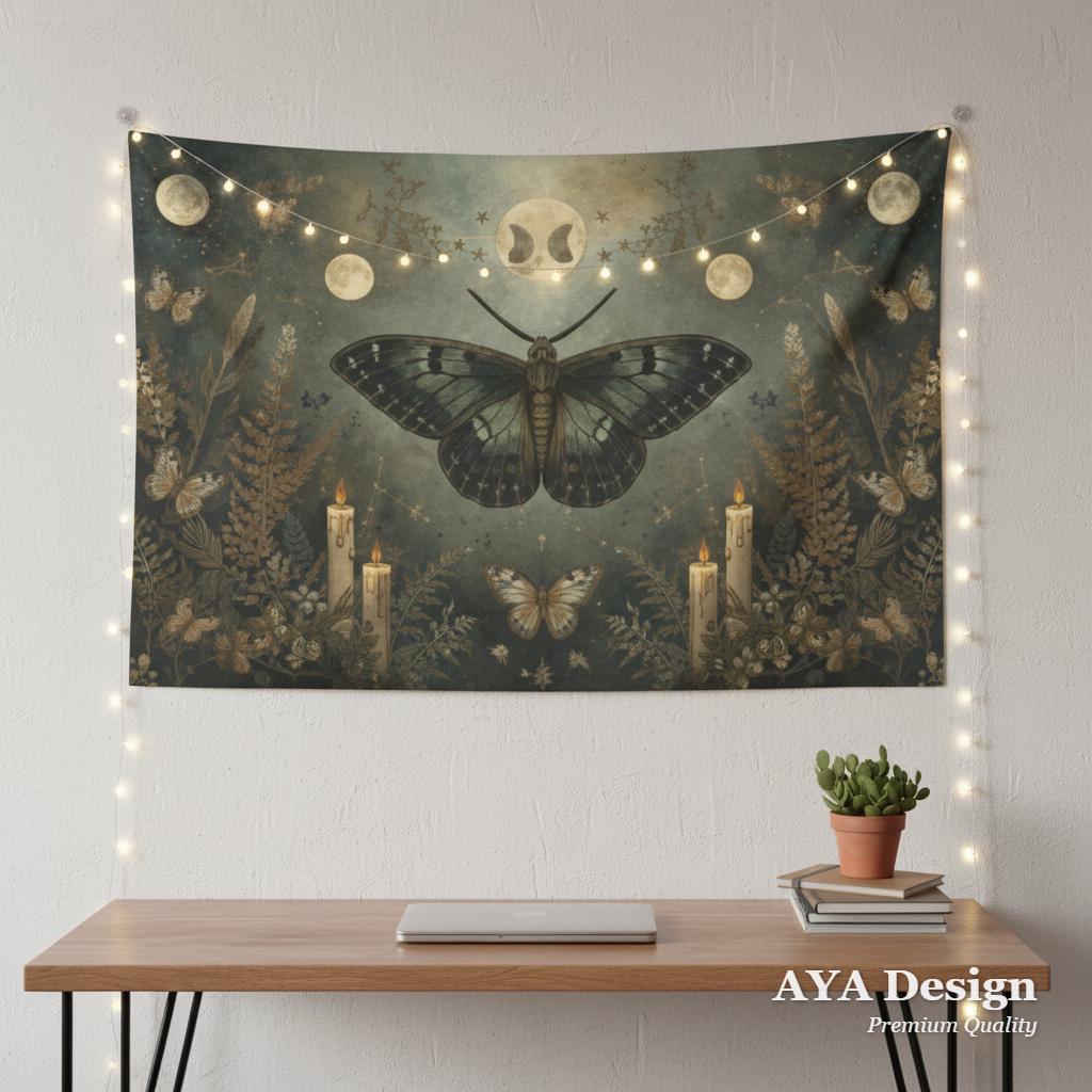 🌿 Why You'll Love It: Unlike standard, scratchy wall hangings, our tapestry is crafted from premium Polyester Peach Skin fleece. This means it is incredibly soft to the touch, drapes beautifully, and is naturally crease-resistant. The high-definition printing ensures every delicate detail—from the moth’s patterned wings to the golden glow of the candles—remains vibrant and breathtaking for years to come.