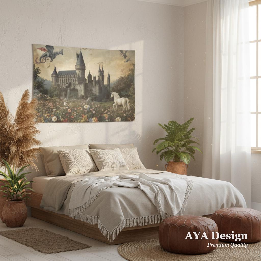 Bring the magic of your favorite fairy tales and fantasy worlds straight into your home with our stunning Vintage Fantasy Castle Tapestry. Designed with an antique, storybook aesthetic, this tapestry is the perfect statement piece for your cozy reading nook, bedroom, dorm, or gaming room. It’s more than just wall decor; it’s a window into another world.