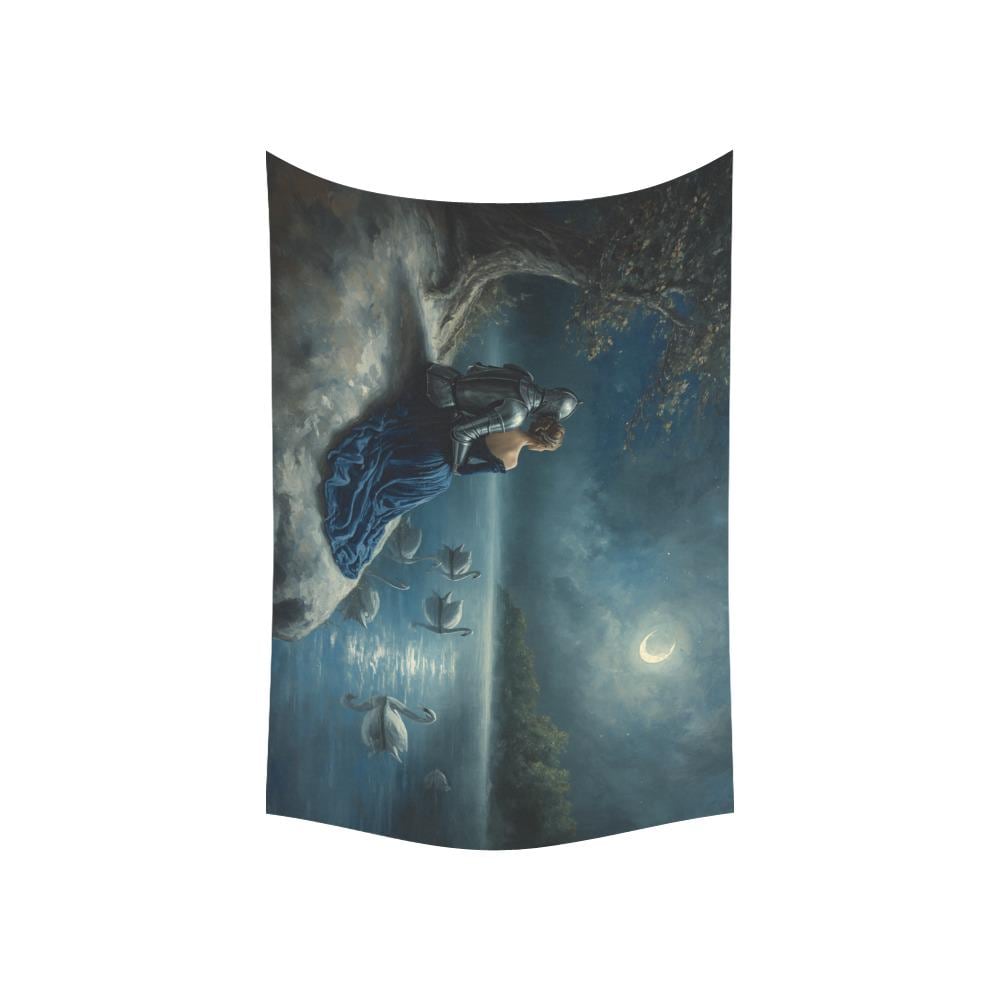 Romantic Fantasy Tapestry | Moonlit Swan Lake & Knight Wall Hanging | Medieval Fairy Tale Room Decor | Bookish Dark Academia Aesthetic 60x40