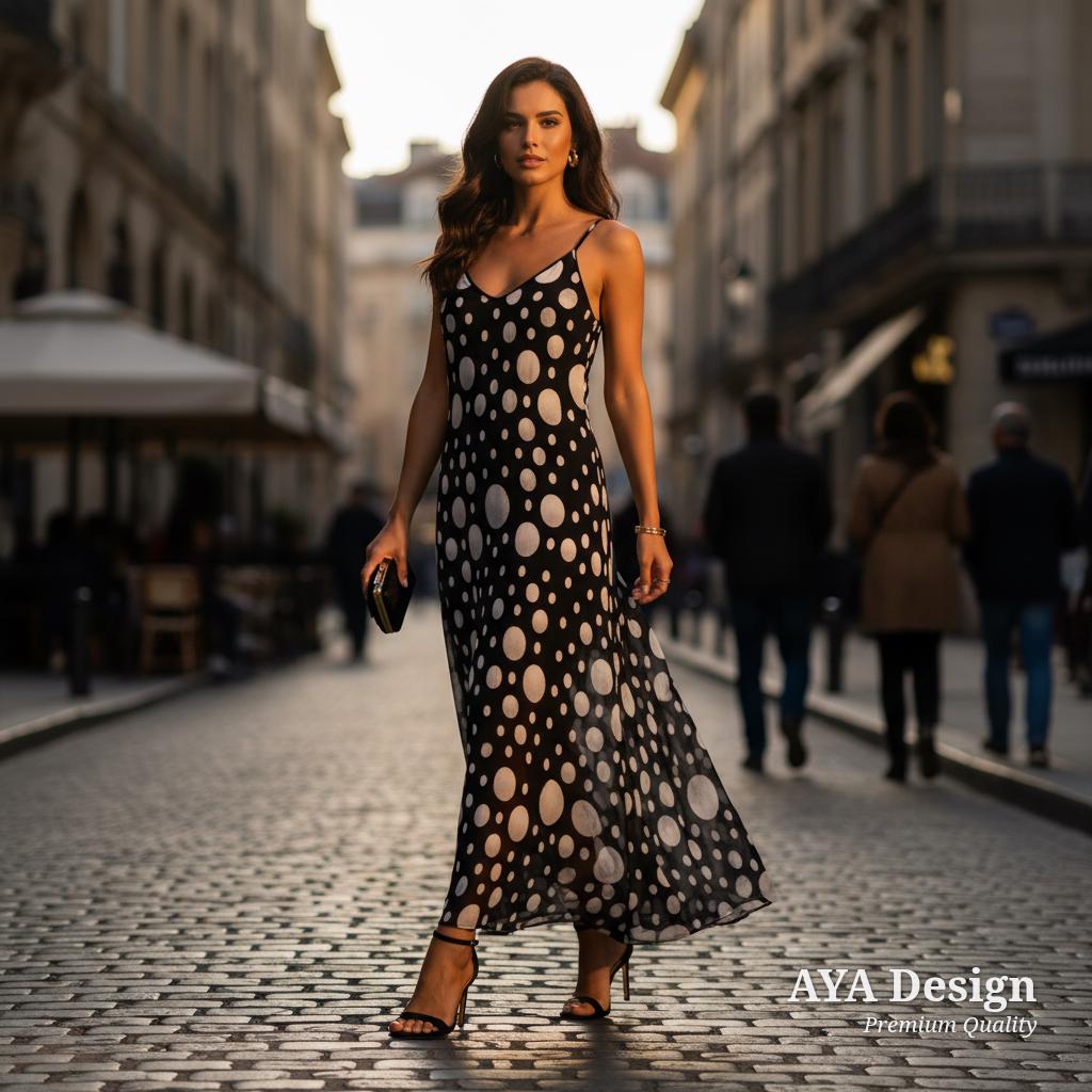 Whether you are sipping cocktails at a rooftop bar, attending a beautiful summer wedding, or simply enjoying a sunny weekend brunch, this dress is designed to make you look and feel radiant. Featuring a mesmerizing, 3D-effect floating dot pattern, this isn't just a polka dot dress—it's a wearable piece of modern art.