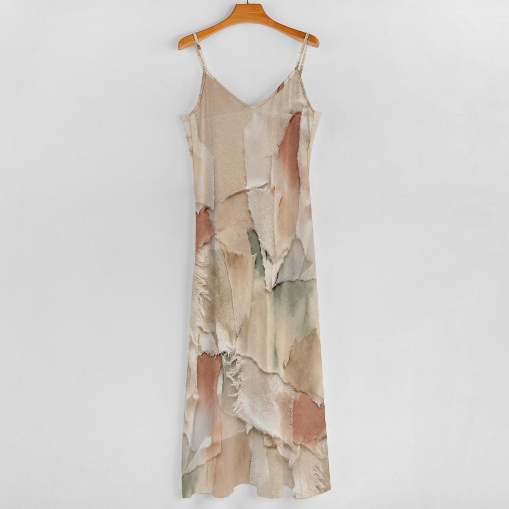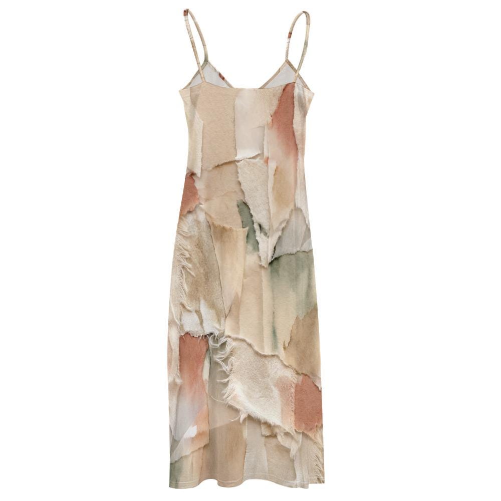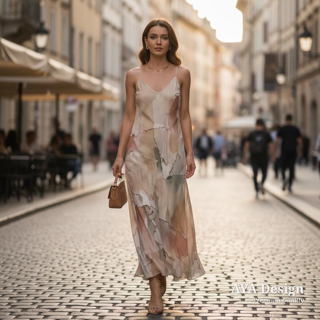 Imagine walking down a sunlit cobblestone street, the gentle summer breeze catching the lightweight flow of your dress. With our Abstract Earth Tone Slip Dress, that effortless, movie-star feeling is yours.